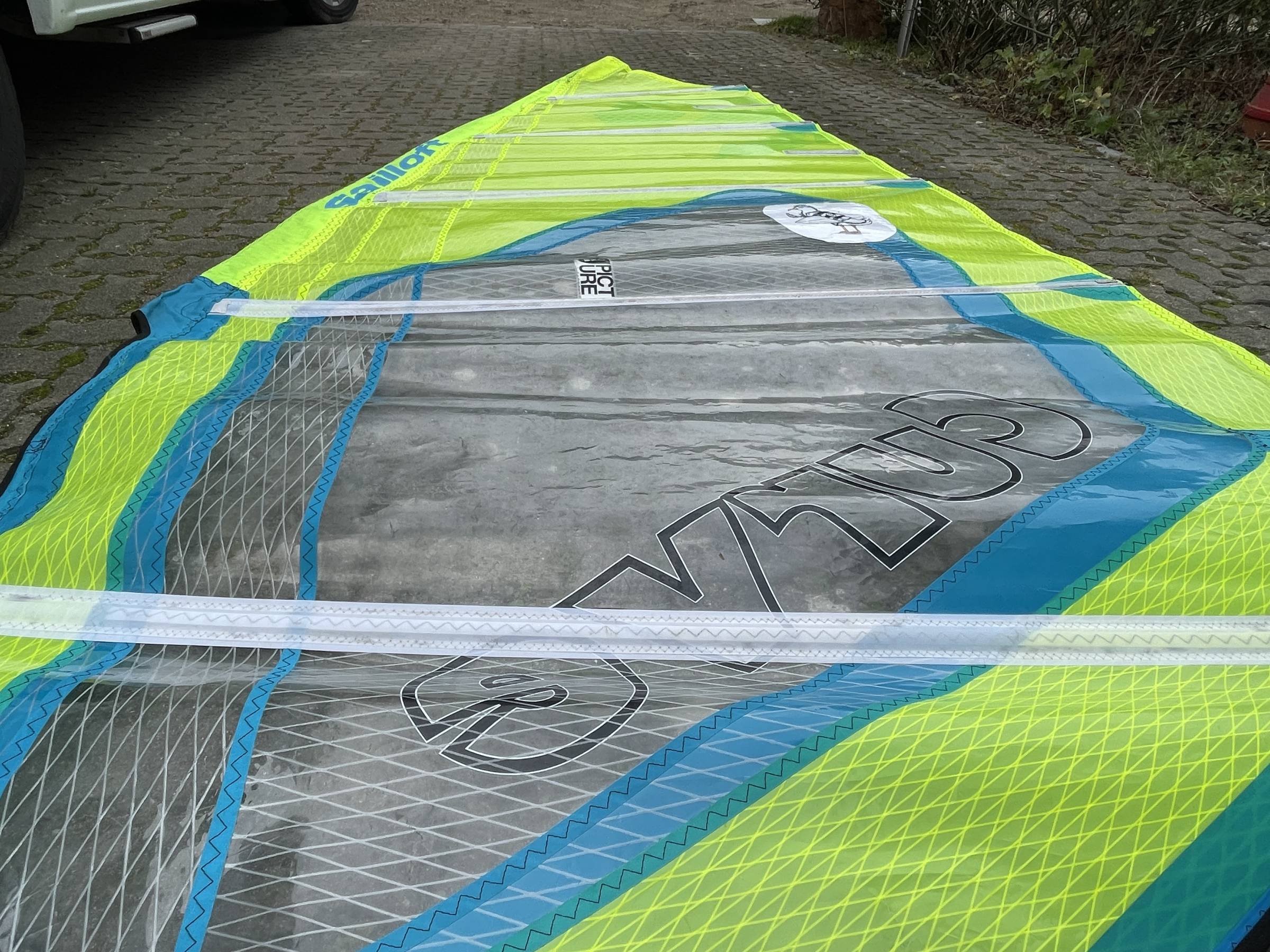Das Segel ist in einem guten Zustand. Das 5,3‘er ist aus 2019 und hat keine Reparatur. Die üblichen Spuren vom auf- und abbauen sind natürlich vorhanden.