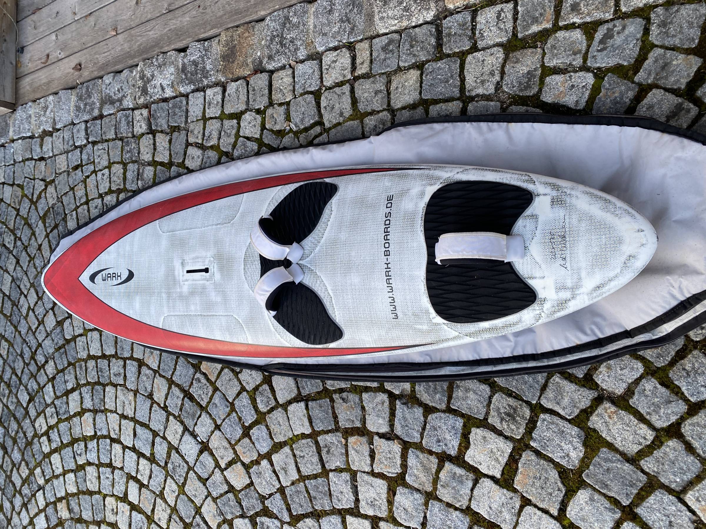 Das WARK Wave ist in einem sehr guten Zustand (wie neu) und wenig gefahren. Kaum Gebrauchsspuren und auch sonst keine Beschädigungen.Die WARK-Board von Andi (www.wark-boards.de) sind sehr leicht aber trotzdem super stabil. Ein Serienboard in dieser Klasse wiegt 1 bis 1.5 kg mehr. An den kritischen Stellen wurde das Board extra verstärkt.