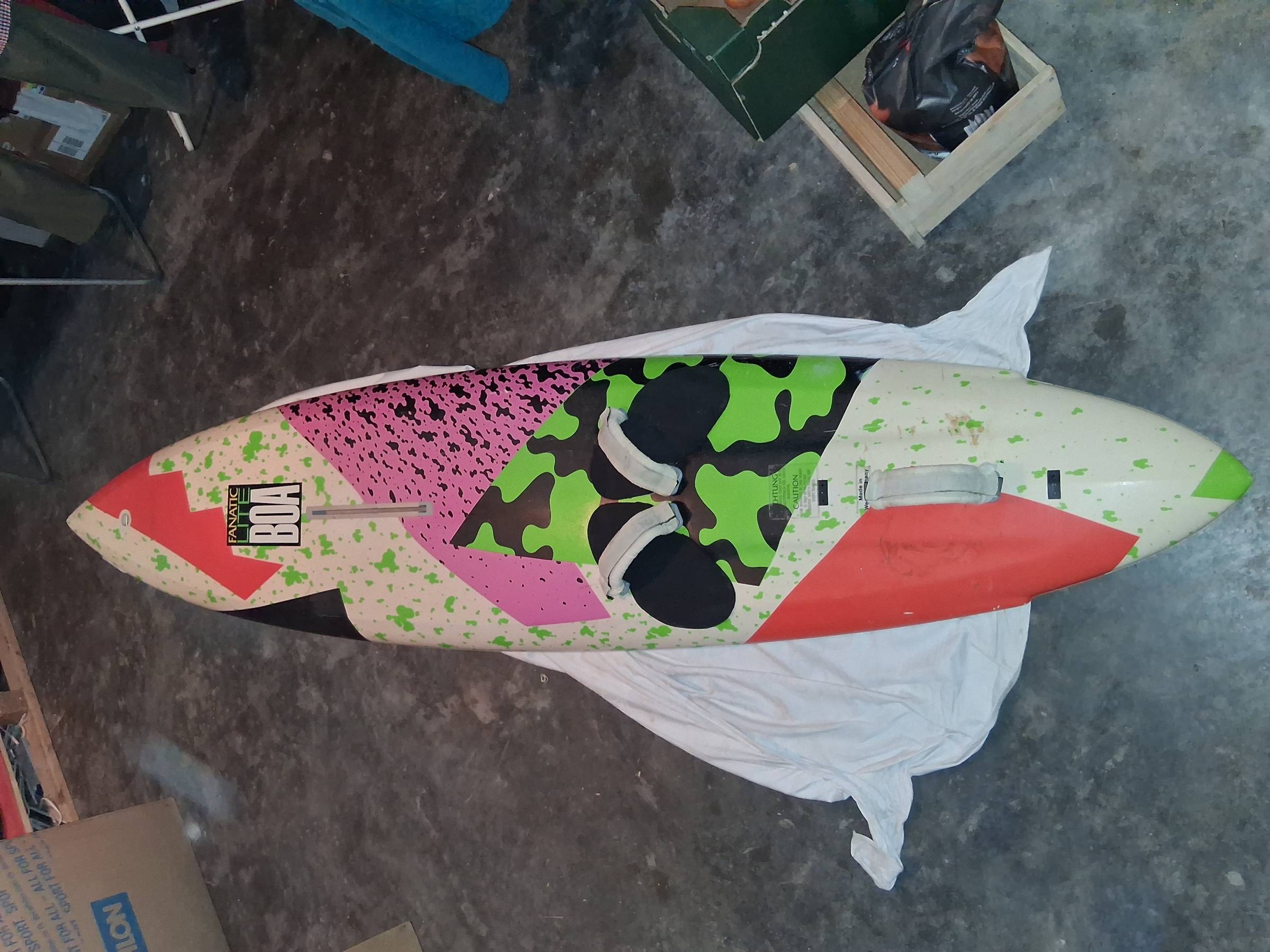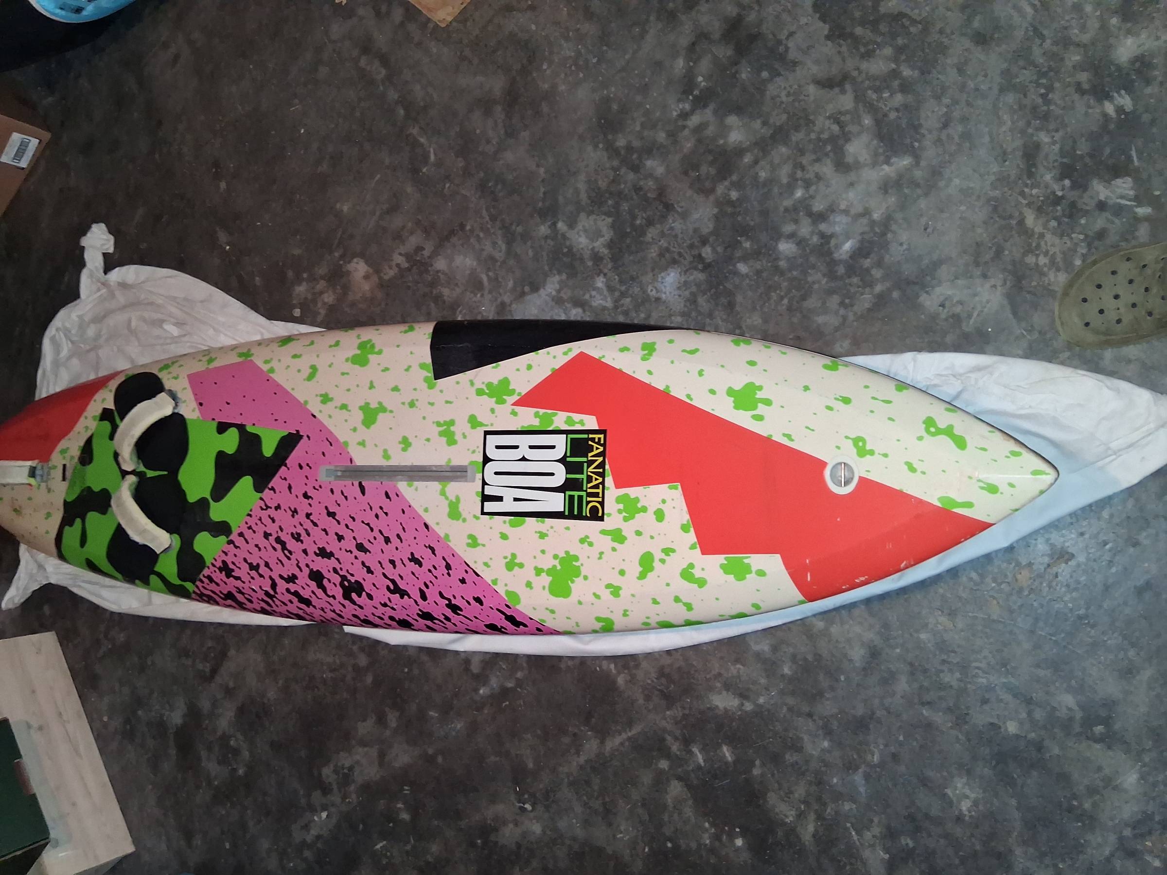 Intaktes Board mit Schlaufen und Finne zu verkaufen. Wird ca. 80l oder weniger haben. Genaues weiß ich nicht.