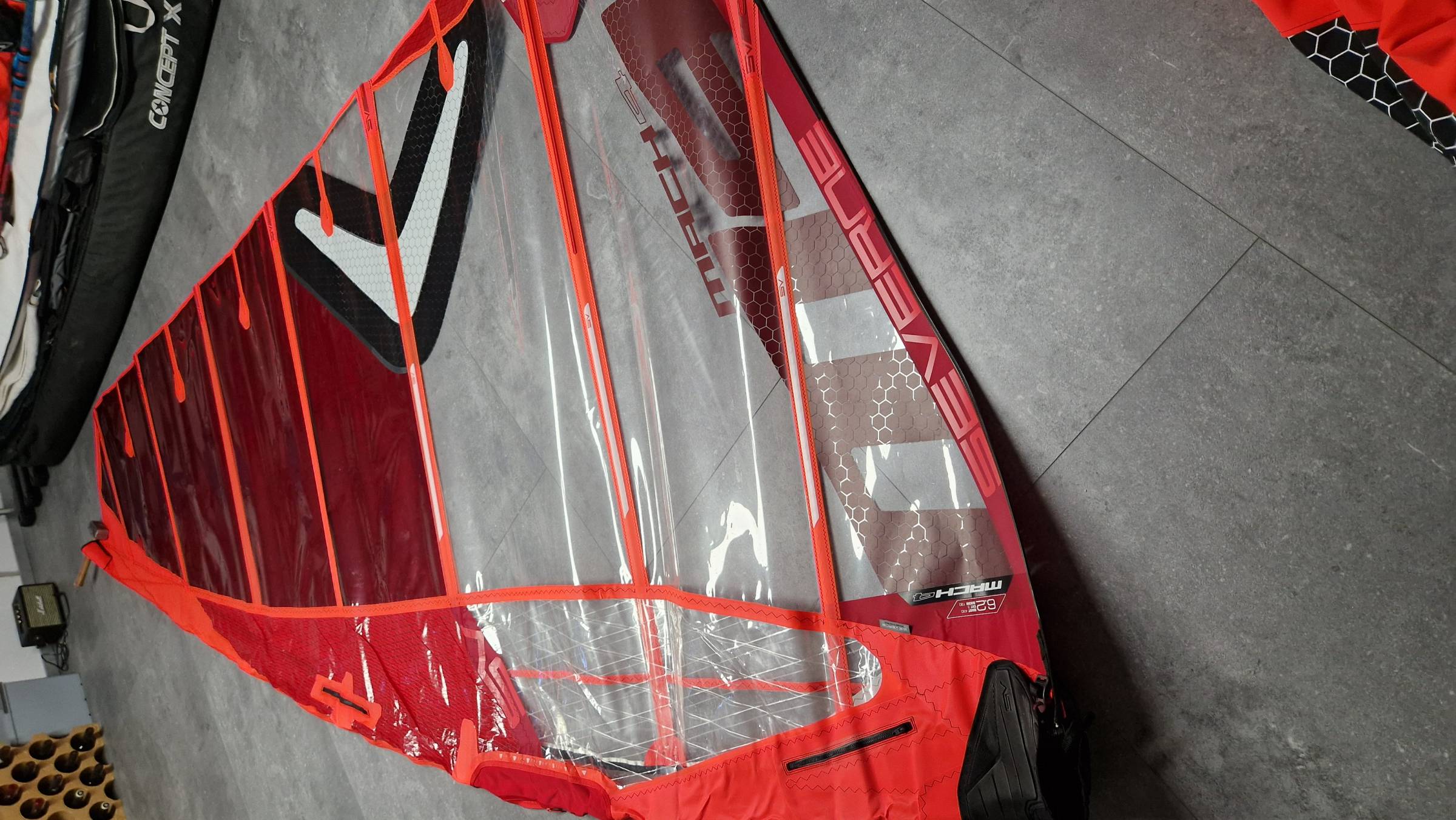 Mach 4 6,2 in sehr gutem, wenig gefahrenen Zustand. Benötigter Mast ist 430 RDM in Constant Curve, ich kann einrn Gun Select 100% anbieten zum Komplettpreis mit Segel für 450,-.