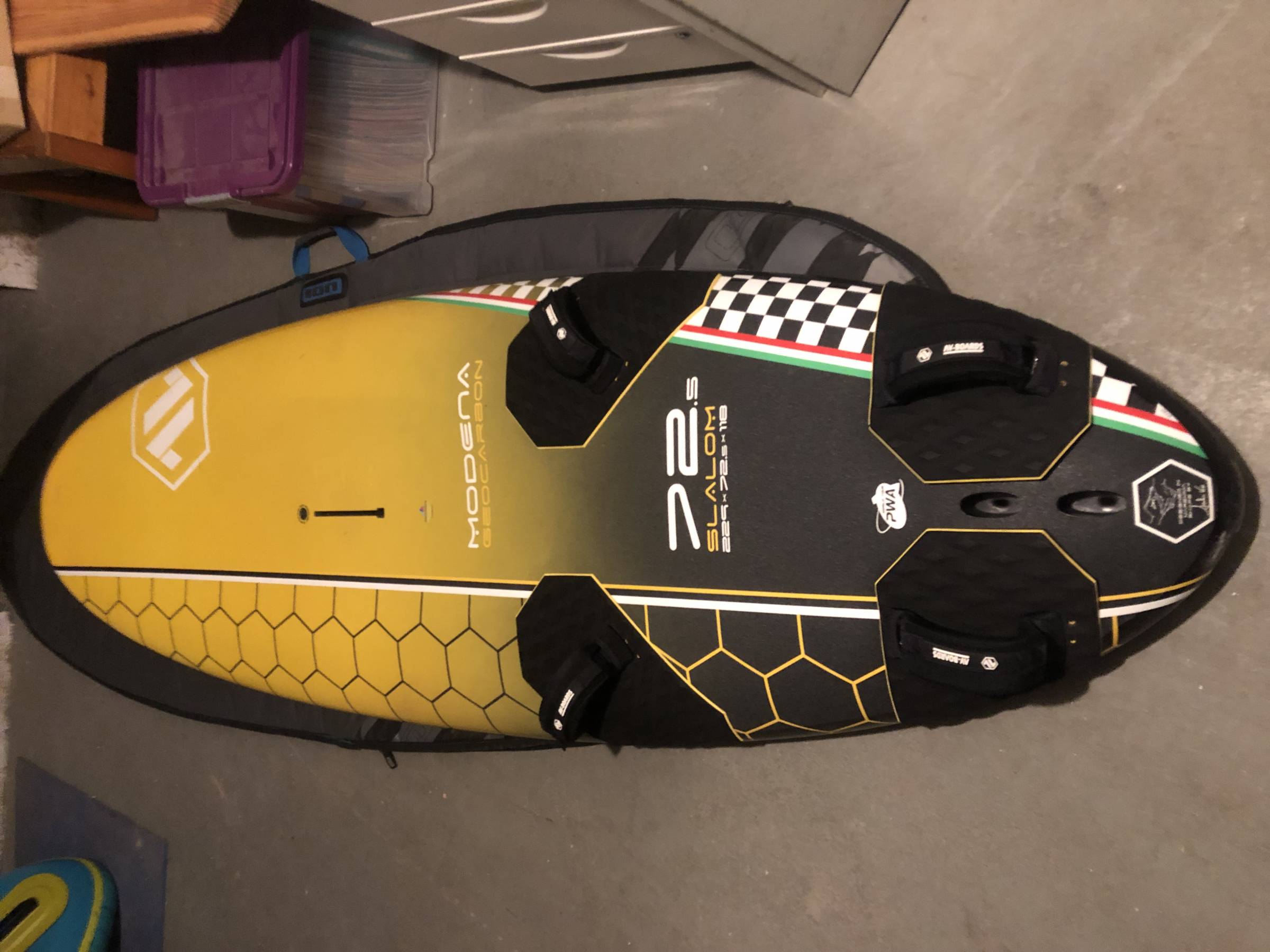 mein AV Modena 118 steht zum Verkauf. Das Brett ist aus dem Jahr 2021 und hat eine Breite von 72,5 cm. Es kommt aus der Kinetik Factory und ist bockhart. Der der Standlack ist top und die Fahrleistung auch. An der Nase hatte der Vorbesitzer einen kleinen Ditscher der in Holland am Brouwersdamm repariert und nachlackiert wurde. Abholung in Brühl bei Köln oder der Versand müsste selber organisiert werden. Bei Fragen einfach melden.