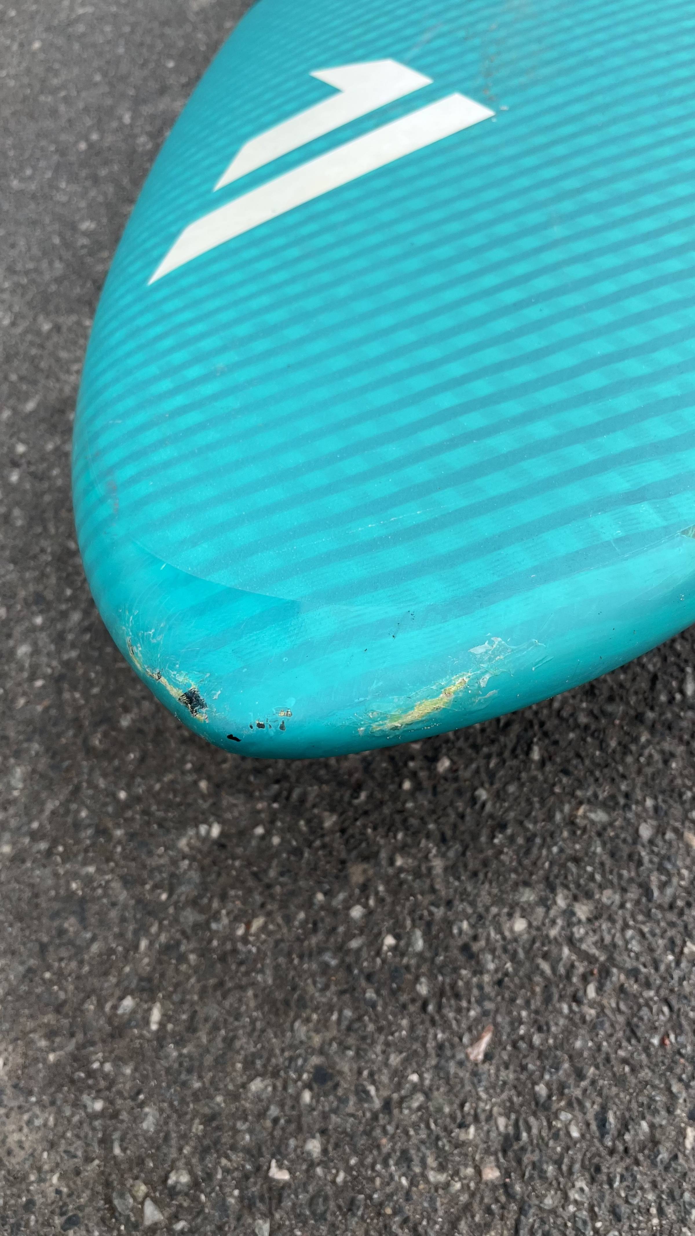Das Board ist in einem guten Zustand, nichts ist weich oder gebrochen. Alle Stellen an denen mal was angeditscht ist sind zu sehen und mit Solarez zugemacht. So kann man alles ehrlich sehen.