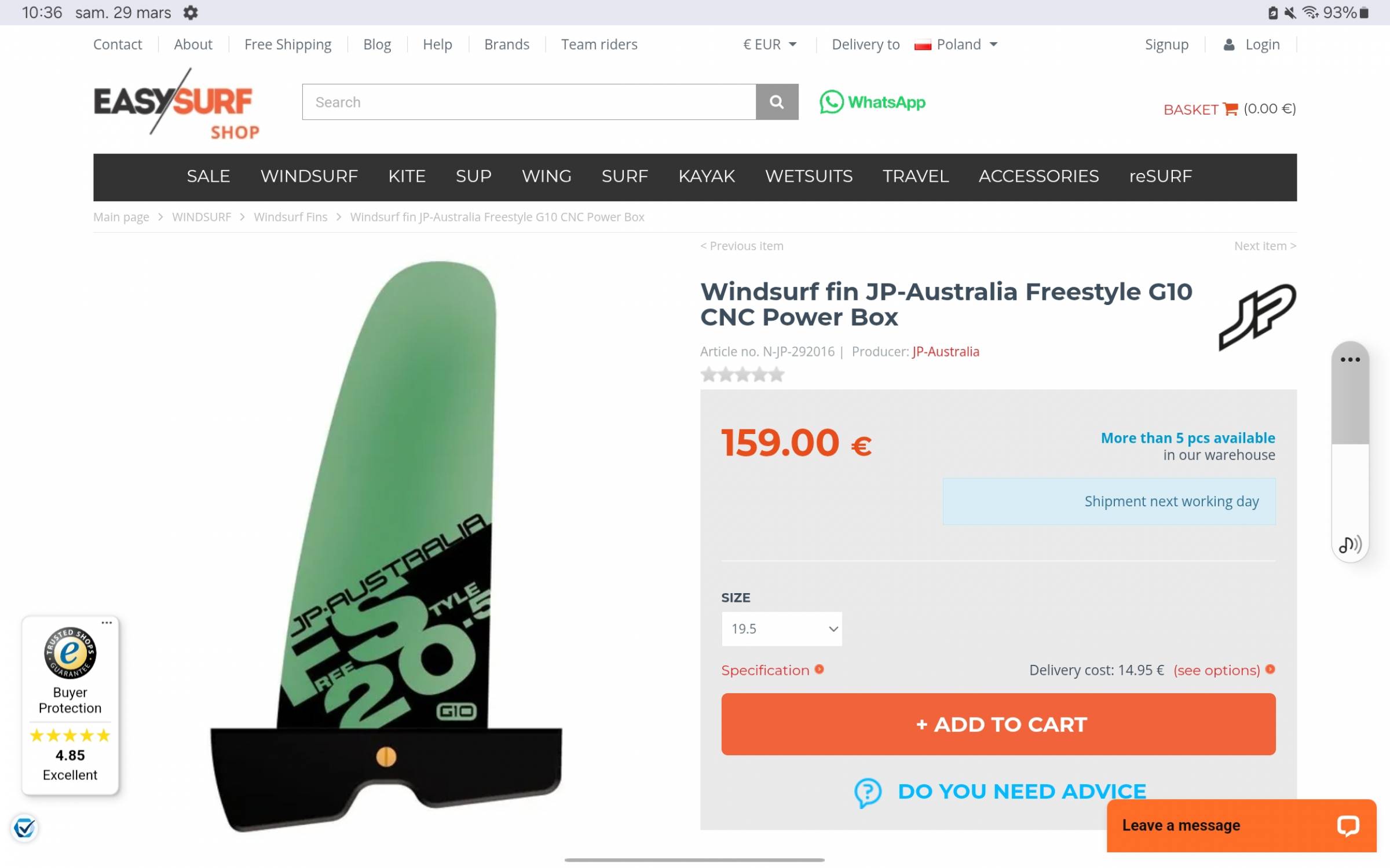 I'm selling my brand new freestyle fin 19.5cm G10 from 2024.