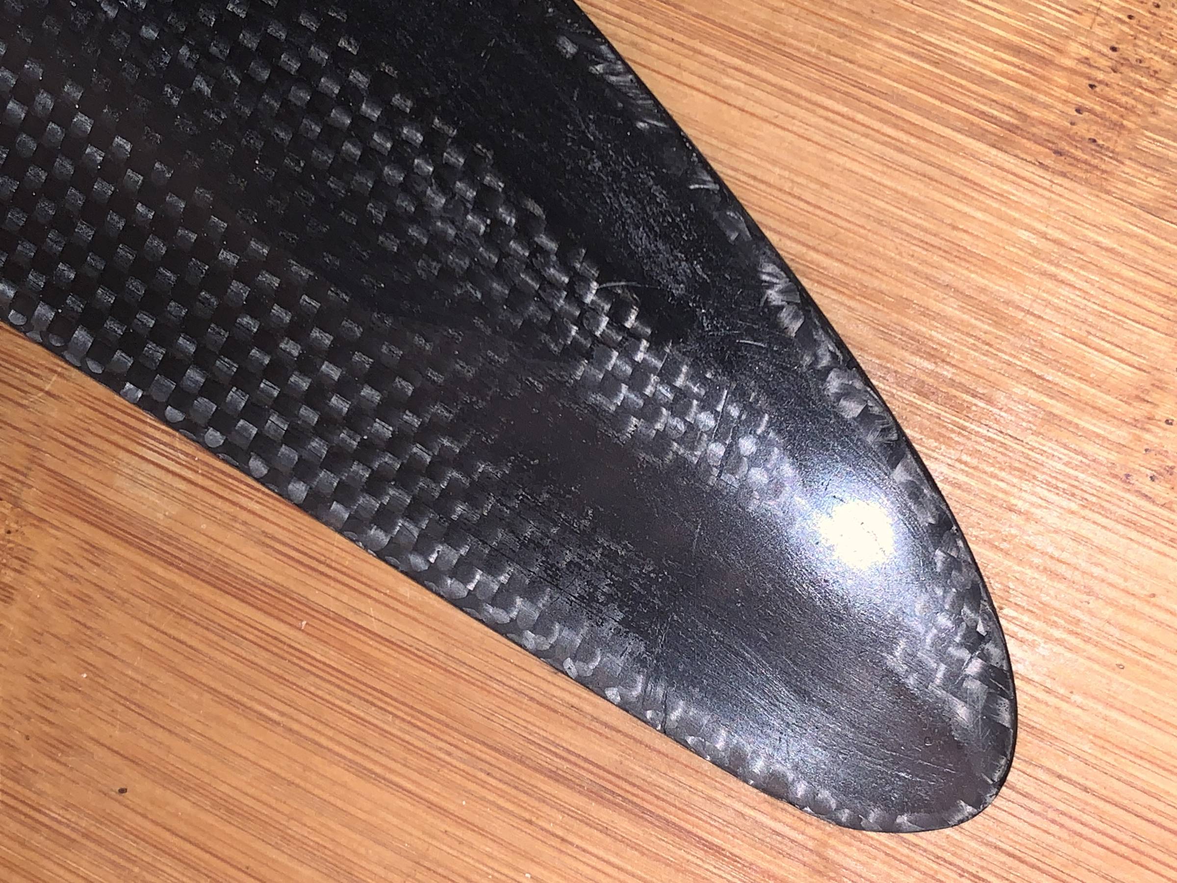 Ich habe den größtenteils des etwas rauen Lessacher Oberflächenlack mit 400/600 Schmirgelpapier abgeschmirgelt u die Finne mit Boatwax behandelt u poliert -sie ist a…glatt.
