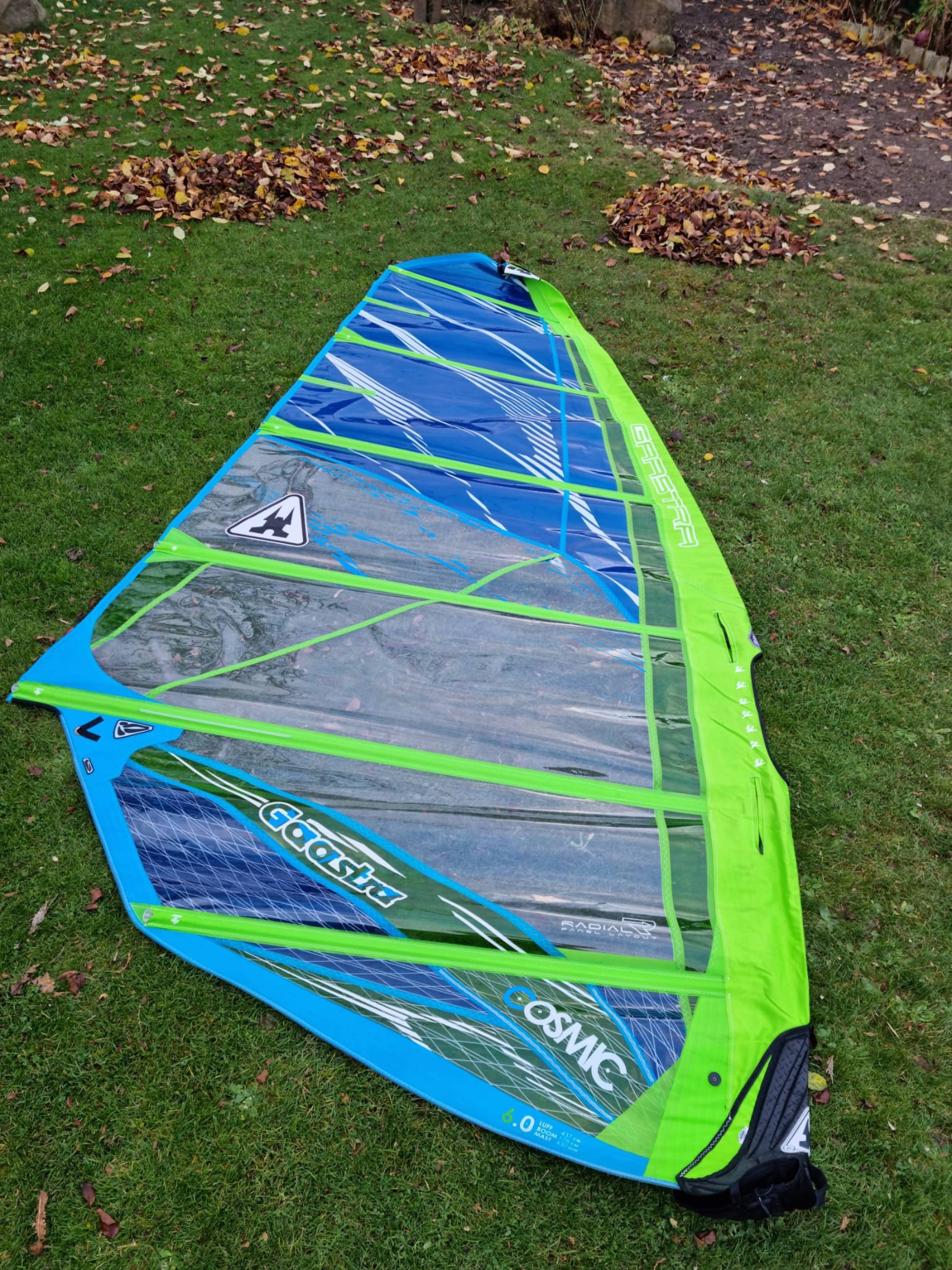 ich biete ein gebrauchtes Gaastra Cosmic 6.0 aus 2014. Es ist das 2-Cam Freeride Segel von Gaastra. Es ist ein sehr leichtes Segel, welches einfach und angenehm zu fahren ist. Dank der zwei Camber ist der Druckpunkt des Segels deutlich stabiler, als bei No-Cam Freeride Segeln, wobei das Segel kaum schwerer, oder schwieriger zu fahren ist.