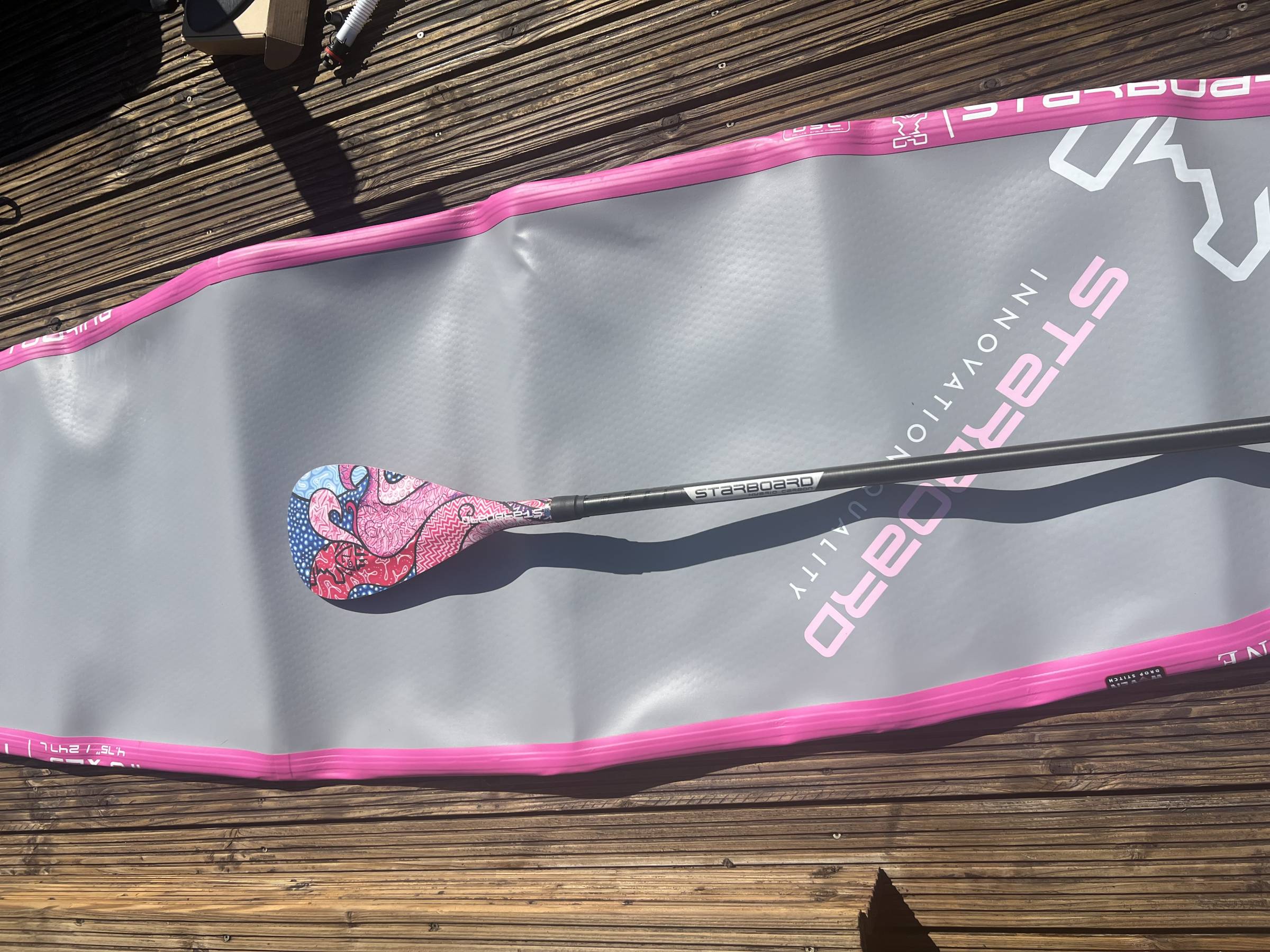 Passend dazu ein Carbon Paddel im gleichen Design. Komplettes Zubehör vorhanden.