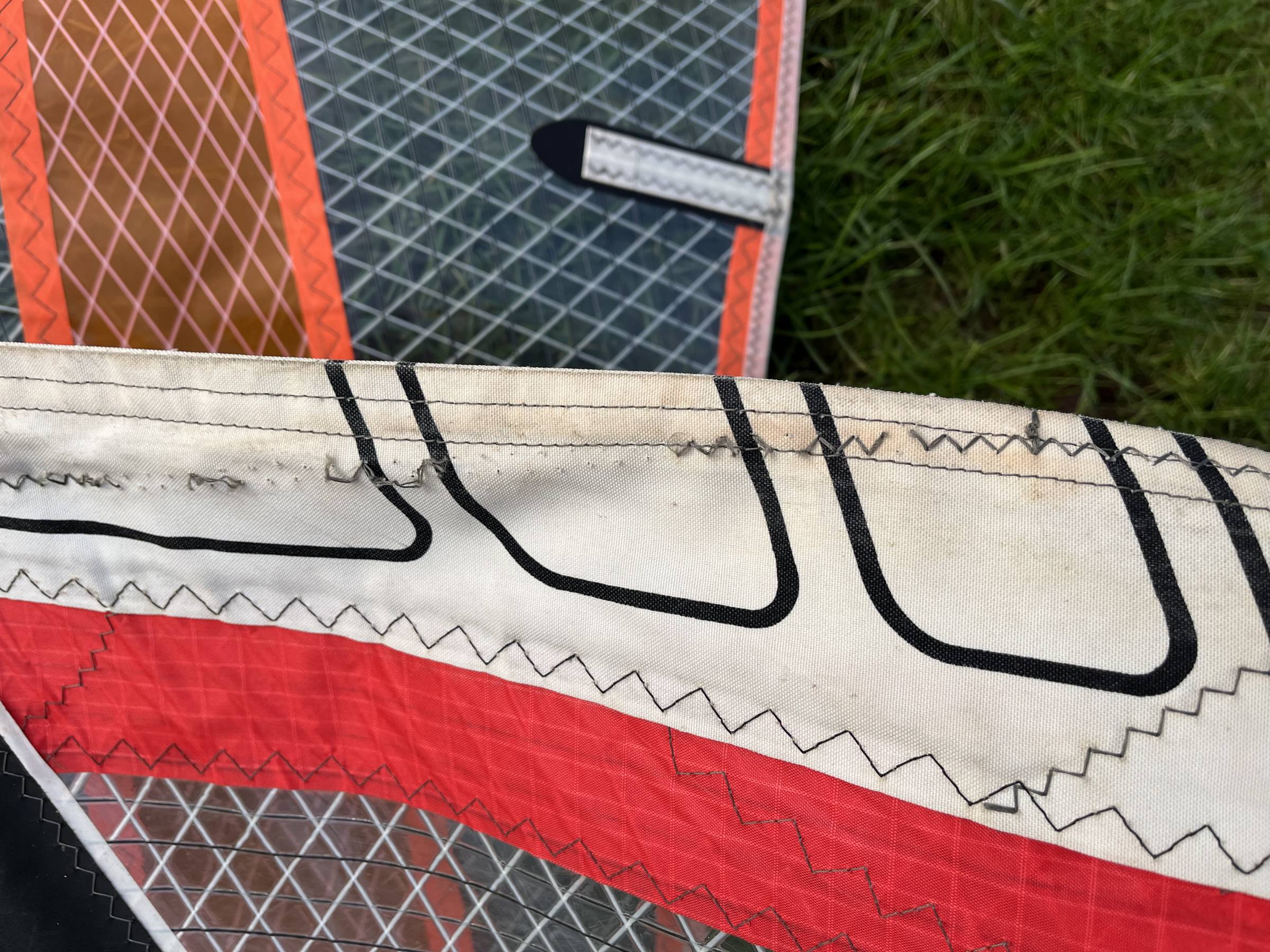 Die Segel sind viele Jahre alt mit entsprechenden Gebrauchsspuren, funktionieren aber noch tadellos. Legendäre Wavesegel in fast unzerstörbarer Qualität.