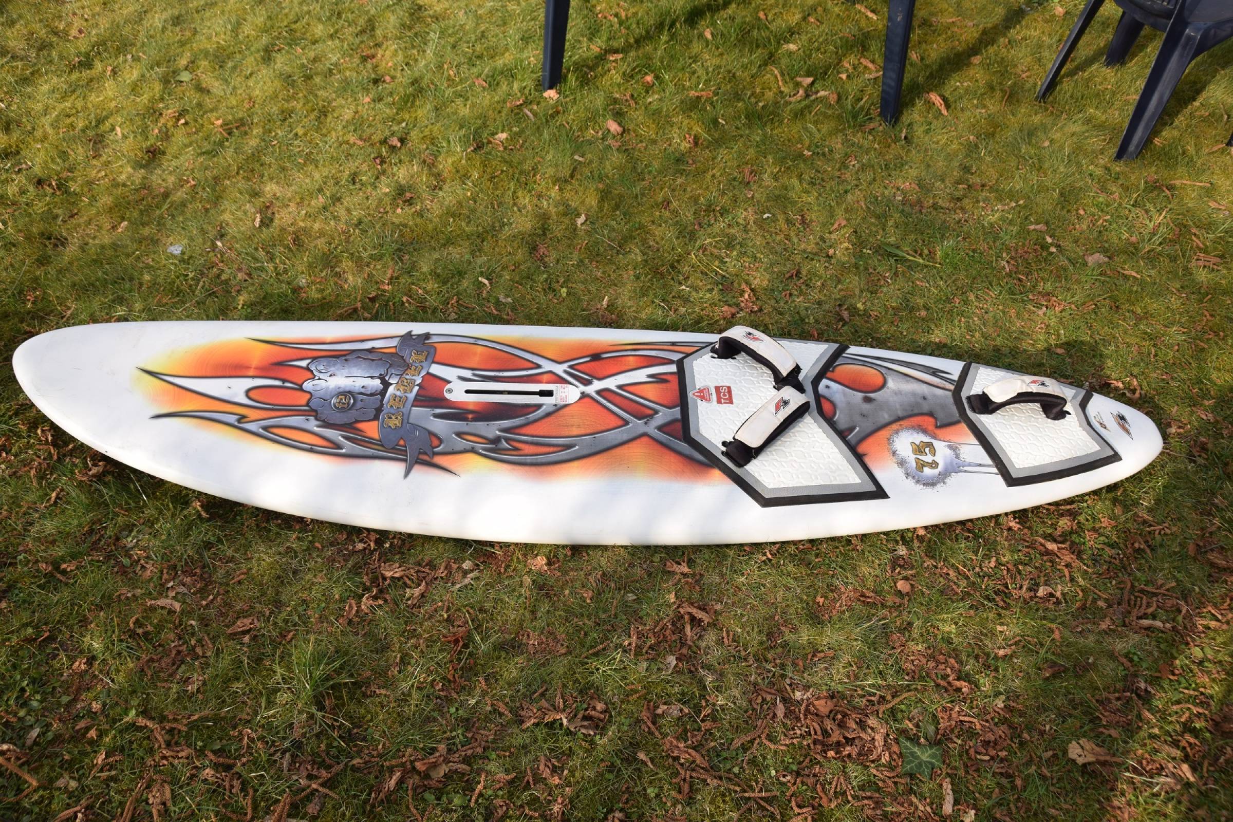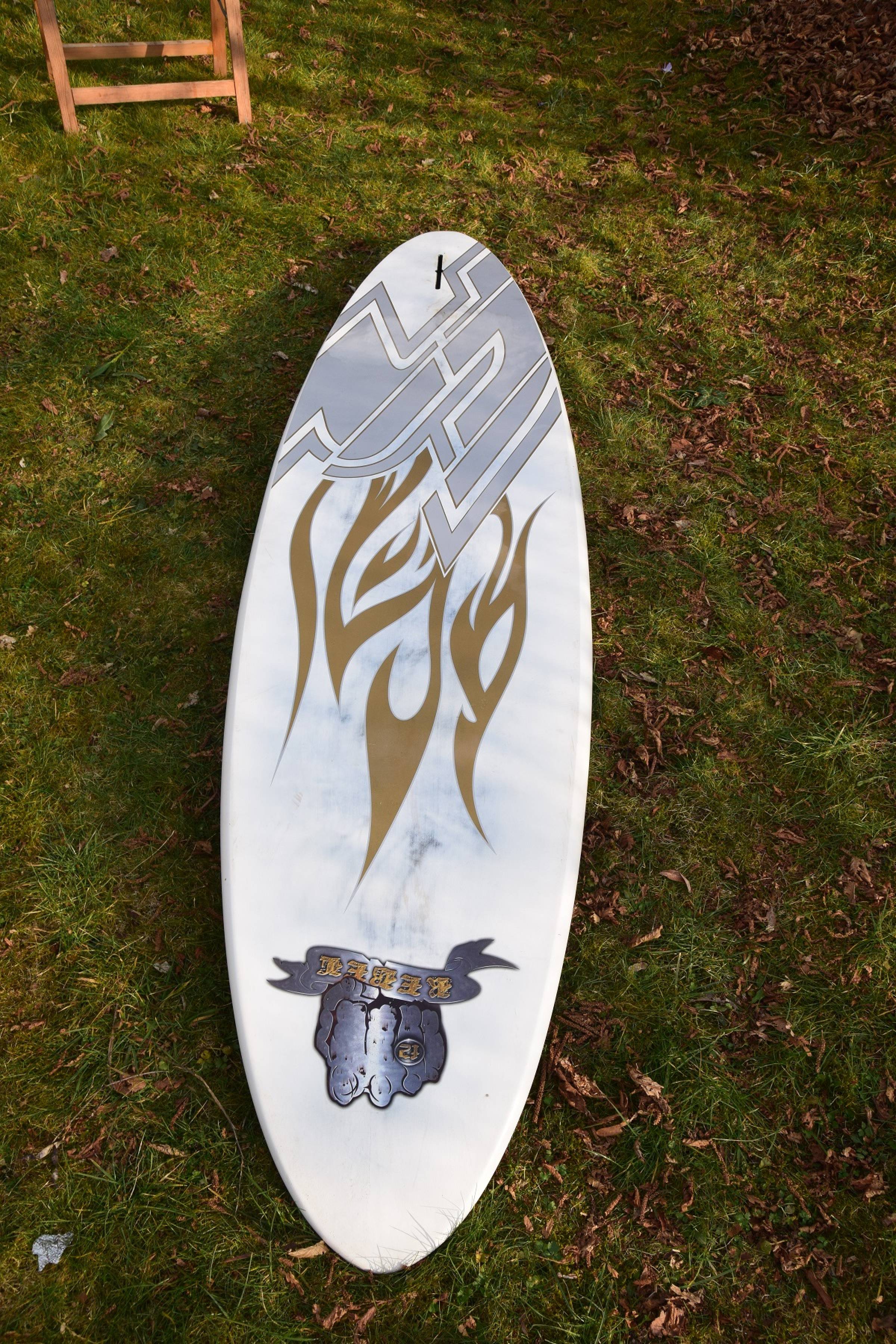 F2 Rebel 75 l, universelles Waveboard, auch sehr gut als Flachwasser-/Starkwindboard und für leichte Fahrer geeignet, Zustand eher sehr gut eine leichte Stelle vorne am Bug (siehe Bilder)