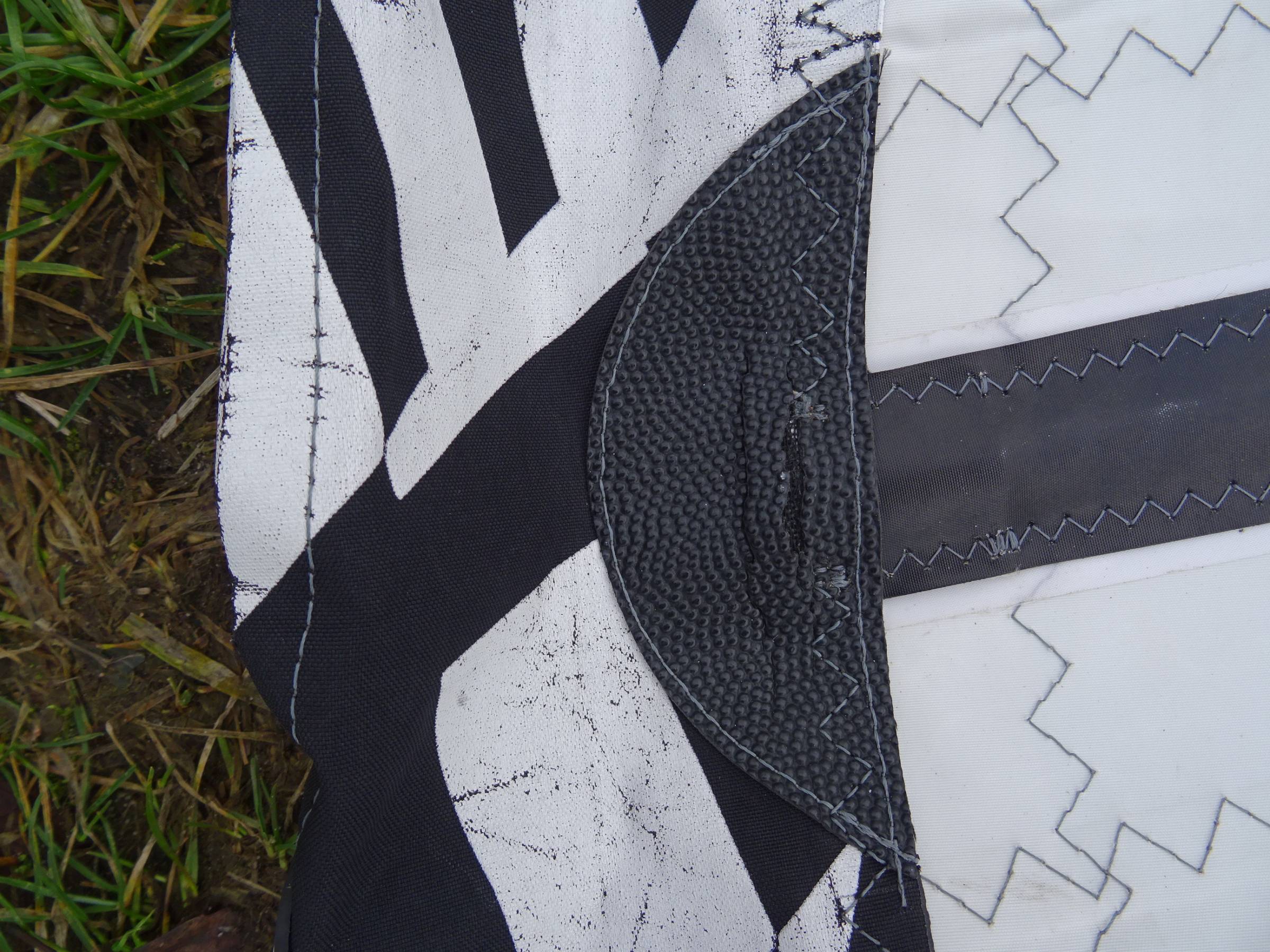 sehr stabiles Segel mit Gebrauchsspuren ( s. Fotos), keine Löcher oder Risse im Monofilm, der pin zum halten des zusammengewrollten Segels fehlt, Segeltasche eingerissen