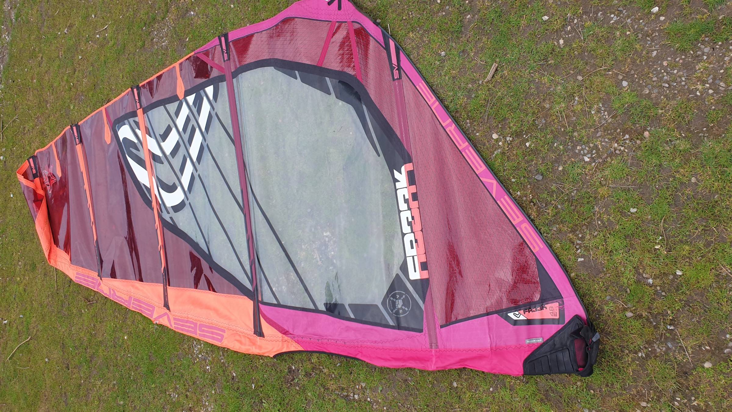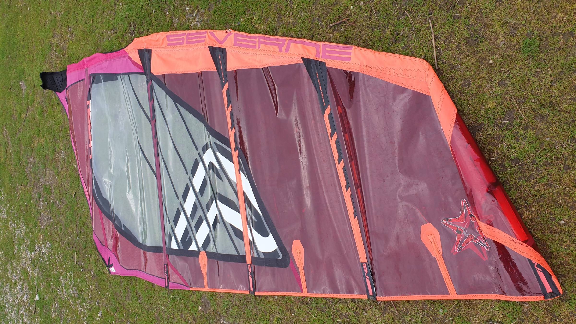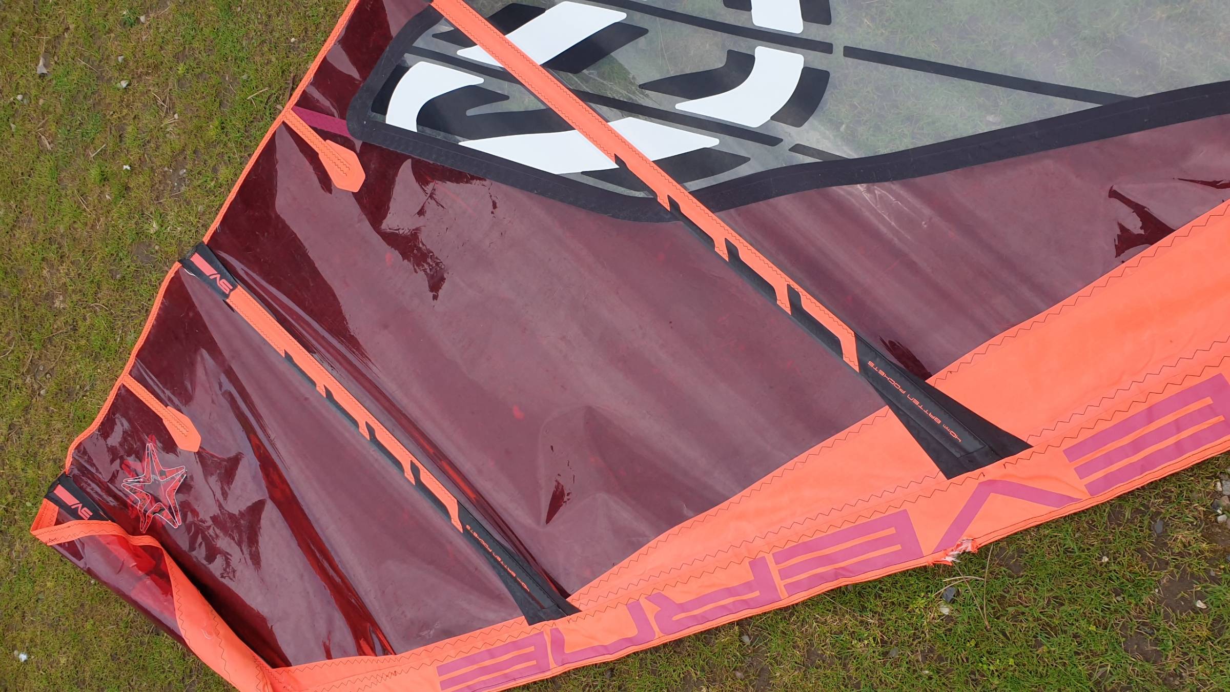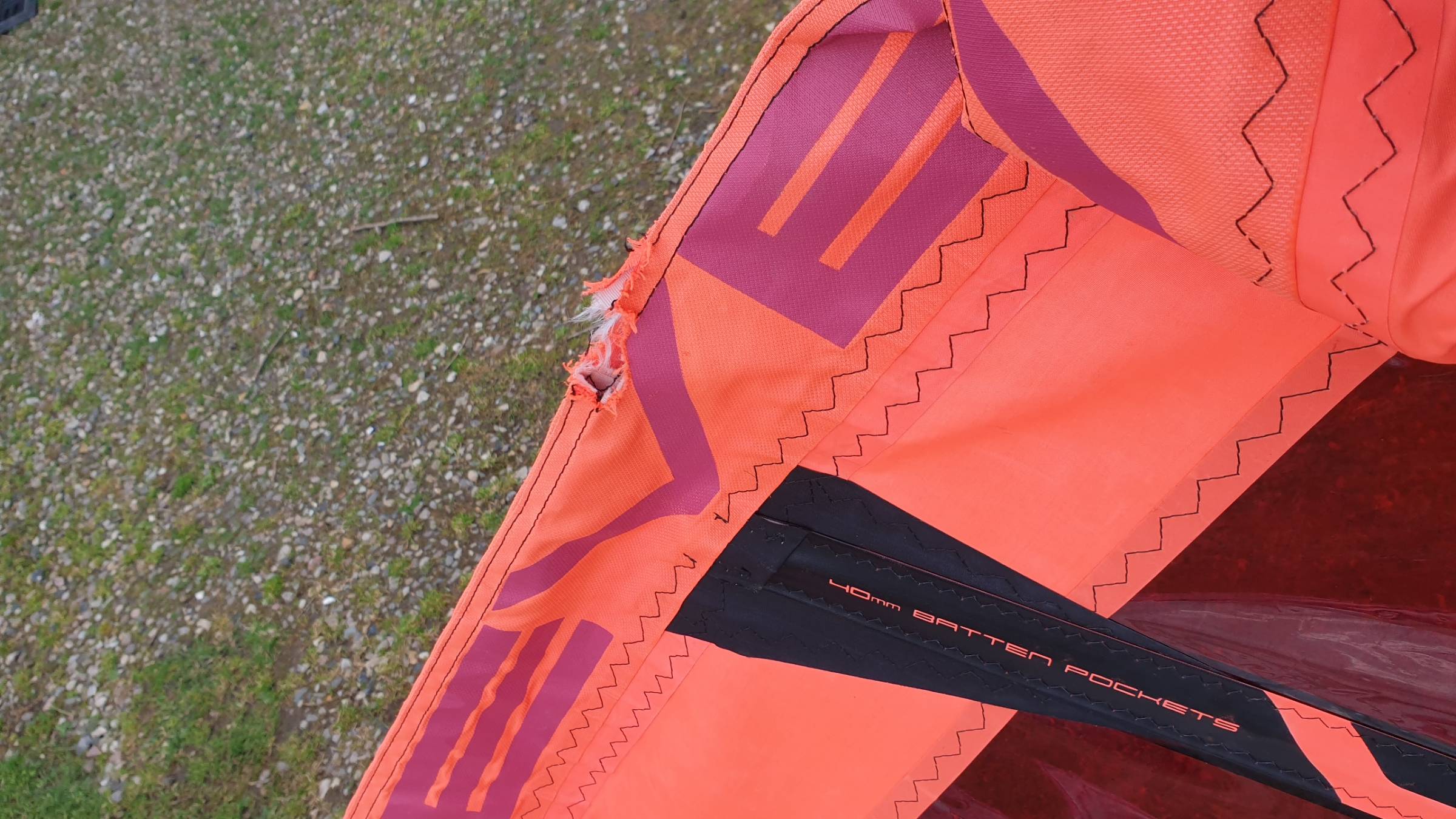 Zustand: Kleiner Riss in der Masttasche, der aber keinen Einfluss auf die Stabilität und die Fahreigenschaften hat.