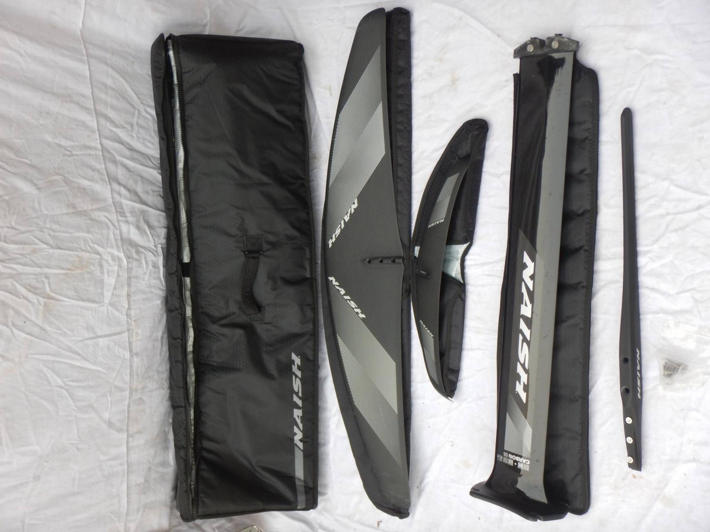 Bei Kauf des 85cm 50% Carbonmast ist die Hardware zur Befestigung der Flügel am Rumpf und zur Befestigung des Mastes am Brett enthalten.