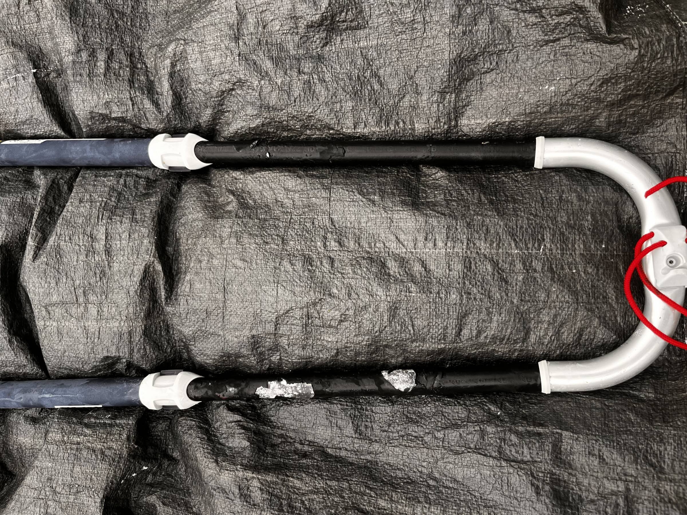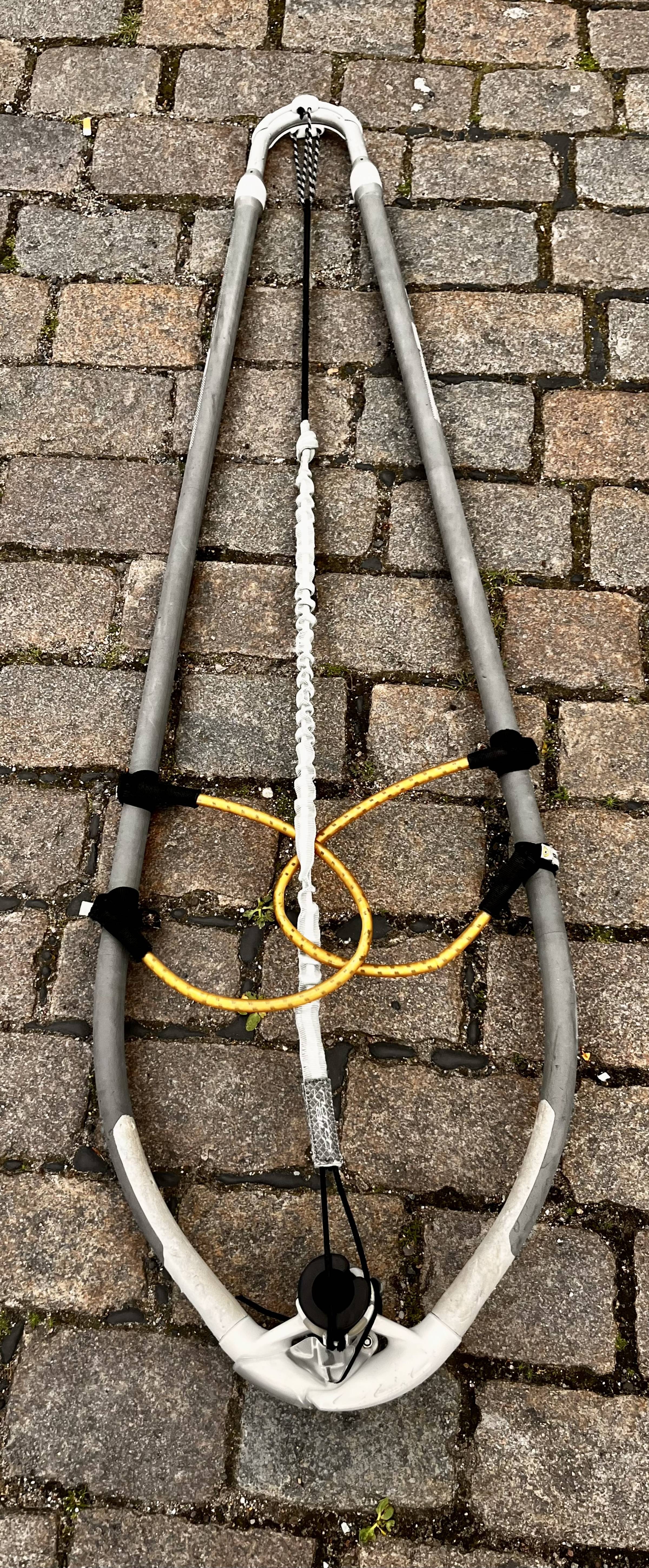 Einige Gebrauchsspuren, vor allem ist die Isolierung am Vario-Endstück teilweise ab (s. Bilder). Funktion/Einstellung ist dadurch aber nicht eingeschränkt, auch der Verschluss klappt einwandfrei. Gabelbaumkopfstück sowie Achterliek-Spanner voll funktionsfähig. RDM-Adapter montiert.