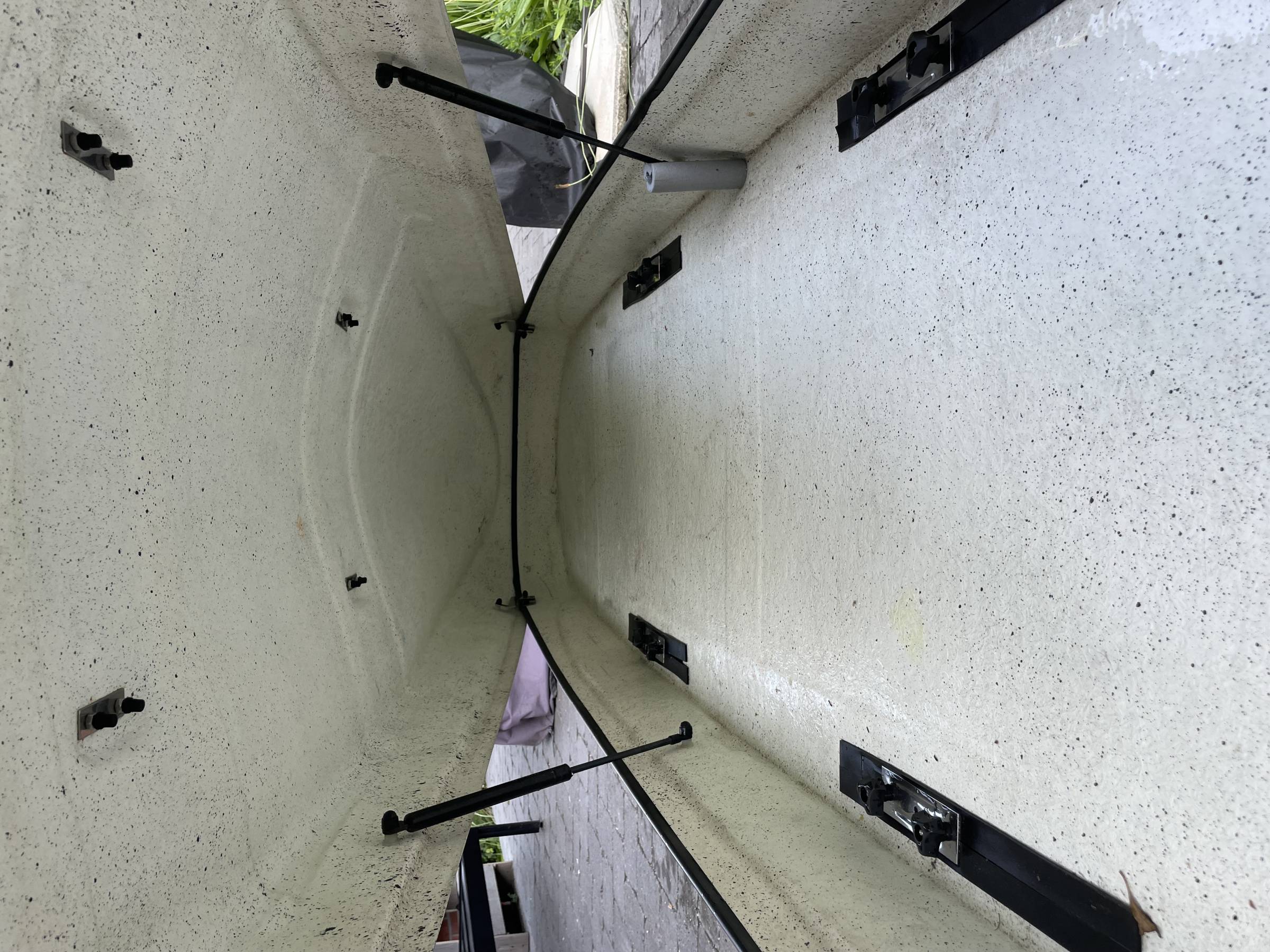 Die Maße sind 270x80x44 cm mit einen Volumen von 900l.