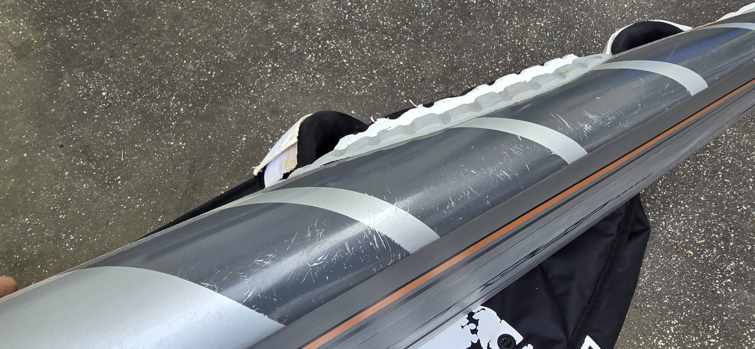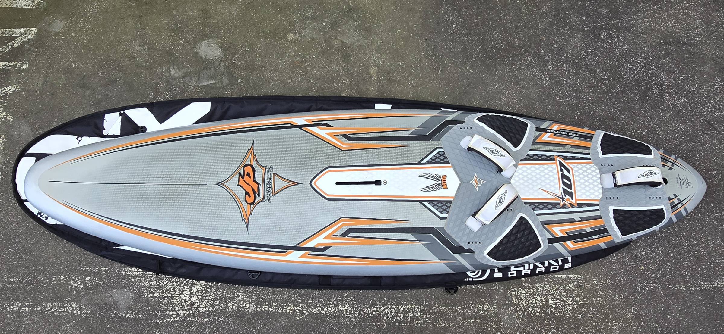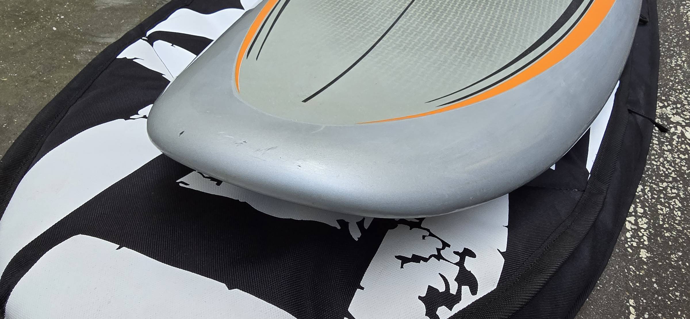 Das Bag (Unterlage auf den Fotos) gehört NICHT zum Angebot, nur Board/Schlaufen/Finne.