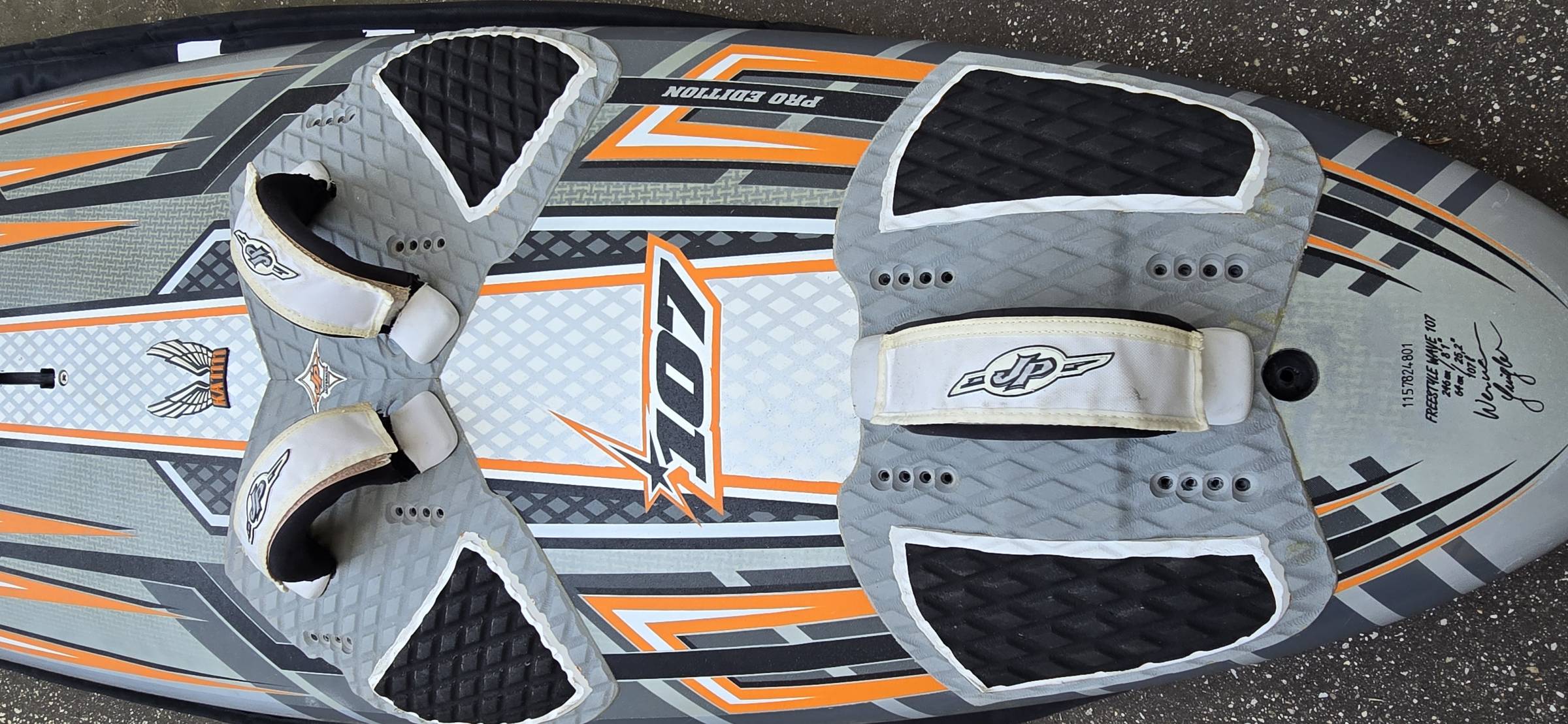 Das Freewave war daher max. 30-35 Tage auf dem Wasser, steht seitdem gut geschützt bei mir im Keller und sucht wieder Auslauf. Ist dementsprechend in sehr gutem Zustand, keine Schäden, nicht weich, nur leichte Lackkratzer. Original Schlaufen und Finne.