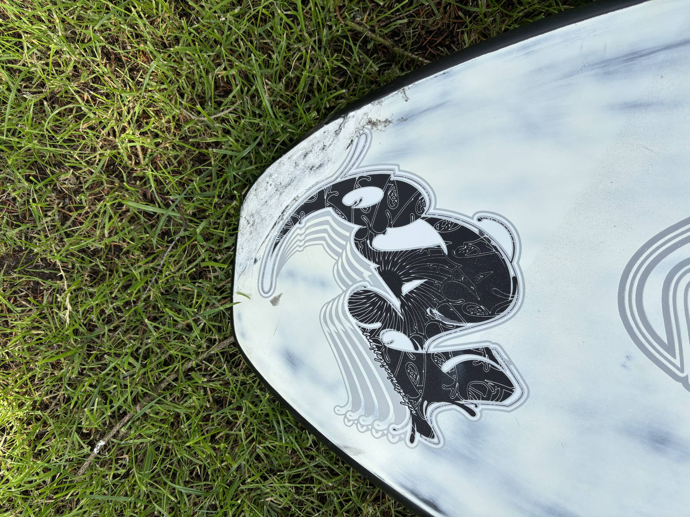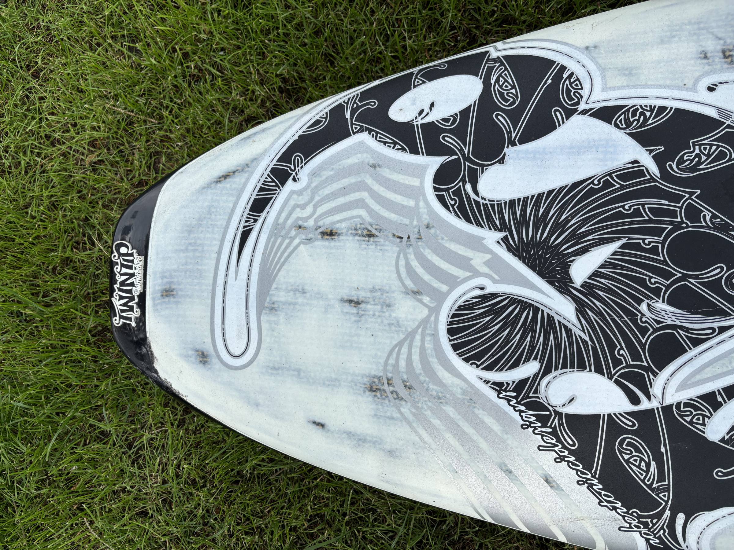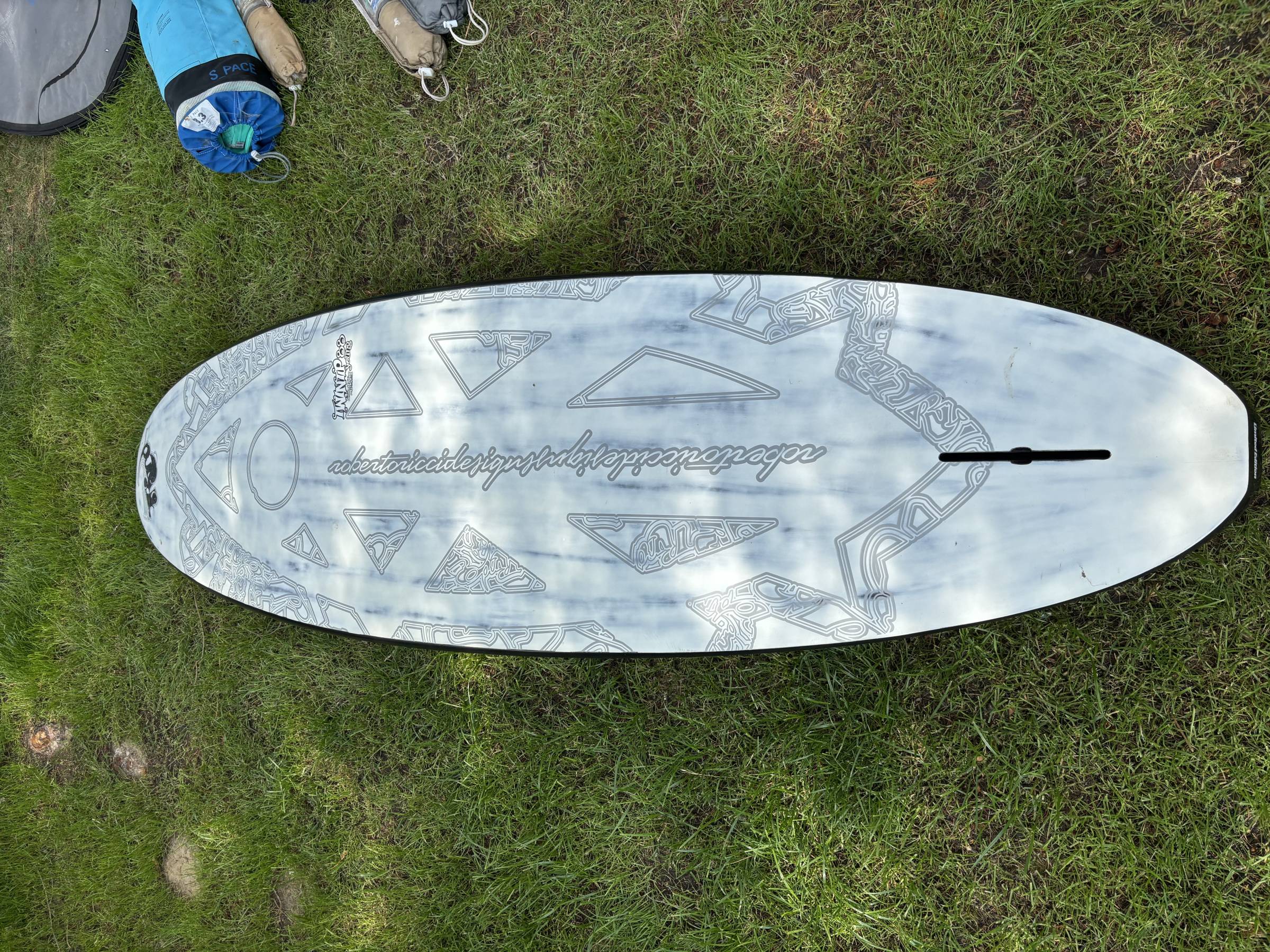 Hallo, ich verkaufe ein gebrauchtes RRD Twintip Limited Edition 88L Freestyle Surfbrett. Dieses ist insgesamt in einem guten Zustand und wurde nur selten gefahren. Die Nase hat allerdings an der linken Seite einen (fachmännisch) reparierten Schaden. Der Schaden ist beim fahren entstanden. Danach wurde das Brett trocken gelagert und vom Experten repariert. Die originalen Fußschlaufen und die originale Finne werden mit verkauft.
