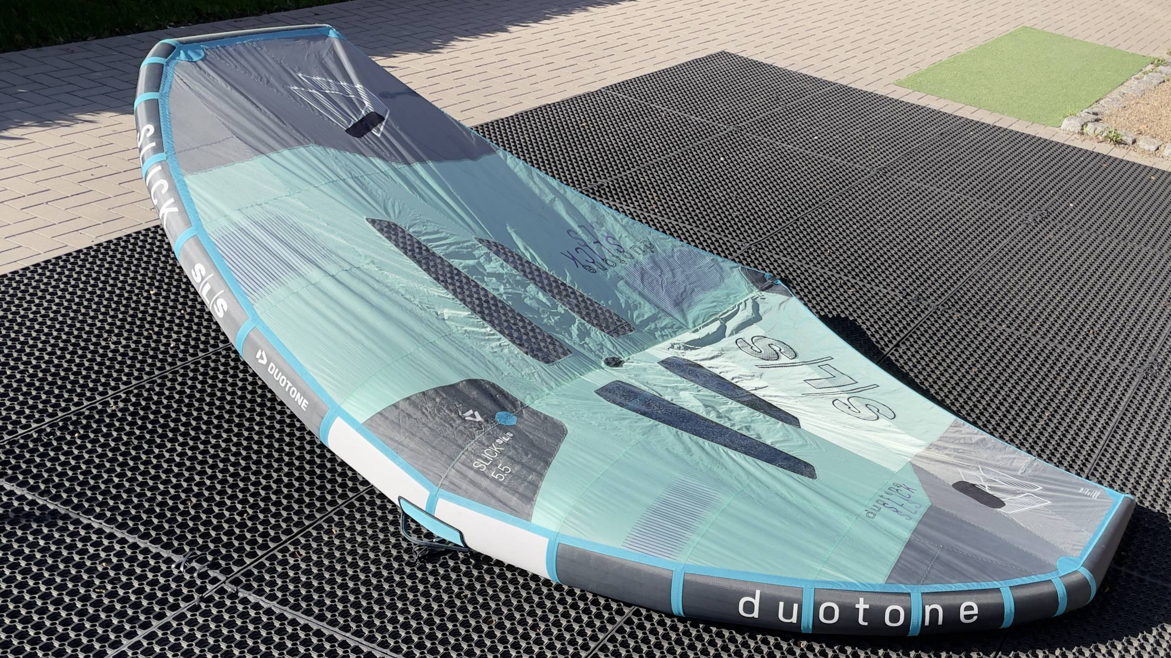 Wir verkaufen den Duotone Slick SLS in 5,5 aus dem Jahr 2022. Der Wing war bei uns im Verleih im Einsatz, ist aber noch in einem guten Zustand.
