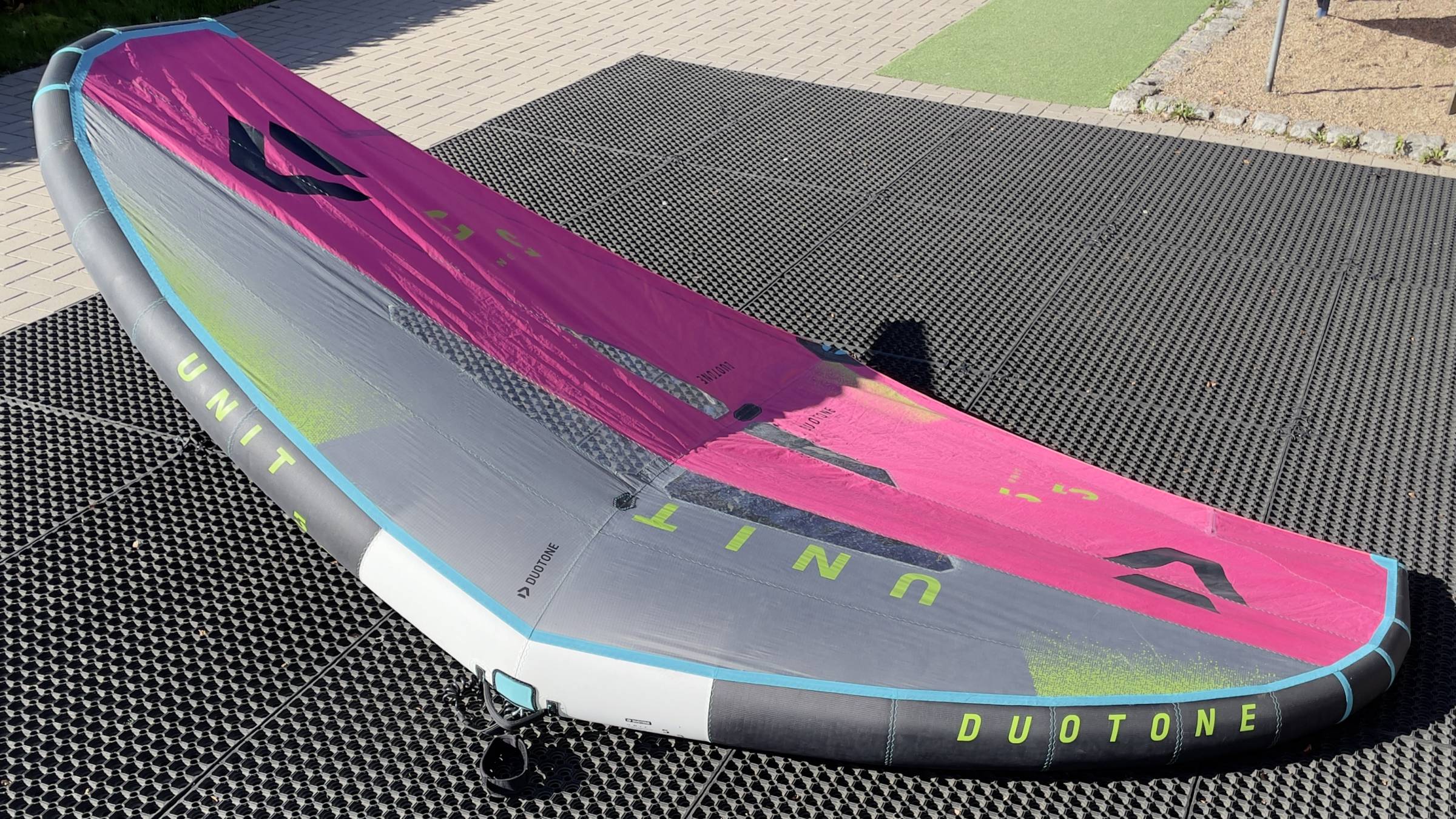 Wir verkaufen den Duotone Unit in 5,5 aus dem Jahr 2025. Der Wing war bei uns im Verleih im Einsatz, ist aber noch in einem guten Zustand.