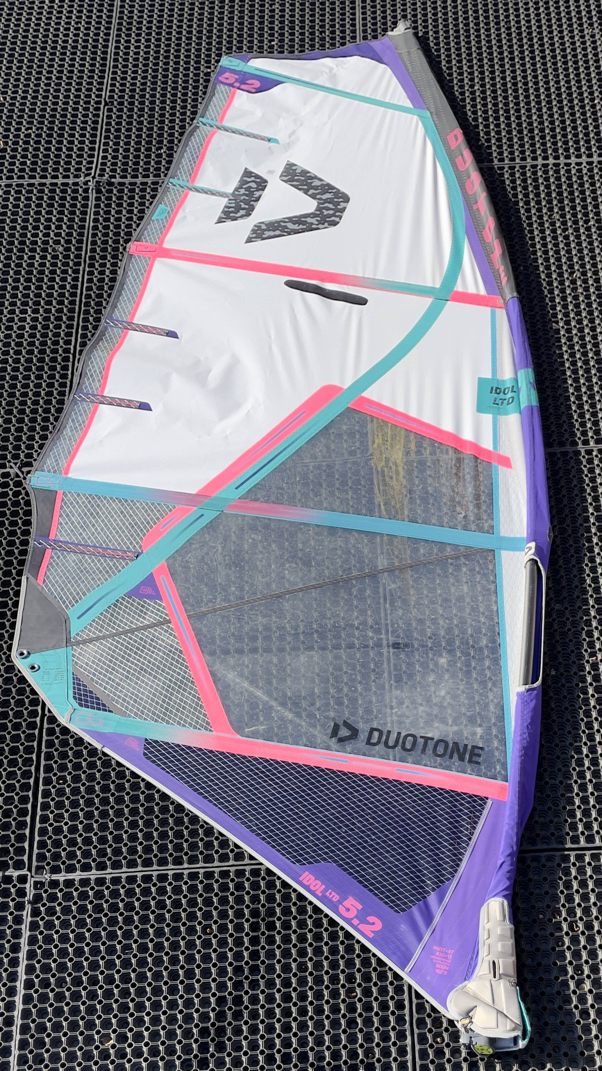 Wir verkaufen das Duotone Idol LTD 5,2 aus dem Jahr 2021. Das Segel war bei uns im Verleih im Einsatz, ist aber noch in einem guten Zustand.