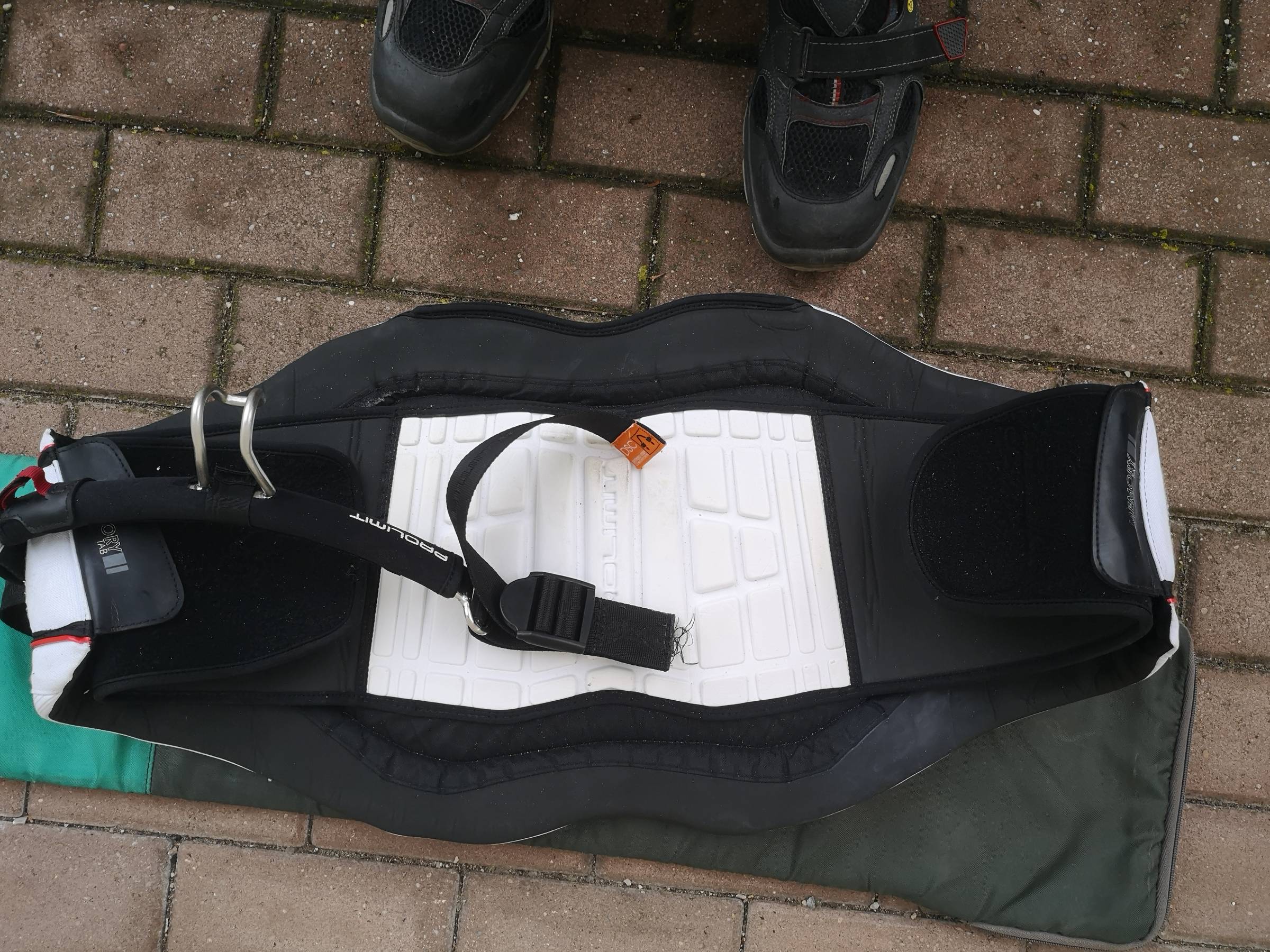 Der Gurt vom Haken ist auf einer Seite ausgerissen, vielleicht kanns ja jemand richten. Das Trapez wurde nur selten gebraucht.