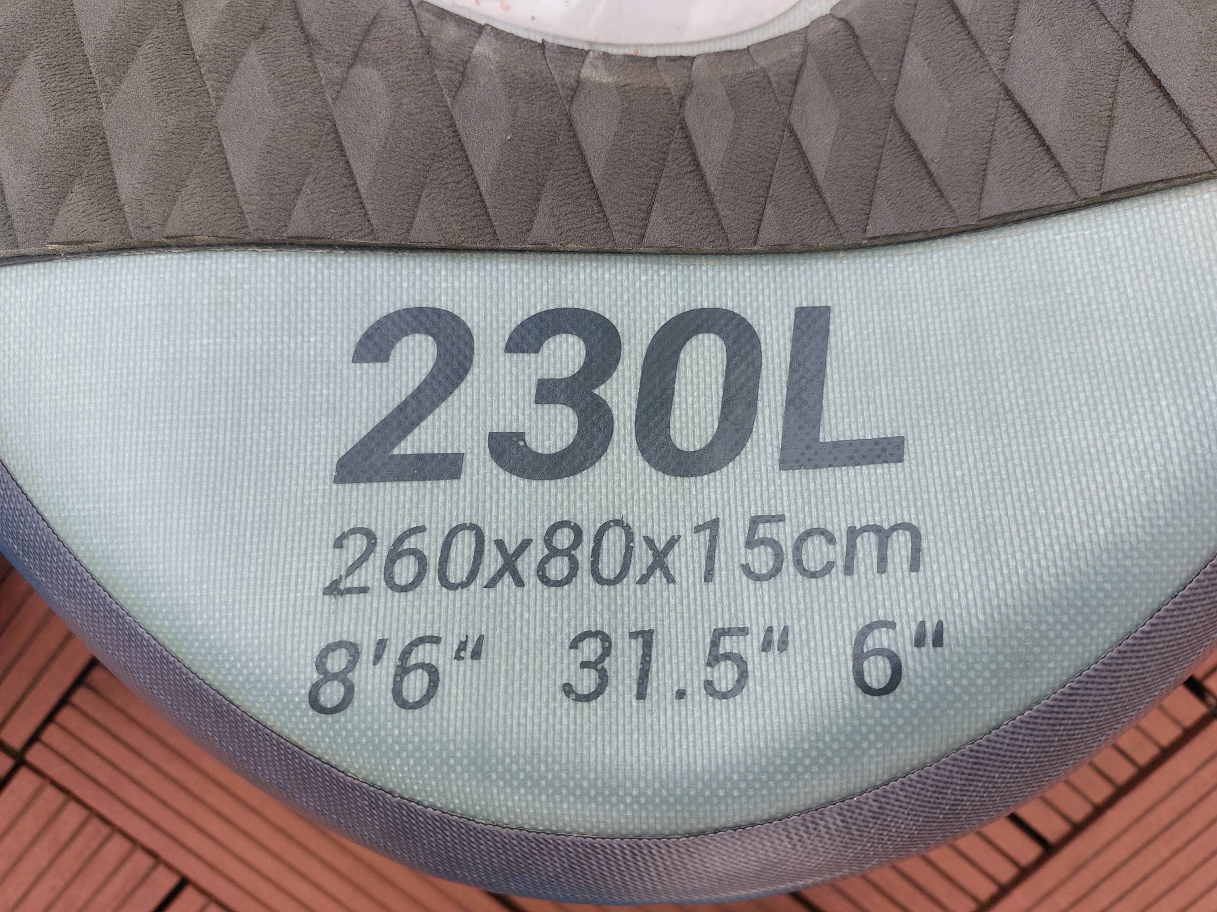 1x Tamahoo Windsurf-Board 230l, 260x80x15cm (LxBxH) in aufgepumpten Zustand