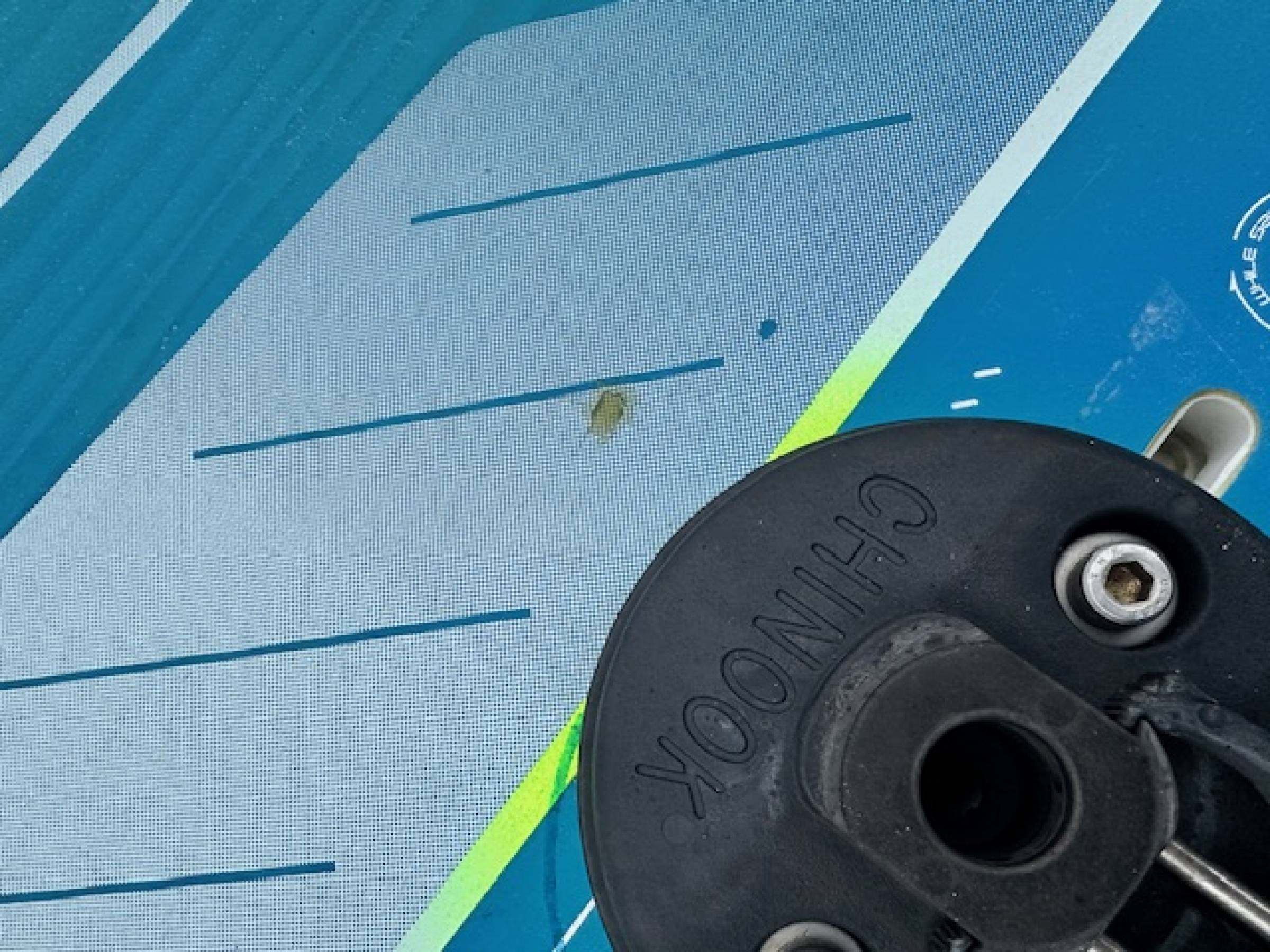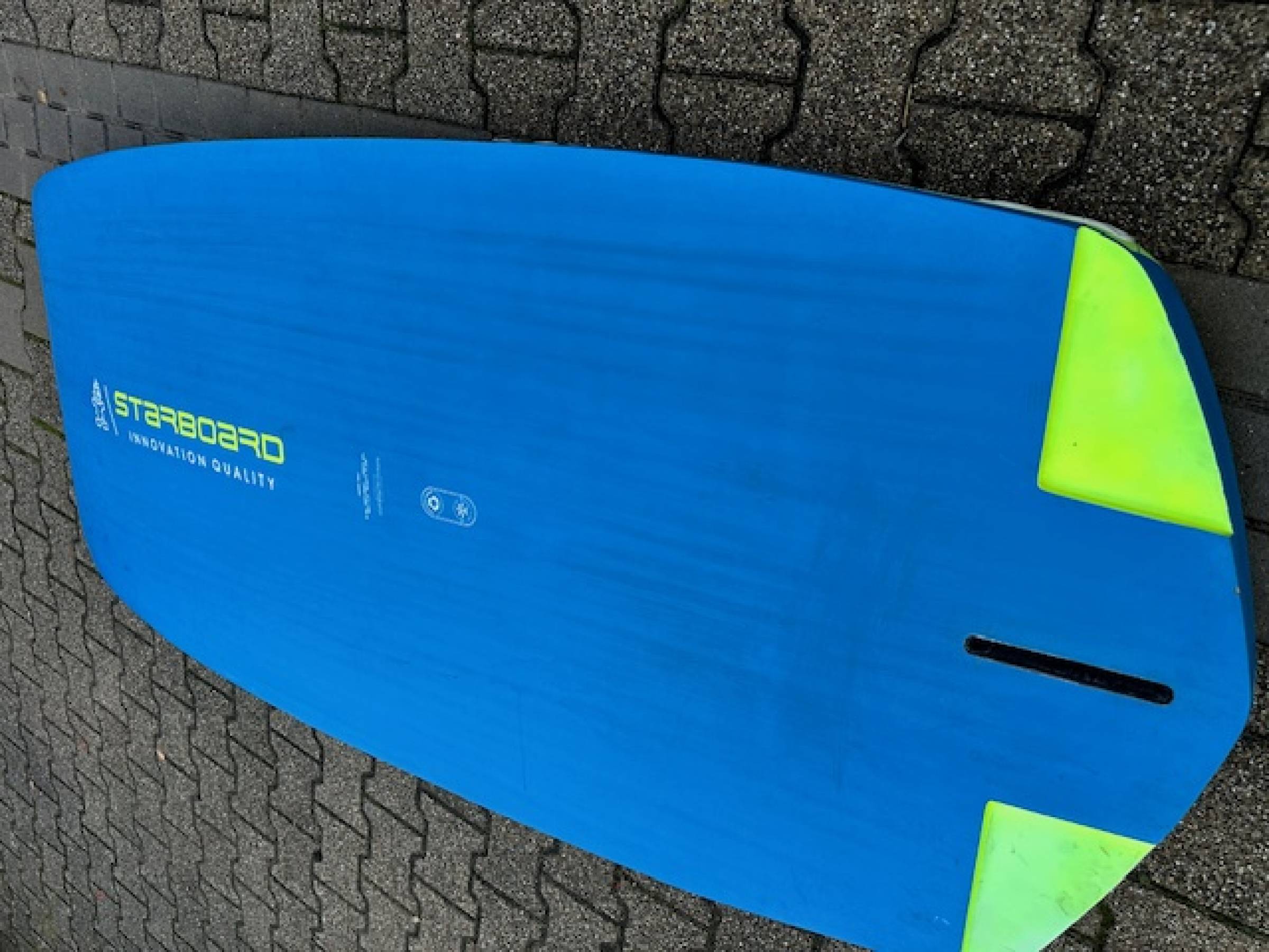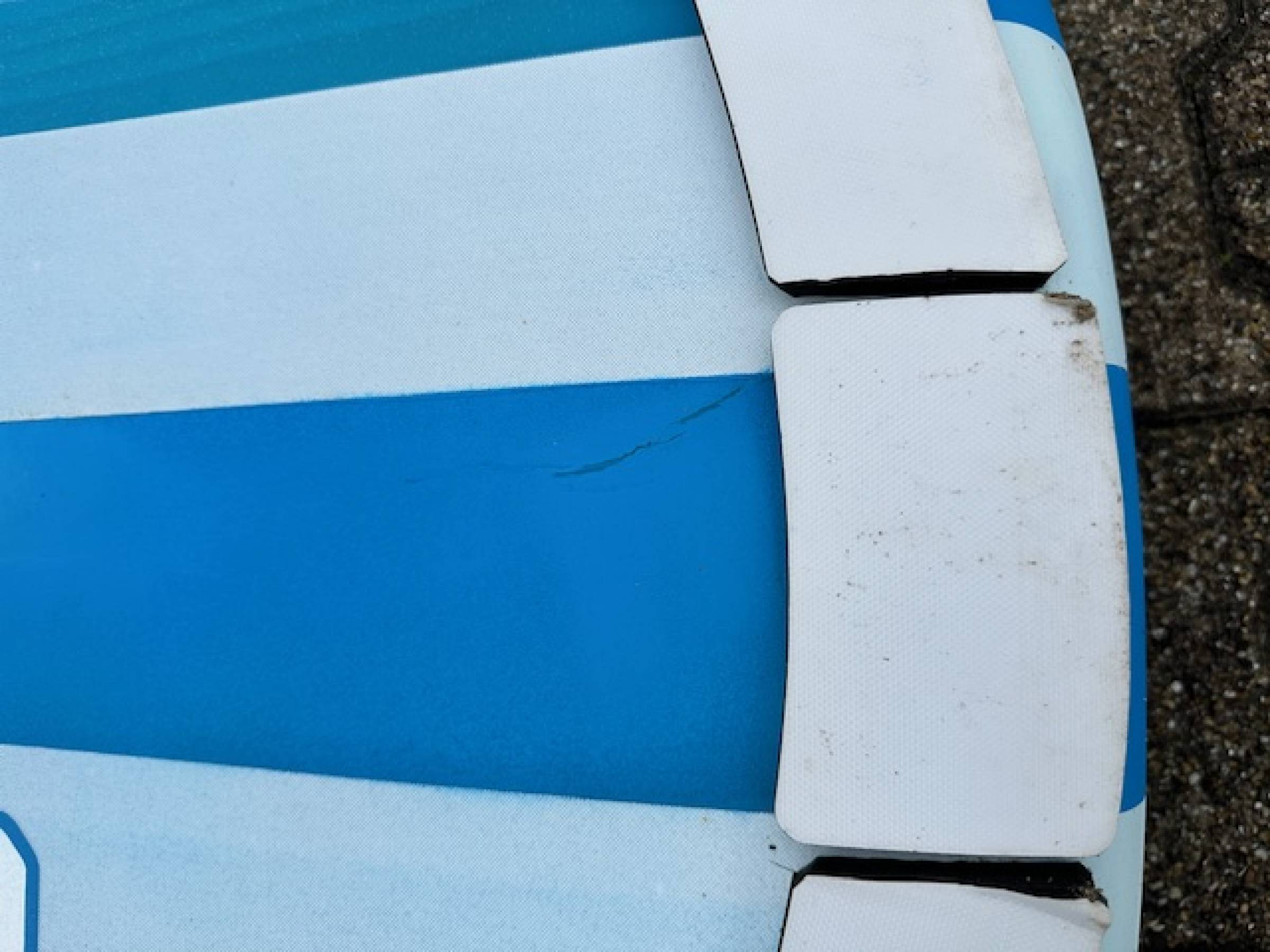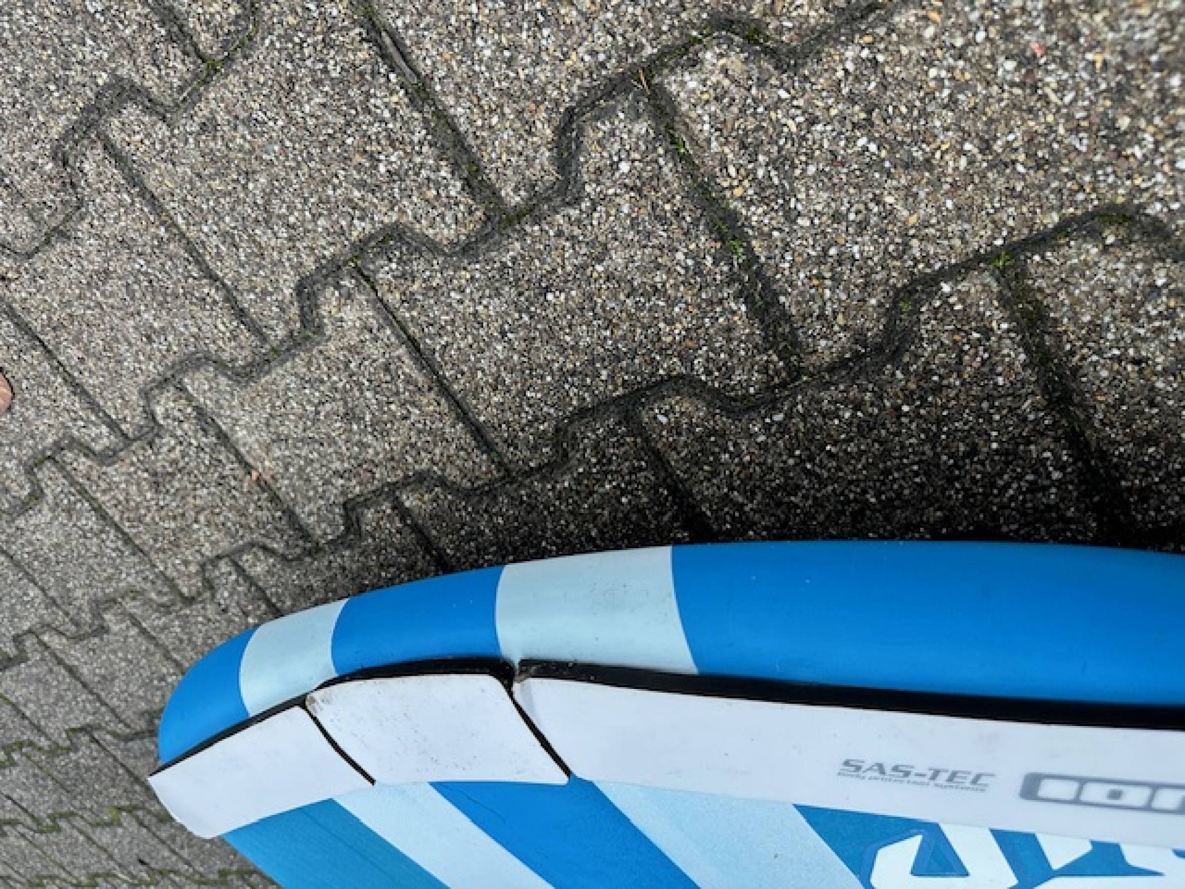 Keine weichen Stellen oder größere Beschädigungen, aber natürlich hat es Gebrauchsspuren, einige Lackschäden und Kratzer habe ich nachgebessert. Es hat keine weichen Stellen oder Wasser gezogen. Wer ein unkompliziertes Foilboard mit normalen Gebrauchsspuren sucht, und nicht zu viel investieren möchte, ist hier richtig.