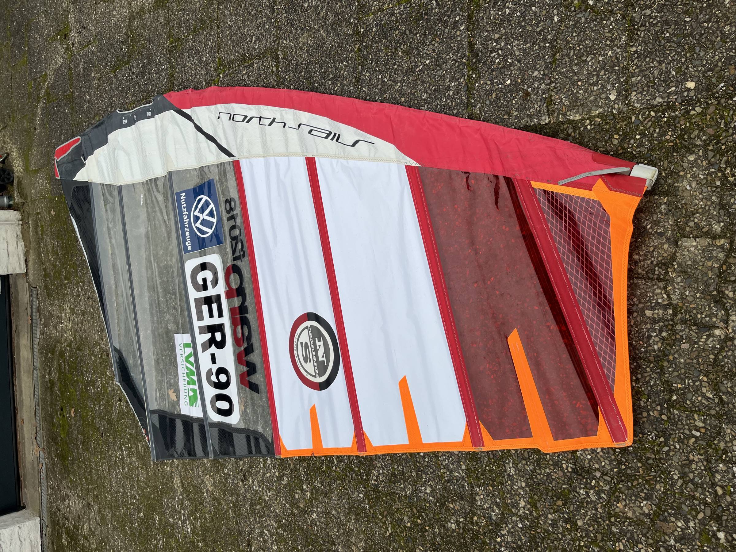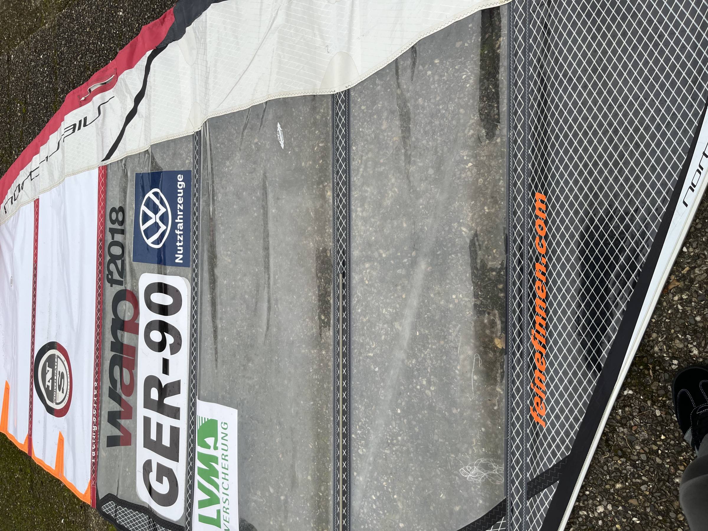 Das Segel ist in einem absoluten Top-Zustand. Es hat keine Risse, keine Löcher und keine Mängel. Der Monofilm ist klar und das Segel wurde immer extrem pfleglich behandelt. Es fährt sich fantastisch und ist eine echte Rennmaschine.