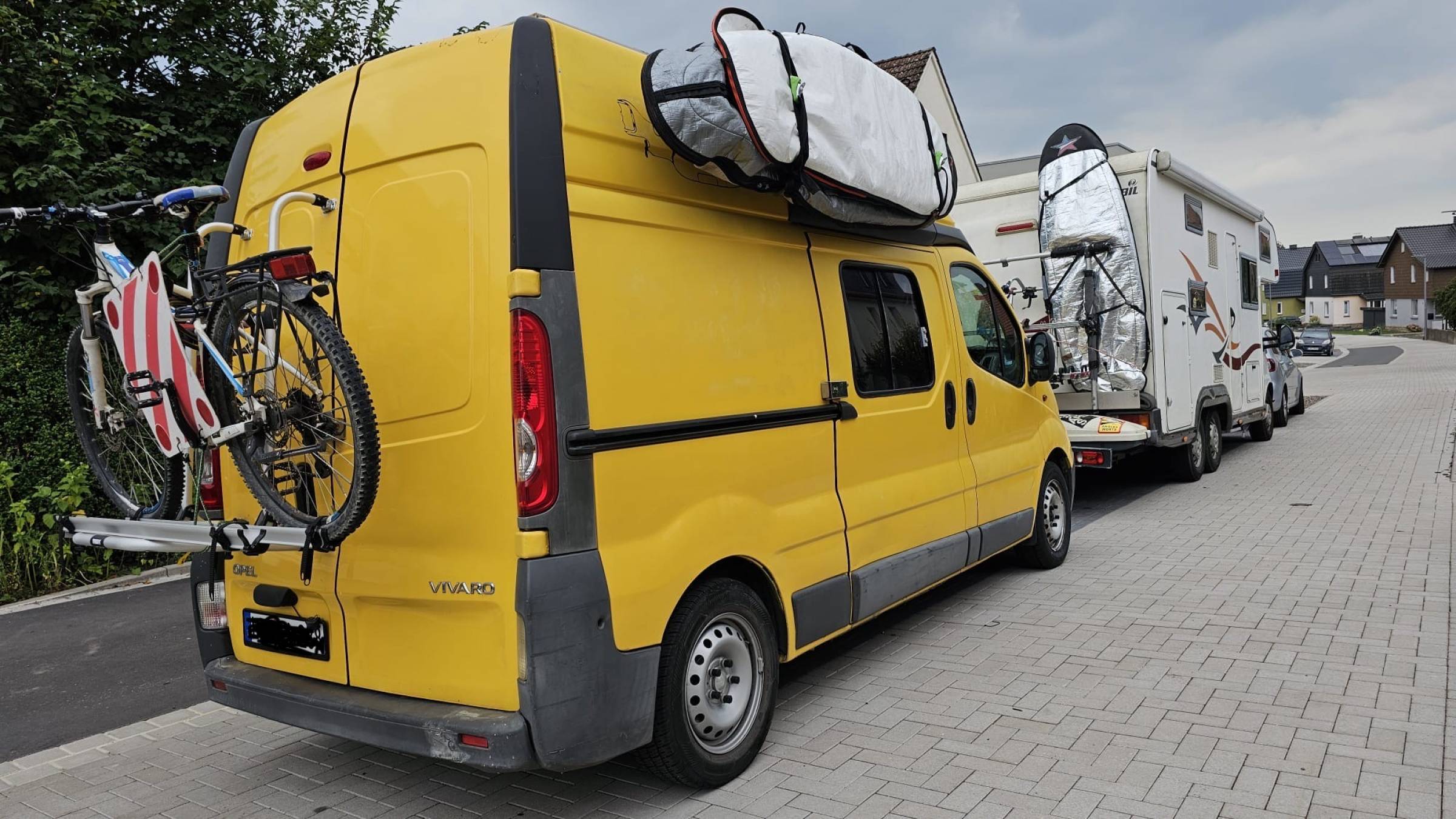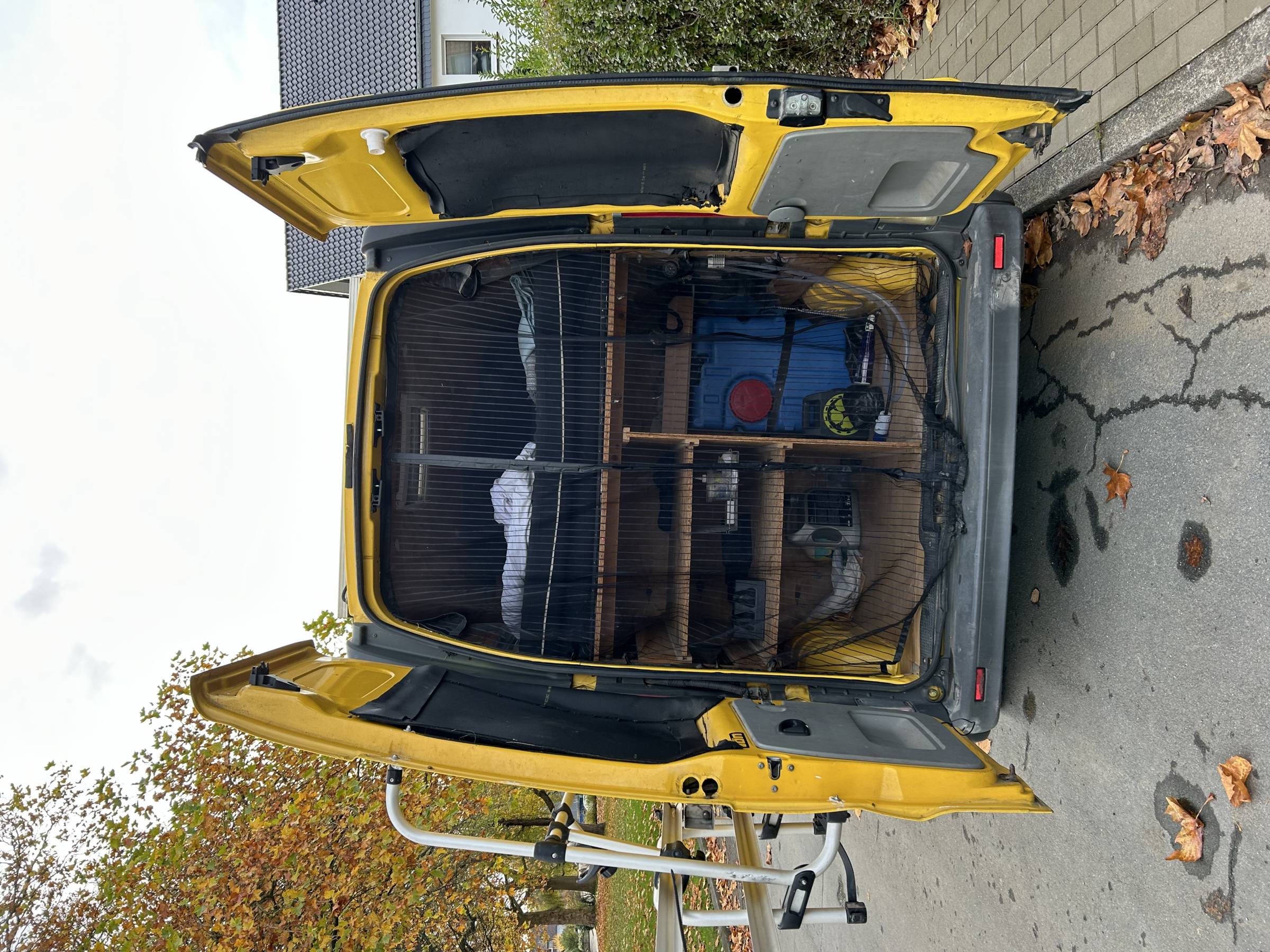 Nachgerüstet wurden ein Thule Fahrradträger, sowie ein Surfboard-Halter für bis zu zwei Boards. Außerdem verfügt das Auto über 2 Außenboxen, welche weiteren Stauraum bieten (z.B. für Windsurfmasten, Segel o.Ä.). Für eine Leichtere Nutzung ist auch eine kleine Leiter dabei. Diverses Camping-Zubehör (z.B. Tisch, Stühle etc.) können bei Bedarf mit gekauft werden.