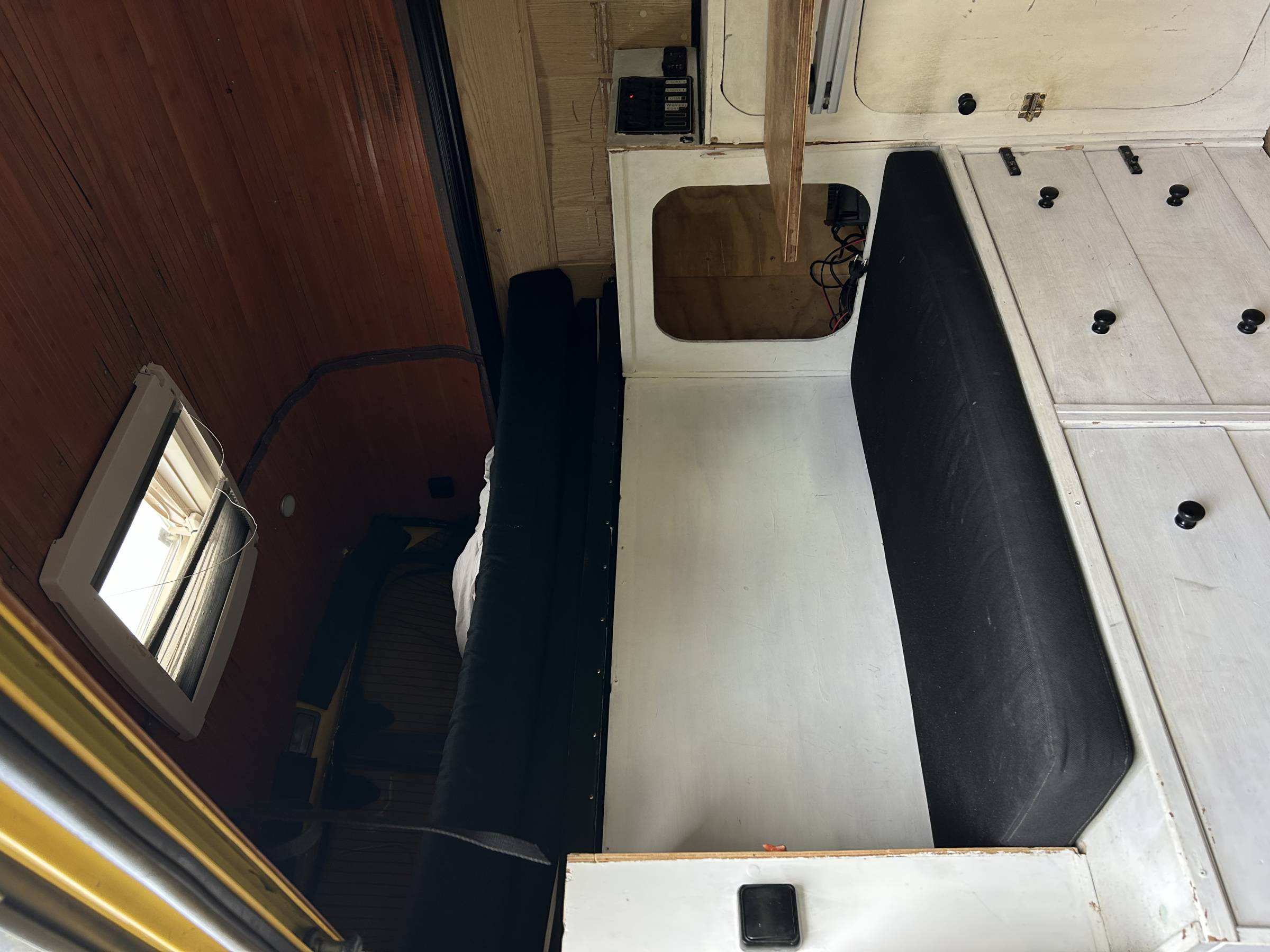 Das Auto verfügt über einen liebevollen Holzausbau mit einer Küchenzeile (inkl. Waschbecken und elektr. Wasserhahn), einer Sitzbank, einem schwenkbaren Tisch und einem Bett, welches mithilfe von Schwerlastauszügen ausgefahren werden kann. Außerdem gibt viel Stauraum, damit auch alles nötige für die nächste Reise eingepackt werden kann! Die Doppelsitzbank in der Fahrerkabine kann umgedreht werden. Dies erzeugt ein noch schöneres Raumgefühl und ermöglicht das Gegenübersitzen (z.B beim Abendessen oder einem gemütlichen Spieleabend).