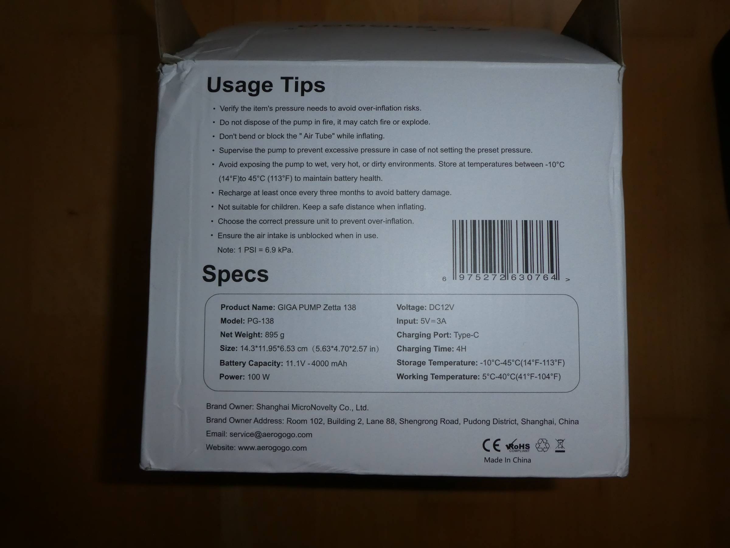 Modell: Aerogogo Giga Pump Zetta 138