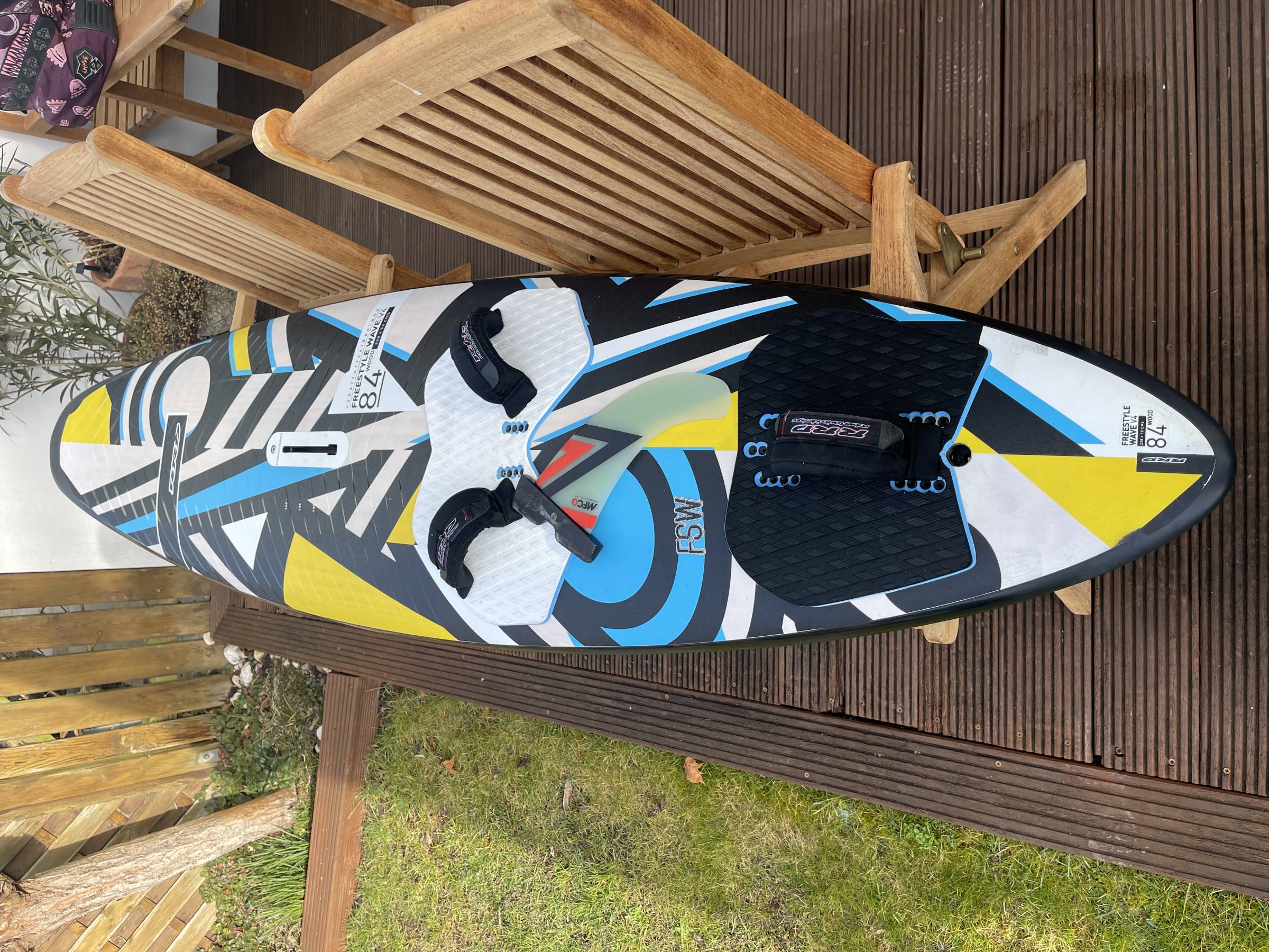 Sehr gut erhaltenes RRD Freestyle Wave V4 Board mit 84 Liter in Woodversion (7,4 kg inkl. Schlaufen). Bj. 2017, Original Schlaufen und Finne. Twin Fins nicht enthalten. Kein Versand.