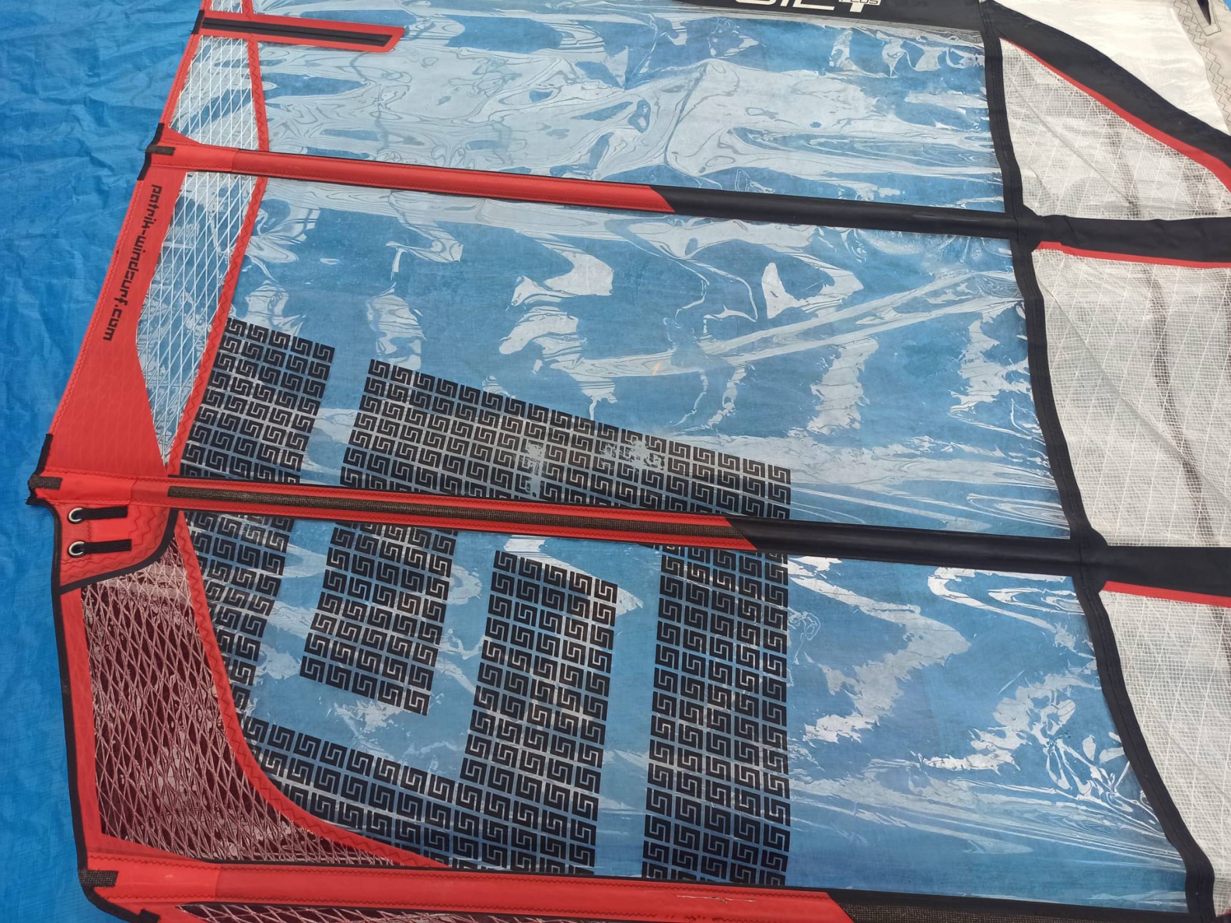 Of course, the equipment has been used, with the expected signs of wear, but nothing unusual. Only both sails have a small tear in the mast sleeve in the same spot. This is a minor issue with the Patrik sails and requires some attention when rigging, but it doesn't affect the sailing.