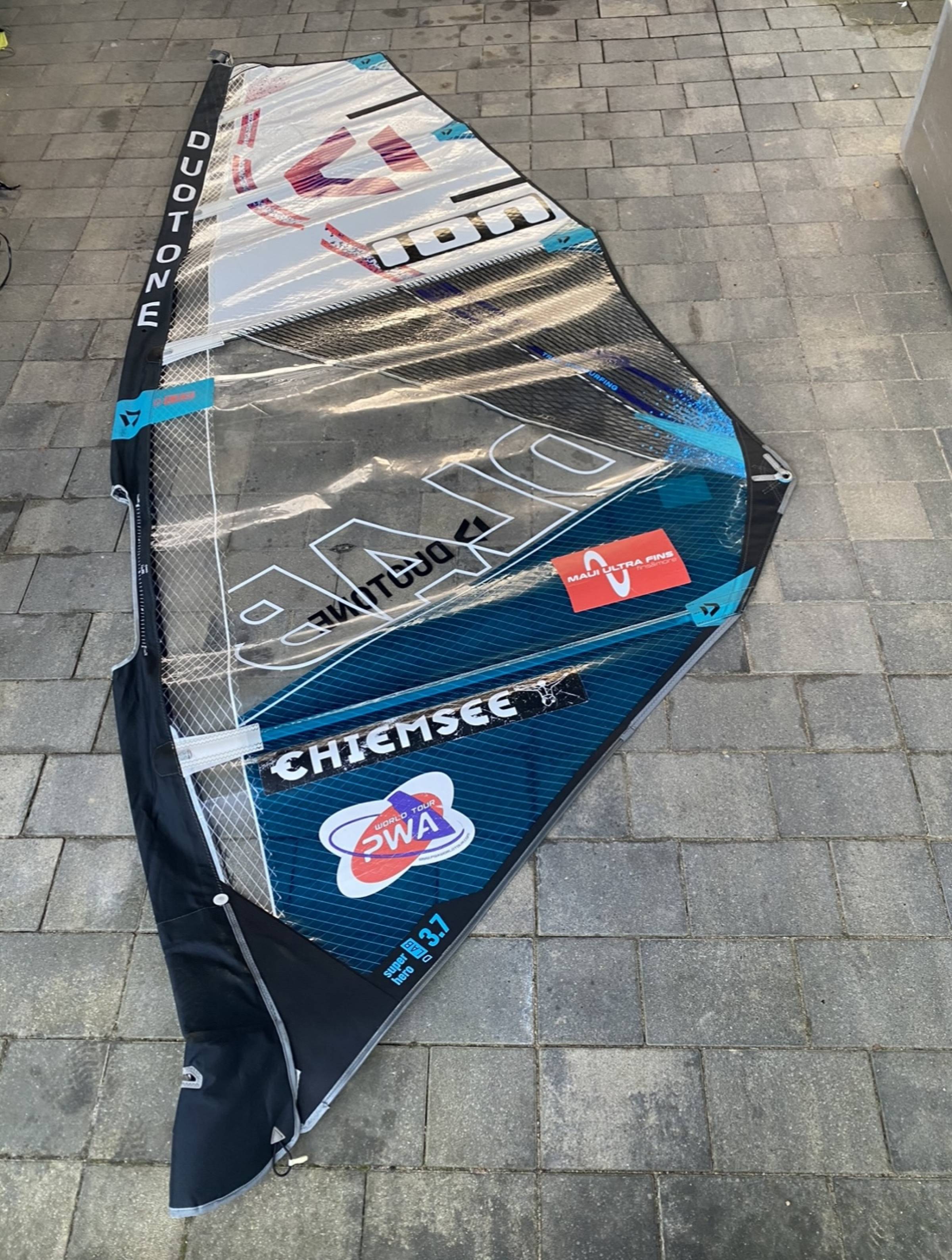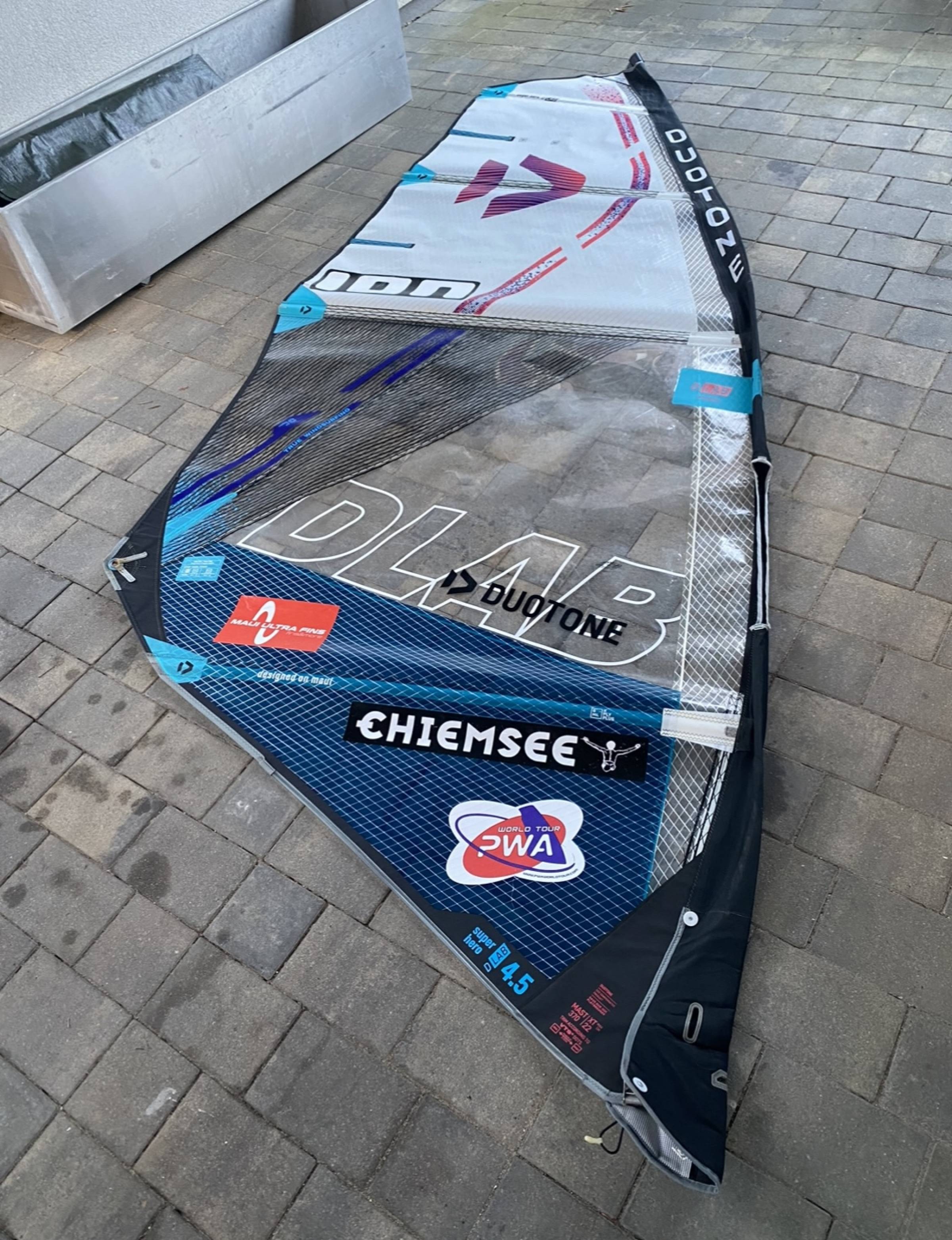 ich verkaufe hier mein 4.5er Super Hero D/LAB. Ich bin es eine Saison lang gefahren. Das Segel funktioniert super. Es hat eine Reparatur an der Masttasche. eine kleine Stelle an der oberen Latte und eine leichte Verfärbung am clew (siehe Fotos). Beeinträchtigt nicht die Fahrweise. Sonst nur leichte Gebrauchsspuren und leichte Stickerreste.
