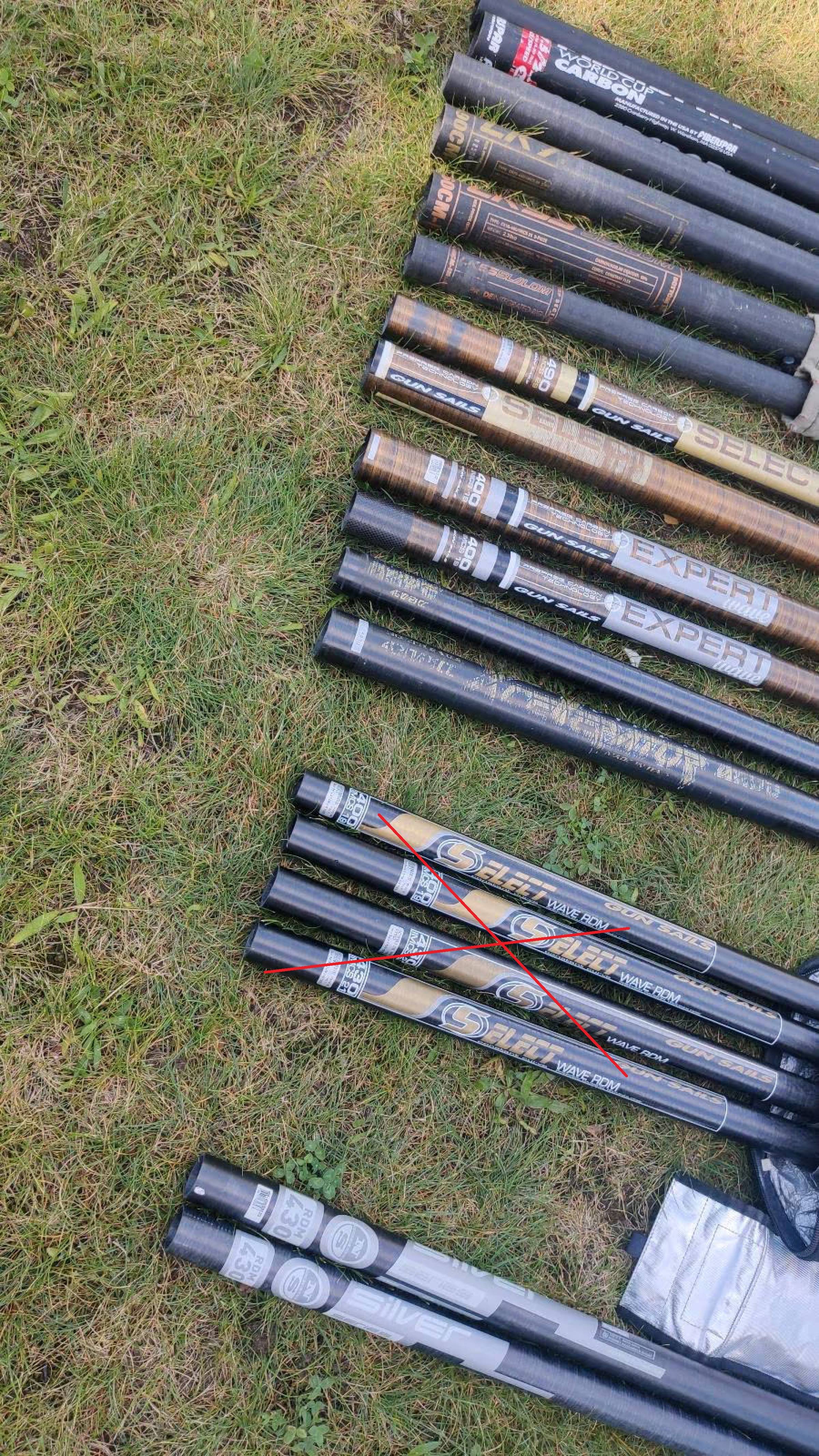 für größere Boards (100, 122, 158Liter auch größere Segel...7.0 GunSails als Rigg mit Mast und Gabelbaum, l Neilprye 6.5 7.4, jeweils Masten 430-460cm 100&55% Carbon, Gabelbäume CARBON! und Alu usw)