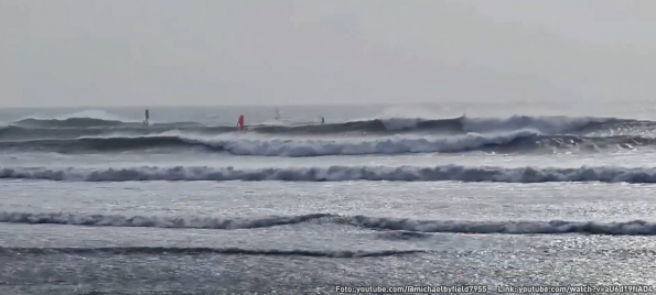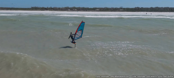 Ein echter Traumtag in der Byron Bay an der australischen Ostküste. So lassen sich Wellen nur mit einem Foilboard abreiten. Früher drauf, schneller unterwegs und längere Ritte als mit einem Longboard. Dann kurz in die nächste Welle wechseln und einfach weiterreiten. Die Drohne folgt Mr. Bennetts durch die gesamte Bucht. Aus der Vogelperspektive sieht man auch die Felsen unter Wasser, tricky - die muss man umfahren.