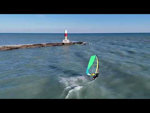 Windsurfen am Waukegan Beach, nördlich von Chicago gelegen. Drone Shots vom Freeriden aus November. Ähnlich wie bei uns gehen die Temperaturen am Lake Michigan im Winter runter an die 0 Grad Grenze.