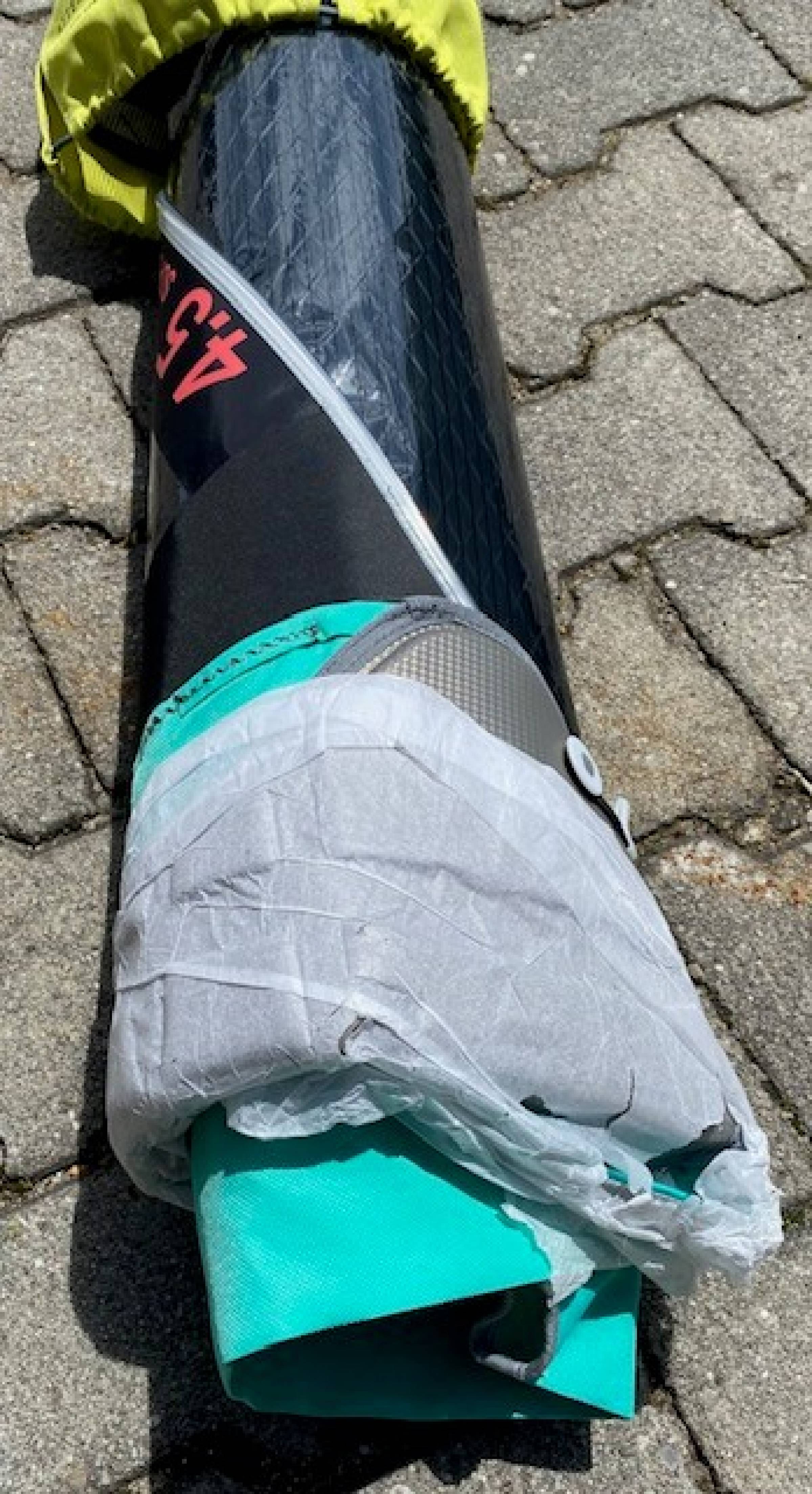Die Bilder zeigen das Segel wie es ist - ist nicht ausgepackt worden und noch mit Papier.