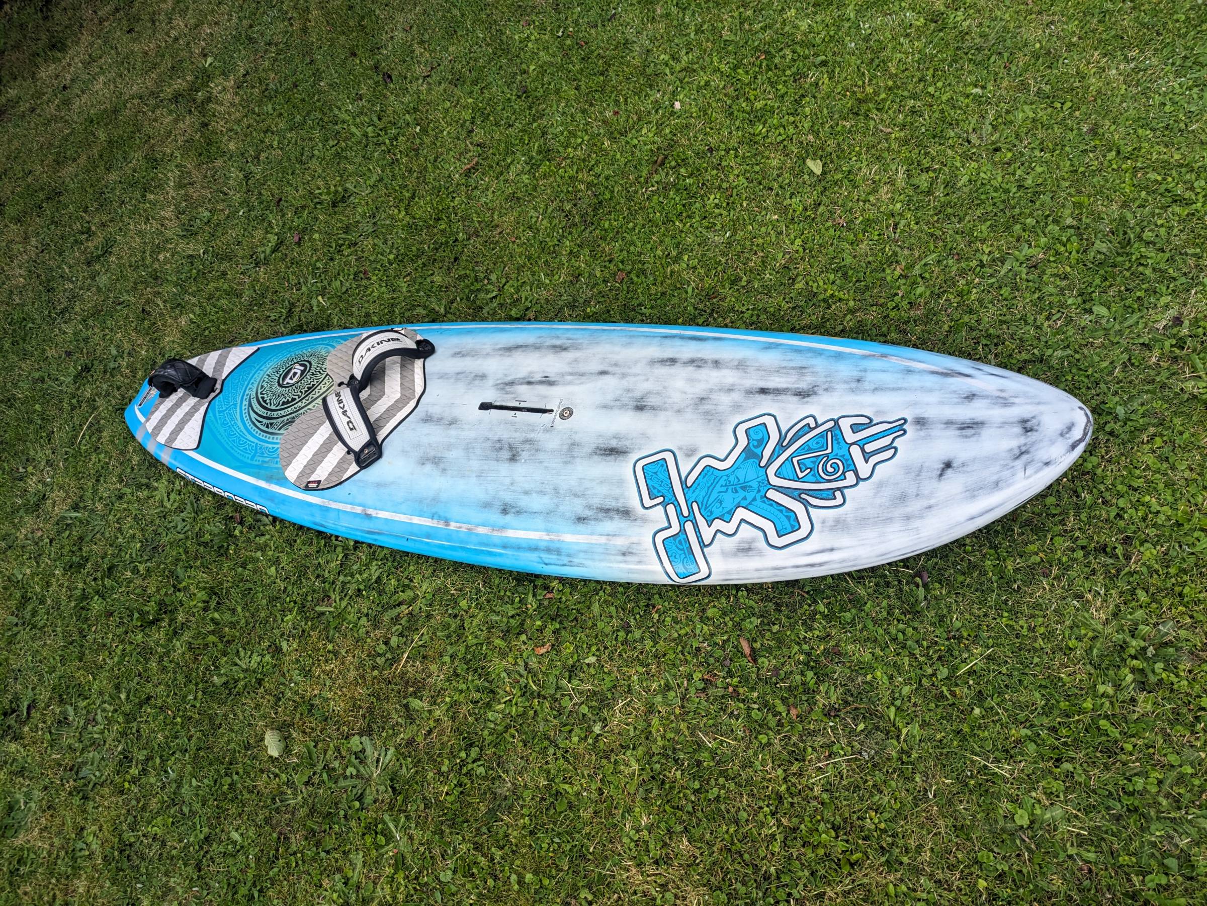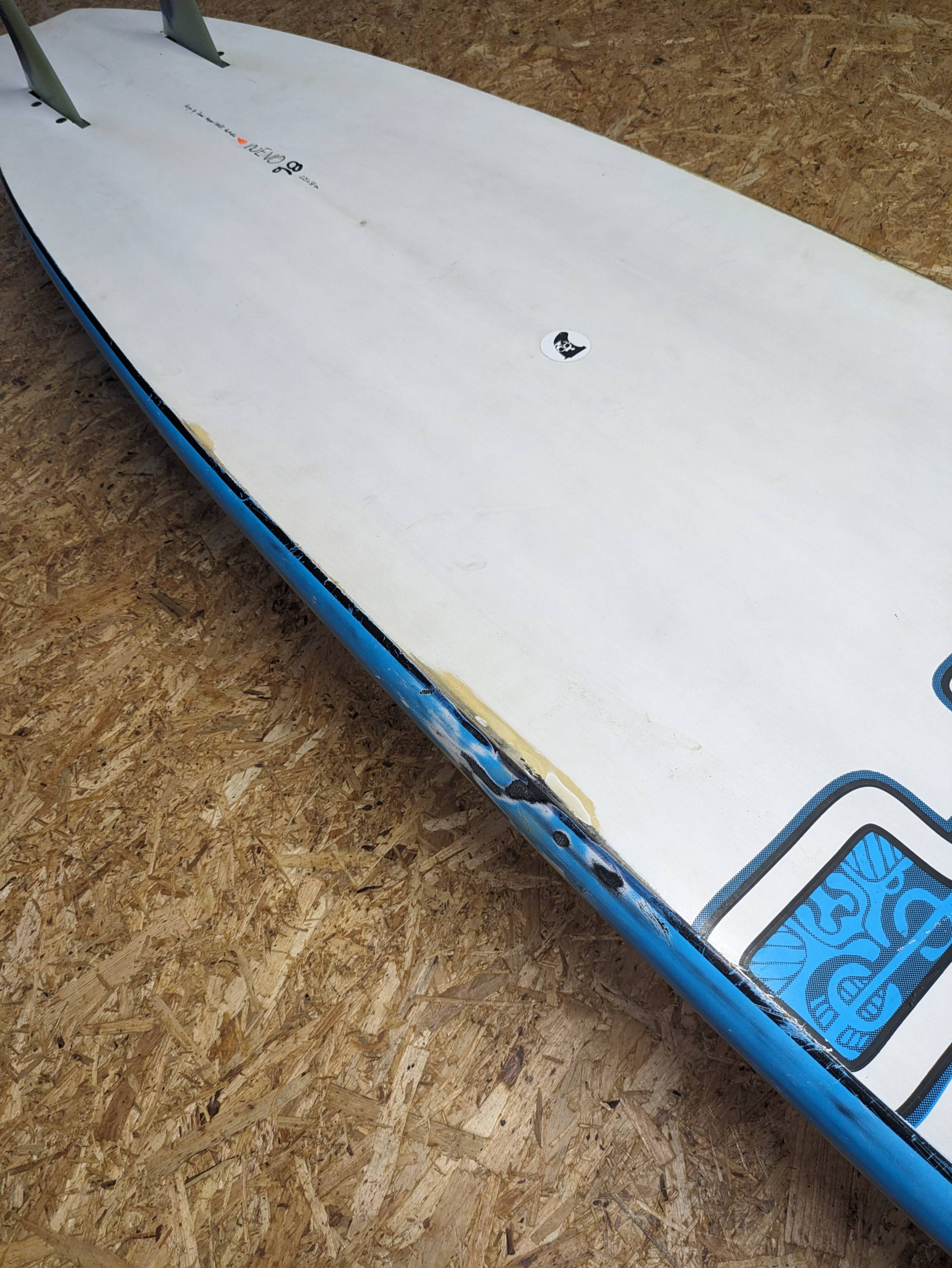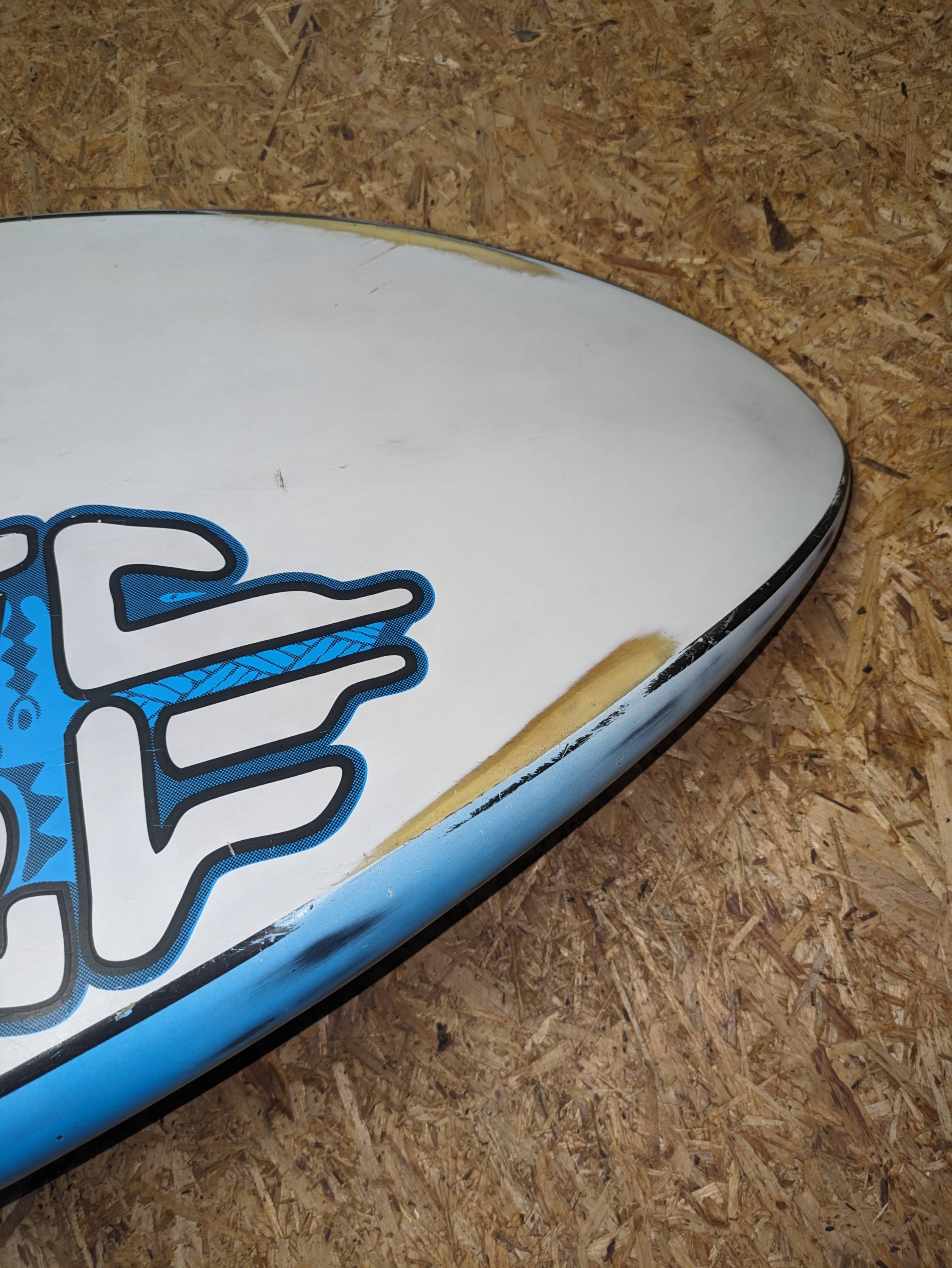 hat 2 kleine Ausbesserungen im Bugbereich und an der Kante was bei einem Waveboard nicht ausbleibt.