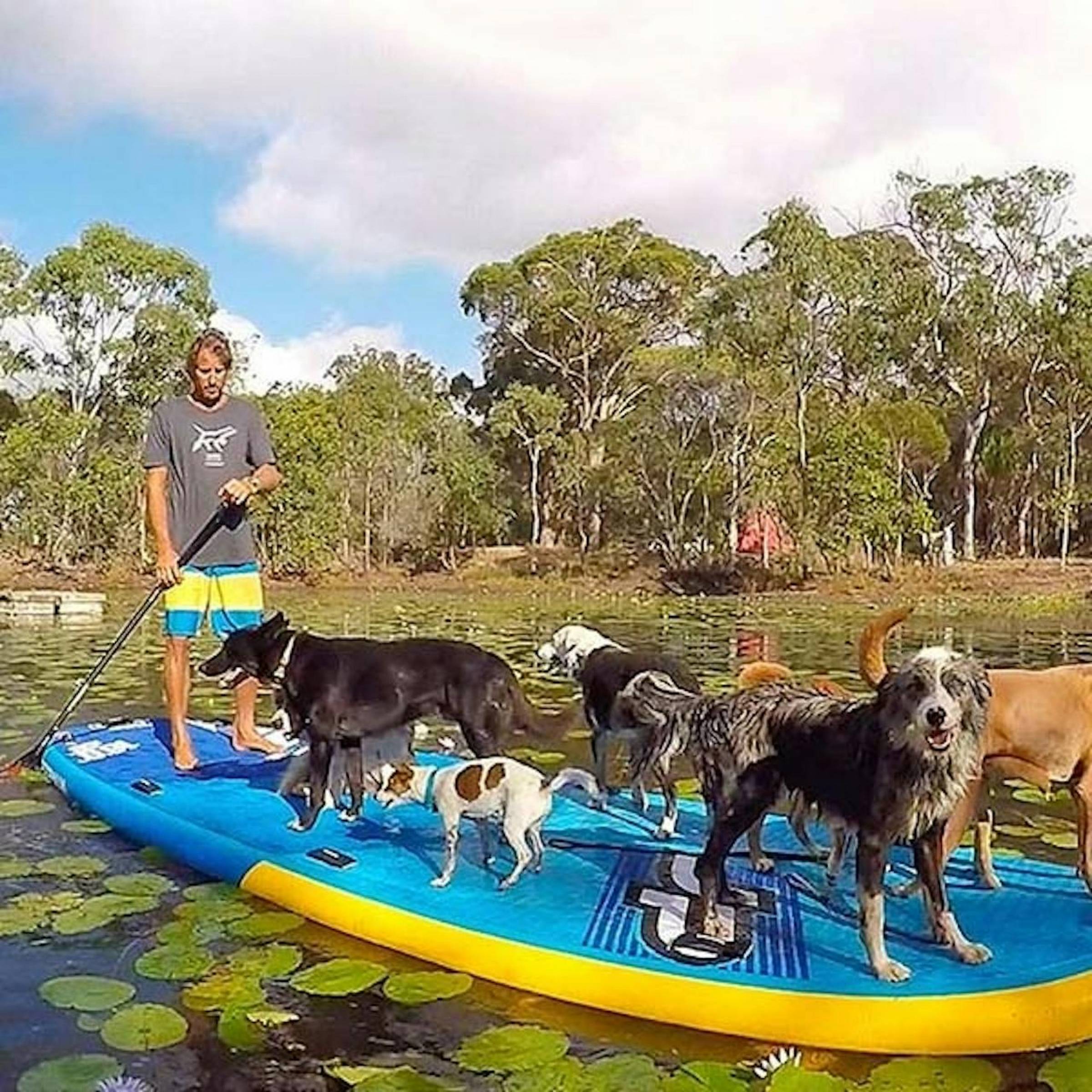 Das Board kann mit 2 Windsurfsegeln oder auch nur mit Paddeln genutzt werden.