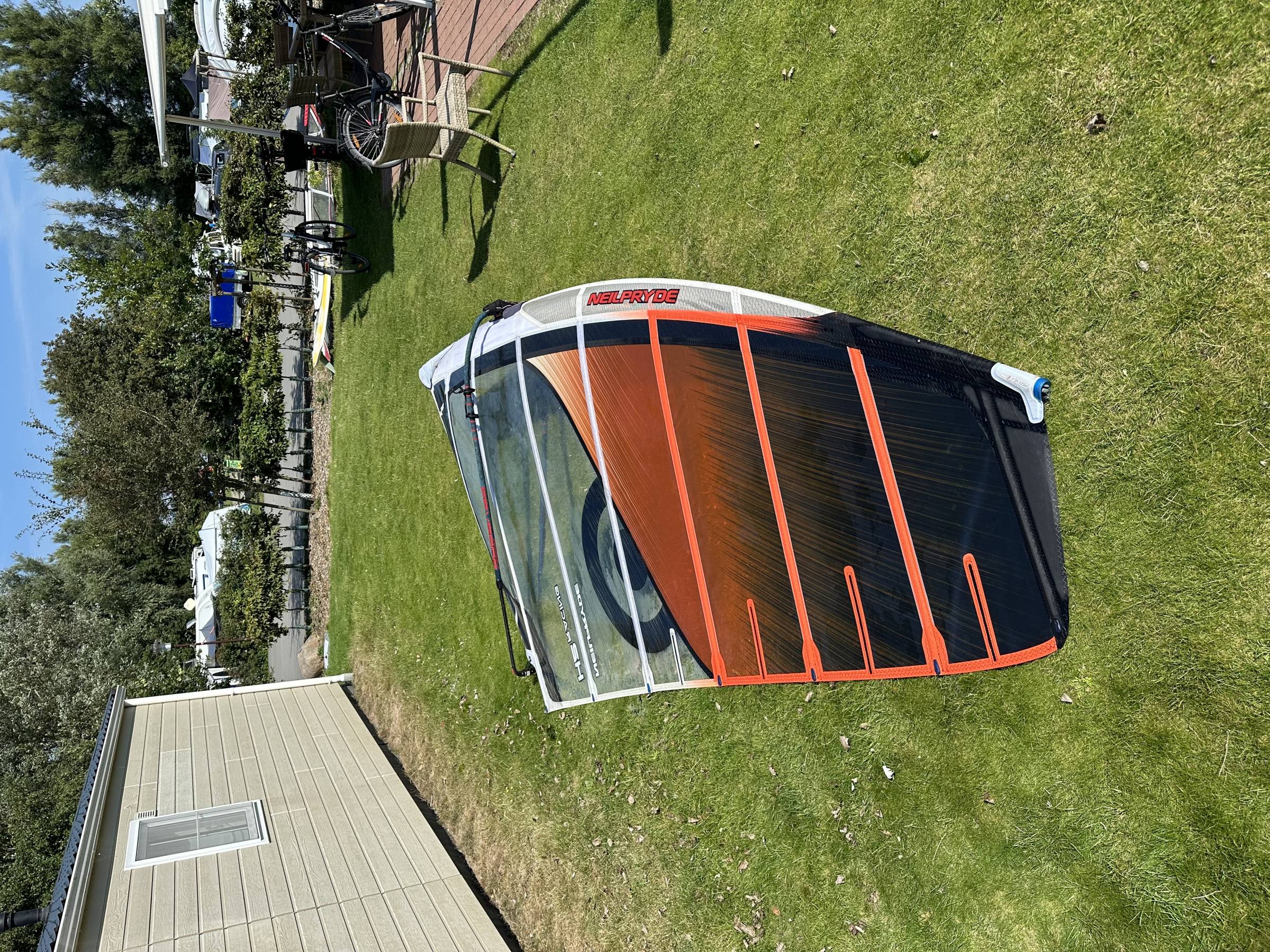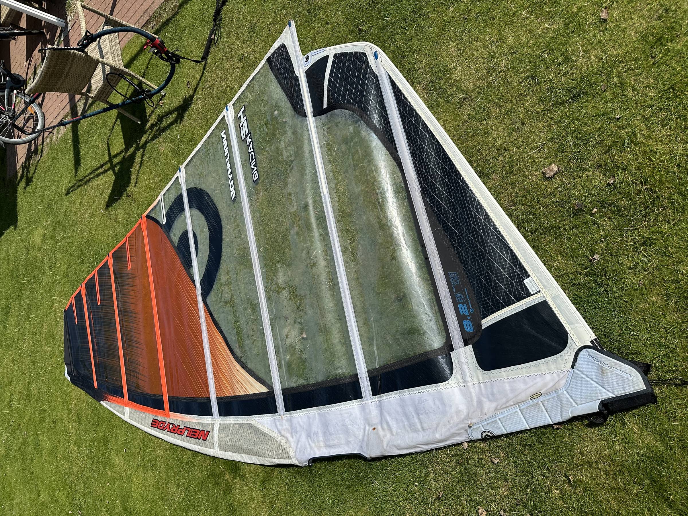Schönes Segel :-), ohne Beschädigung, kleine Knicke, eine kleine Roststelle nähe Camber.