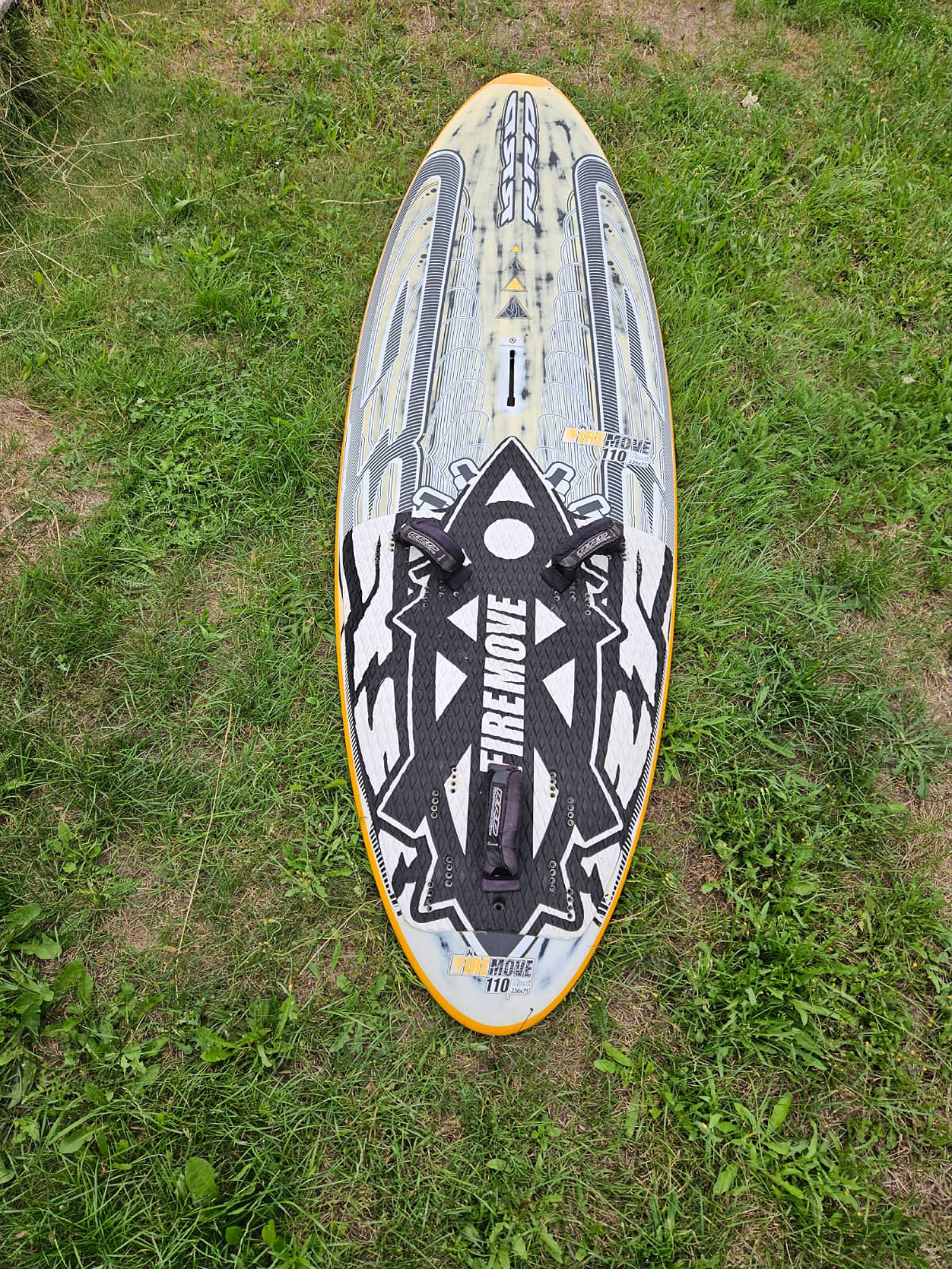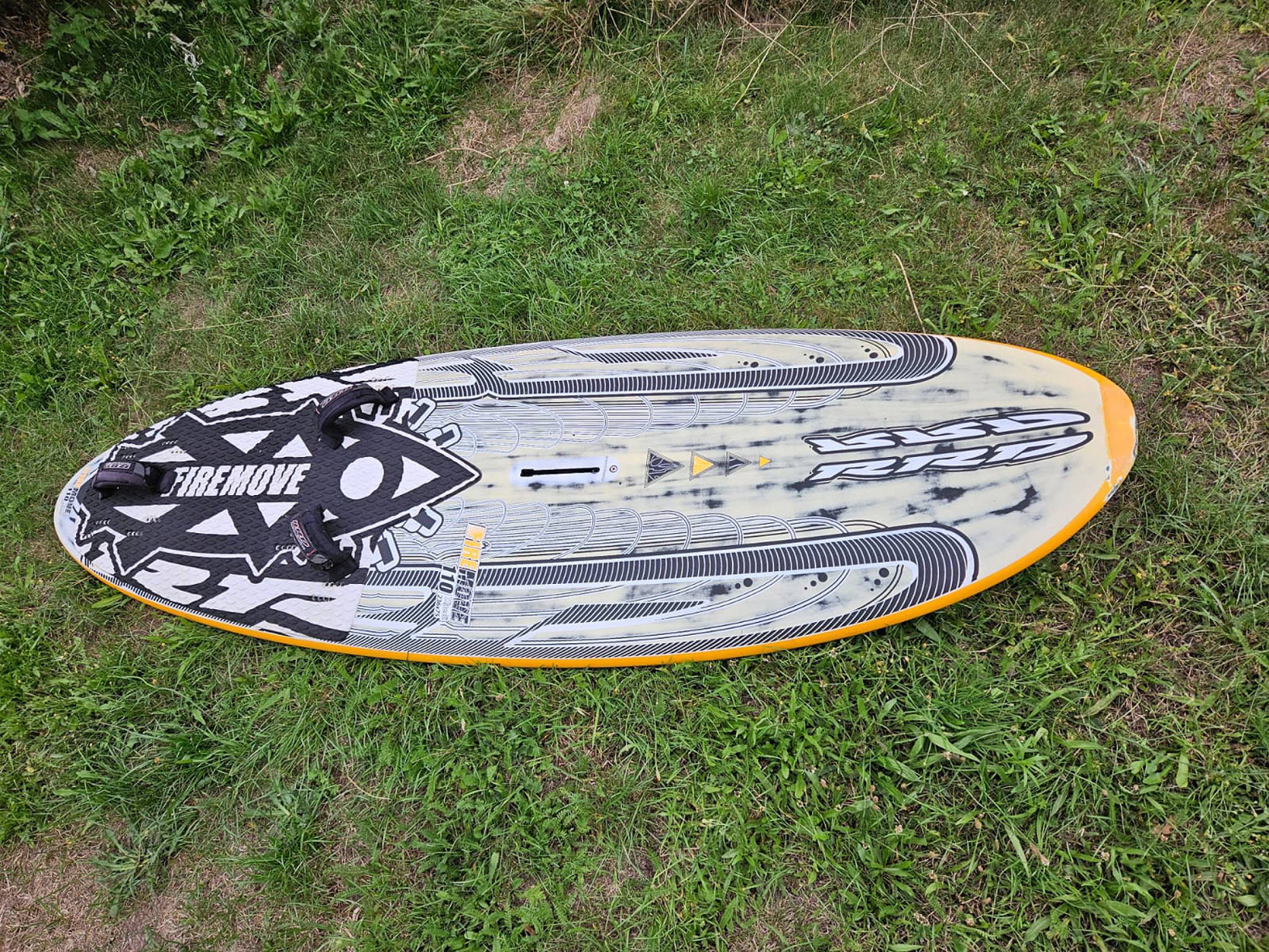 Biete RRD Firemove 110l, kaum gefahren, sehr guter Zustand bis auf eine kleine Reparatur an der Nose, inkl. original Finne und straps 475,-.