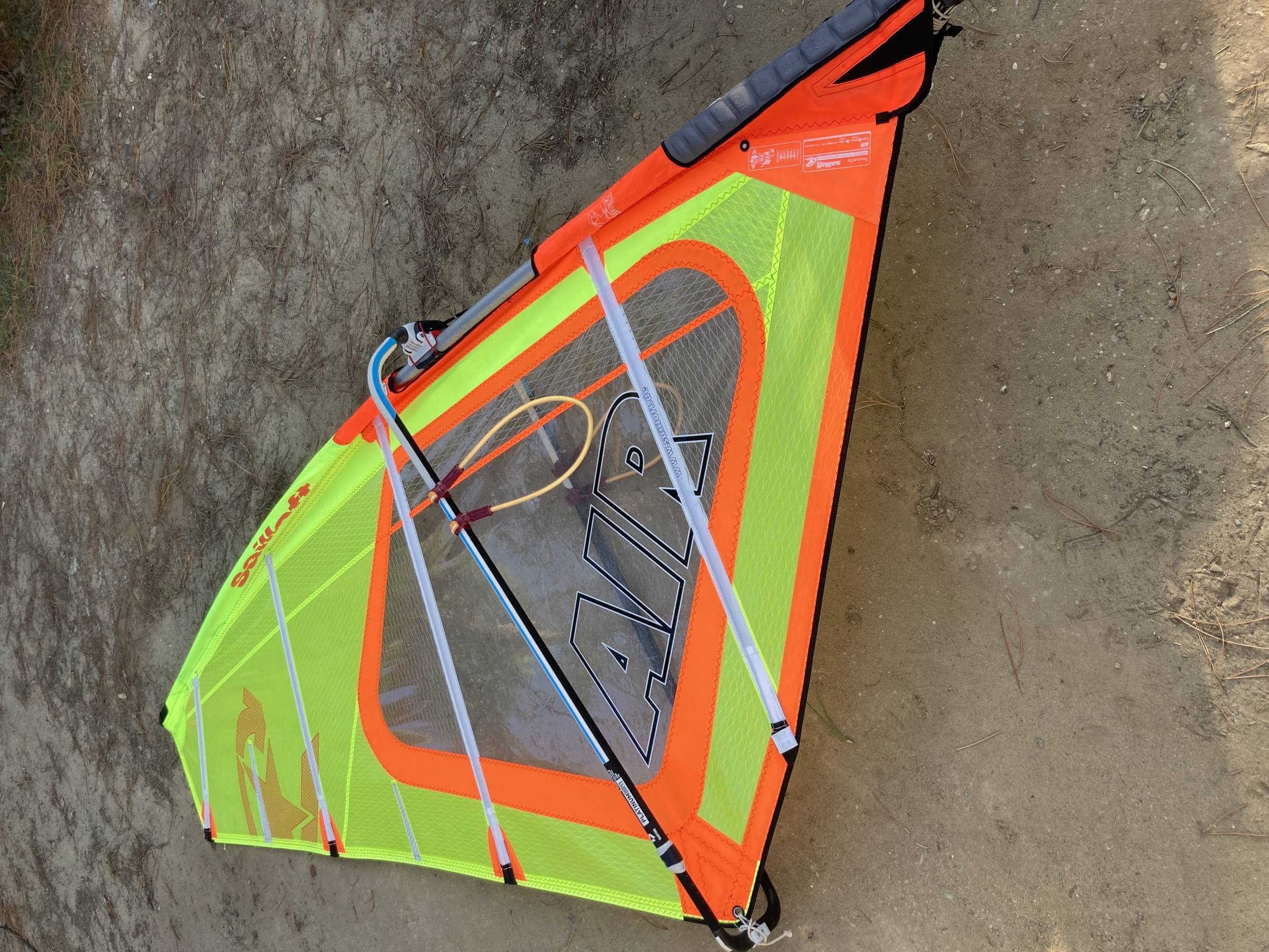 Das Segel wurde 2 Jahre regelmäßig auf der Ostsee gesurft und ist nie mit allzu salzigem Wasser in Kontakt gekommen. Daher ist das Material noch gut erhalten und wird seinem neuen Besitzer sicherlich noch einige Saisons einen guten Dienst leisten.