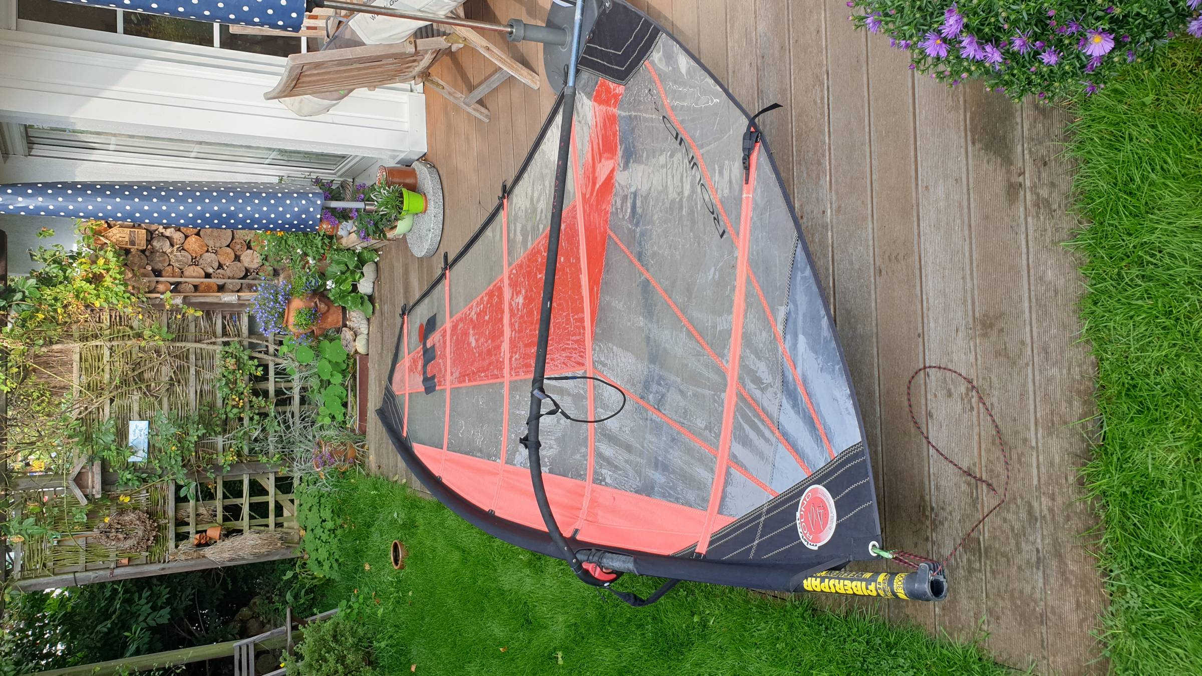 Verschenke Segel incl. Epoxy-Mast, ohne Gabelbaum, Mastverlängerung und Mastfuß