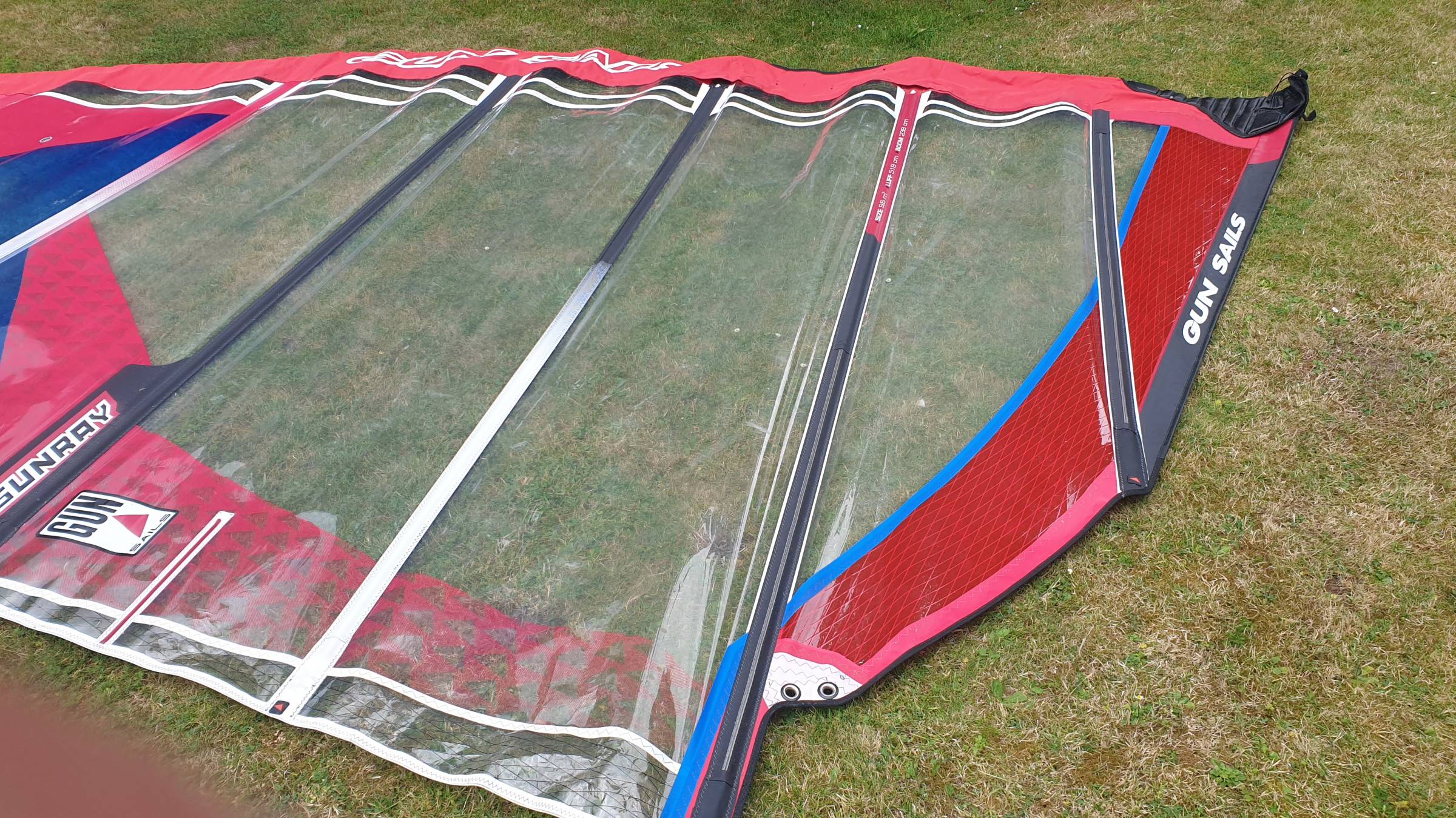Wenig genutztes Gunsail Sunray 9,6, ca.10 Jahre alt. Bis auf ein paar Knicke hat das Segel keine Beschädigungen.