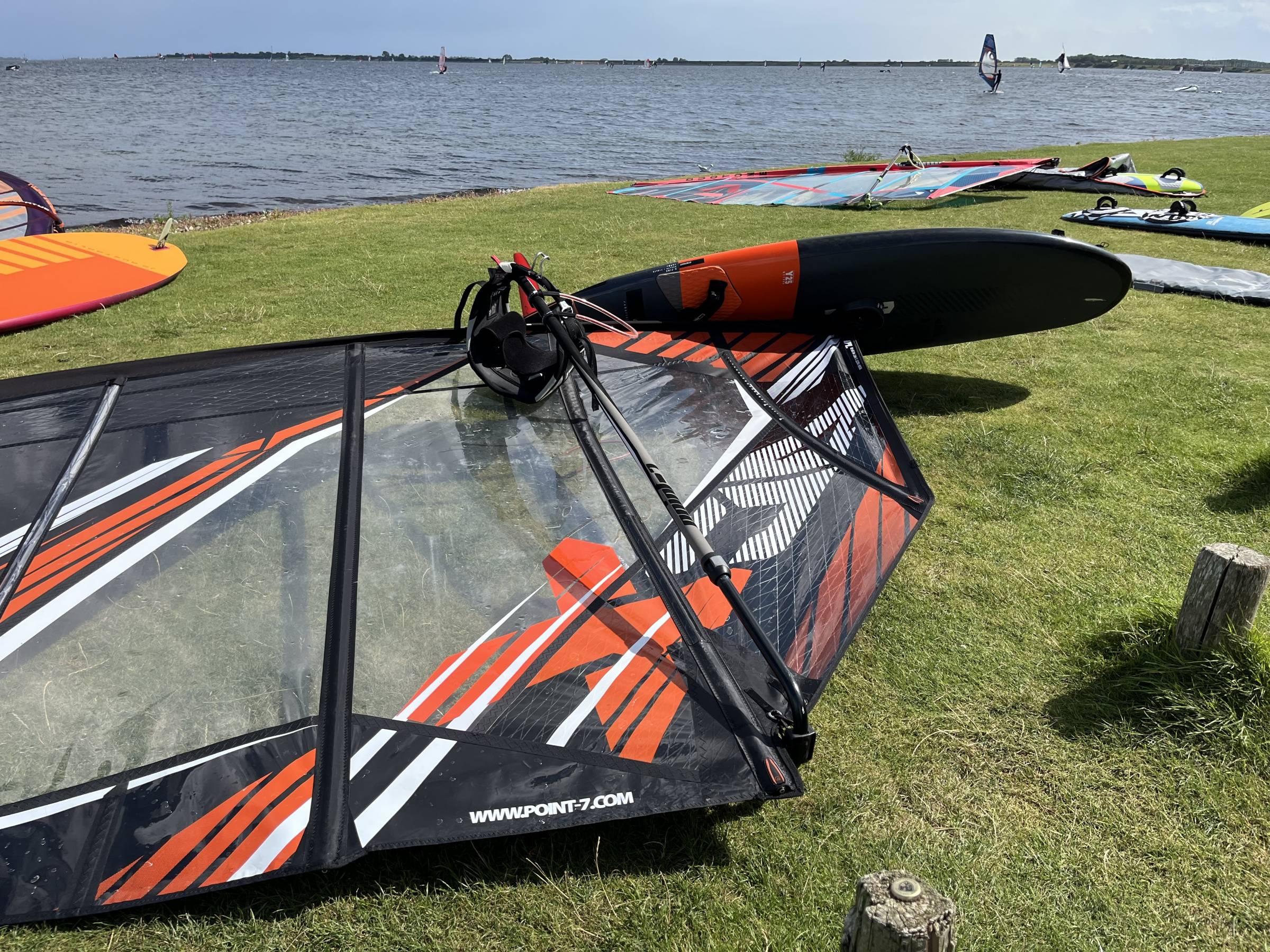 Ich fahre das Segel mit einem 460er RDM Mast, es funktioniert perfekt damit. Laut Point 7 sind beide Durchmesser, RDM und SDM okay. Das Segel ist in einem guten, gebrauchten Zustand, keine Risse, alle Nähte und Latten sind okay. Der Mastfuß-Protektor das Segels hat ein Loch.