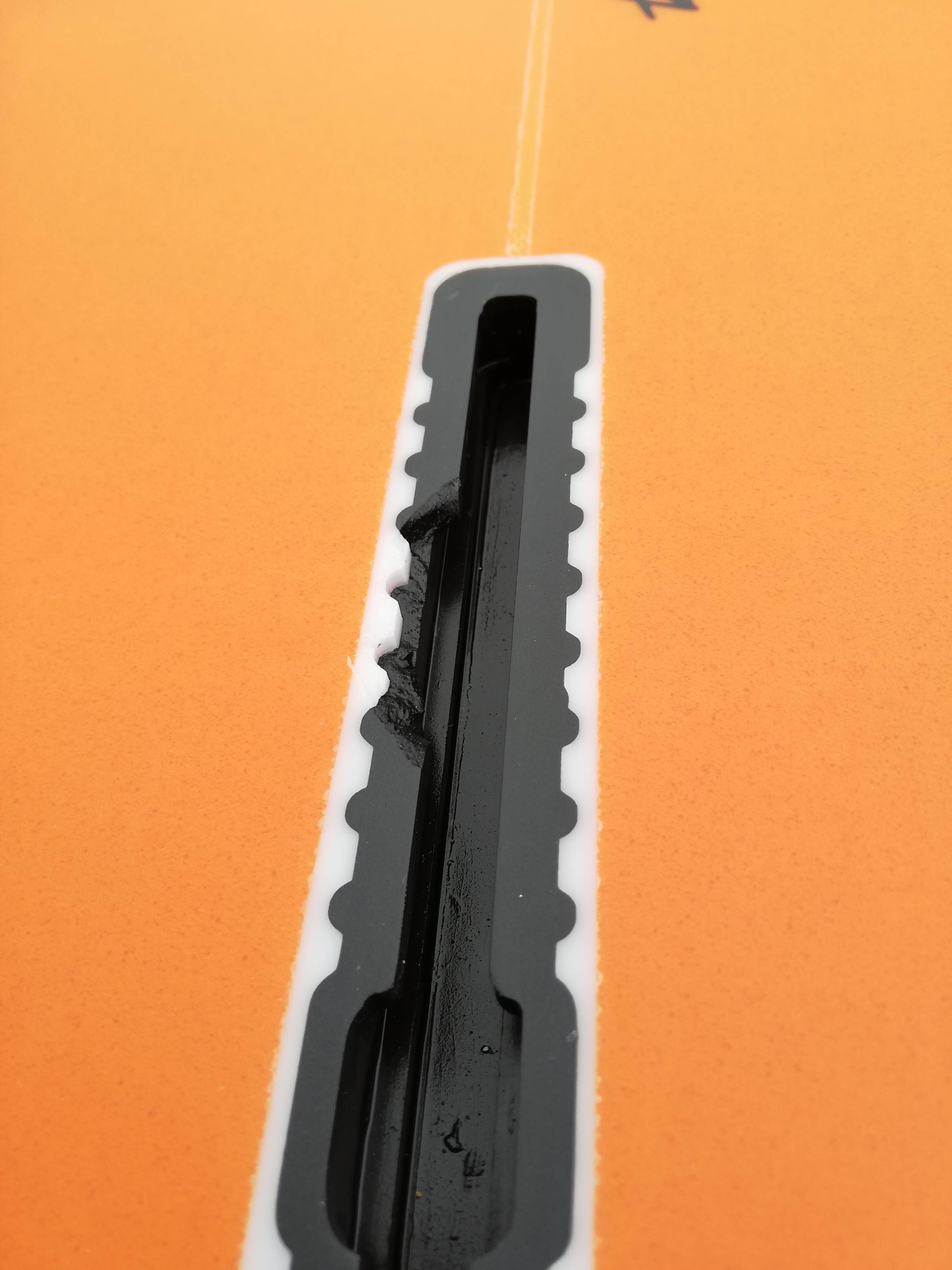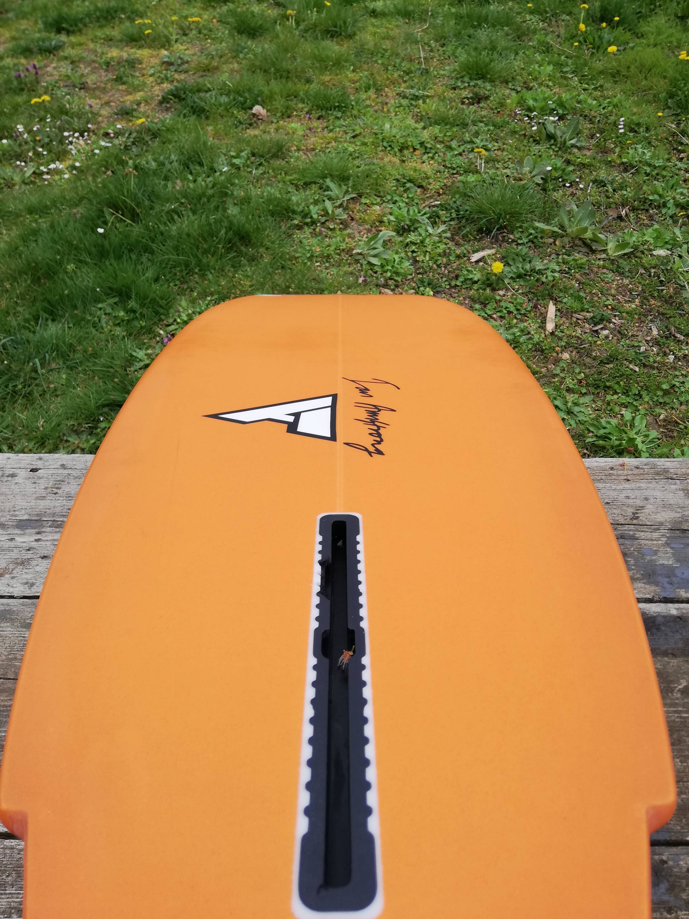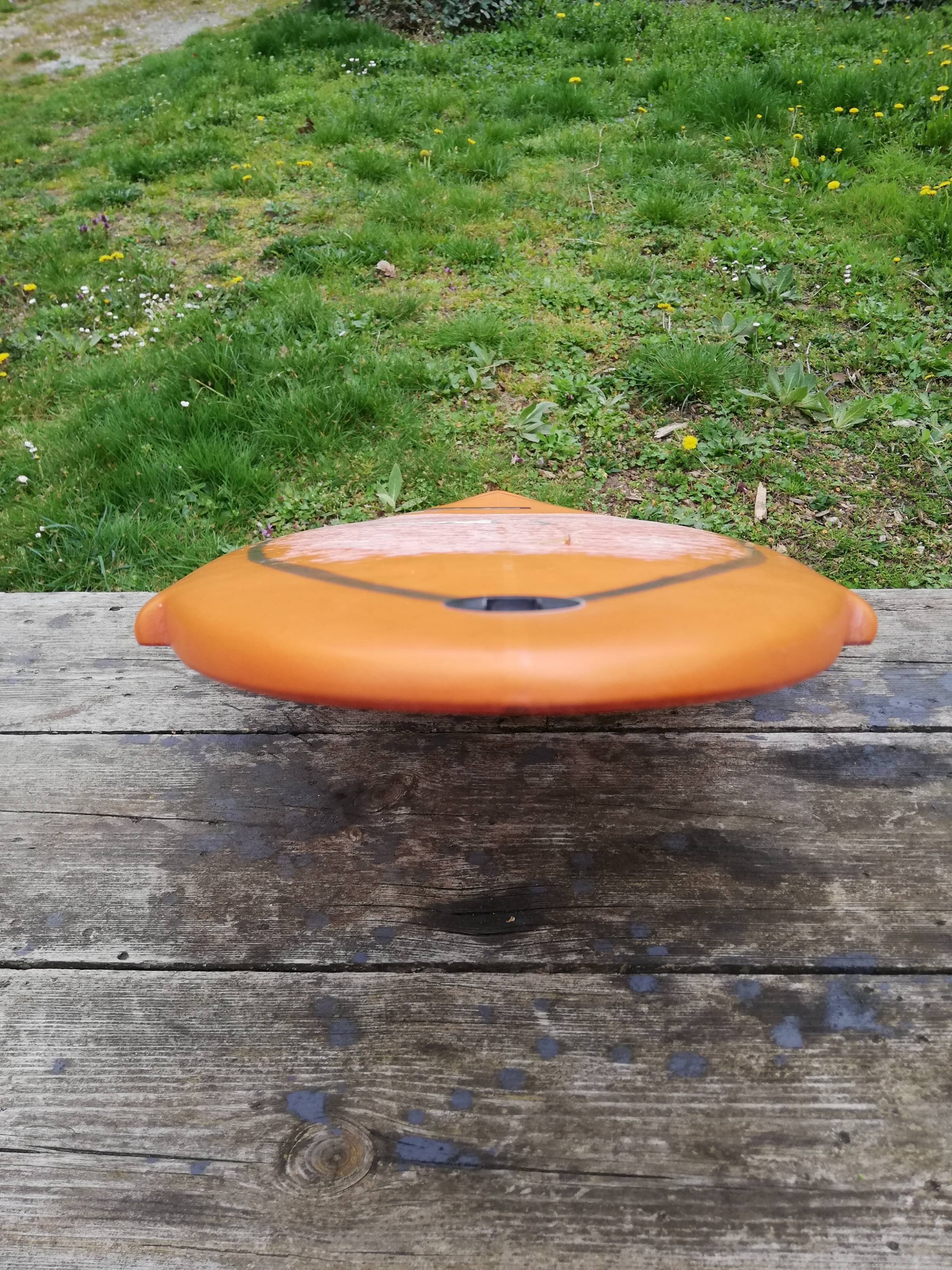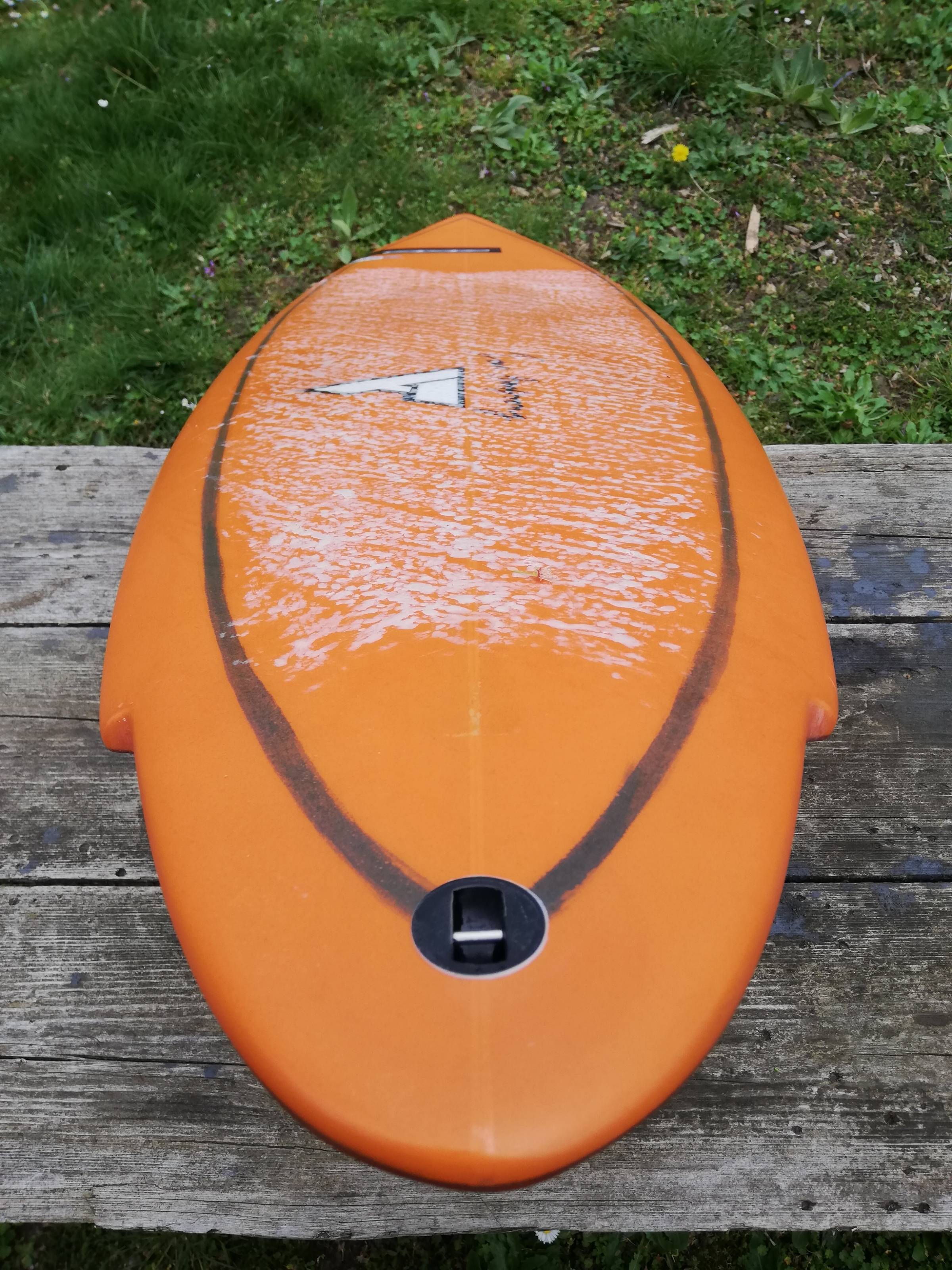 An der Finnenbox ist ein Stück herausgebrochen, was aber wieder repariert werden kann, aber nicht muss, denn es lässt sich trotzdem noch die Finne einschrauben und fahren. Es ist dicht und hat kein Wasser gezogen. Sonst gibt es nur sehr wenig Gebrauchsspuren, das sieht man auf den Bildern. Ich war damit vielleicht 4x auf dem Wasser .
