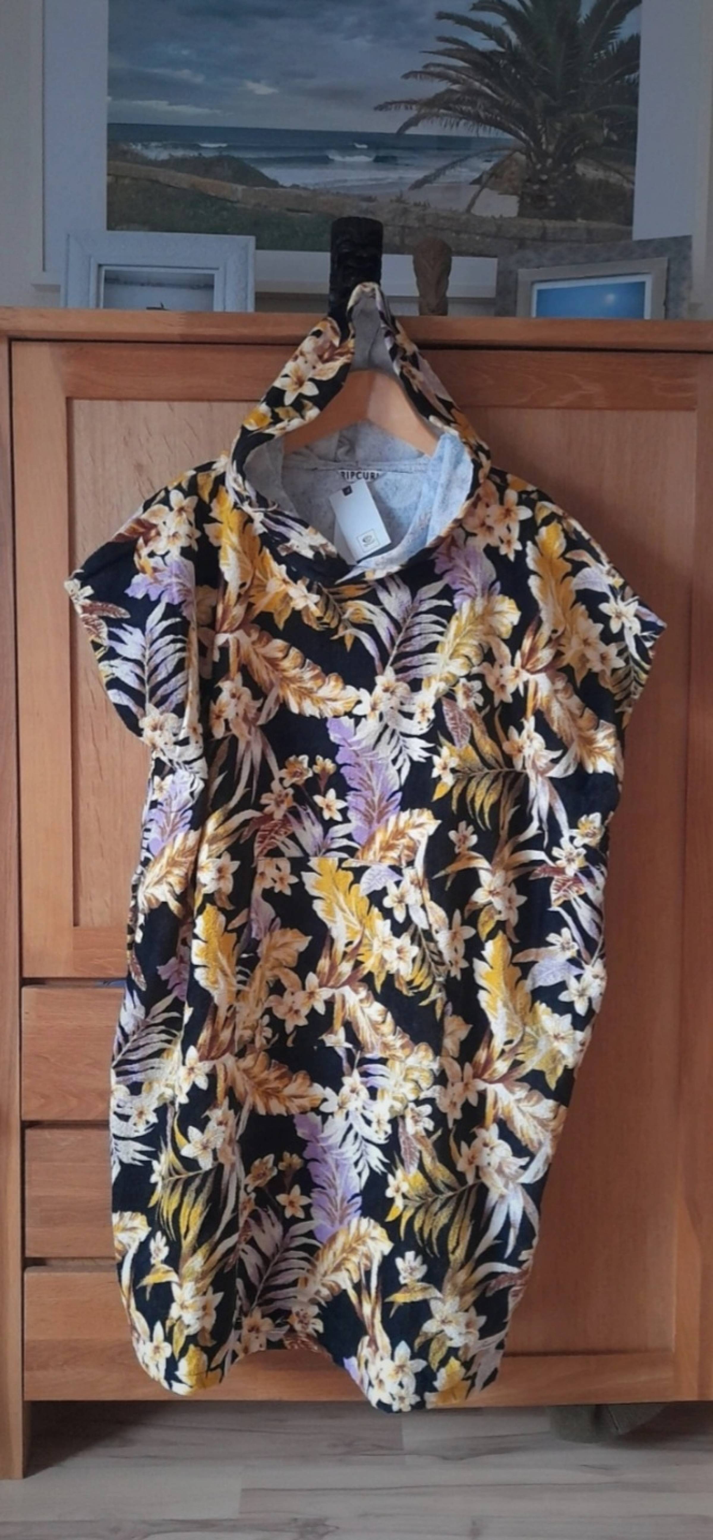 Brandneuer Frottee Poncho mit floralen Muster von Rip Curl. Super als mobile Umziehkabine am Strand, in der Sauna oder zum Camping.