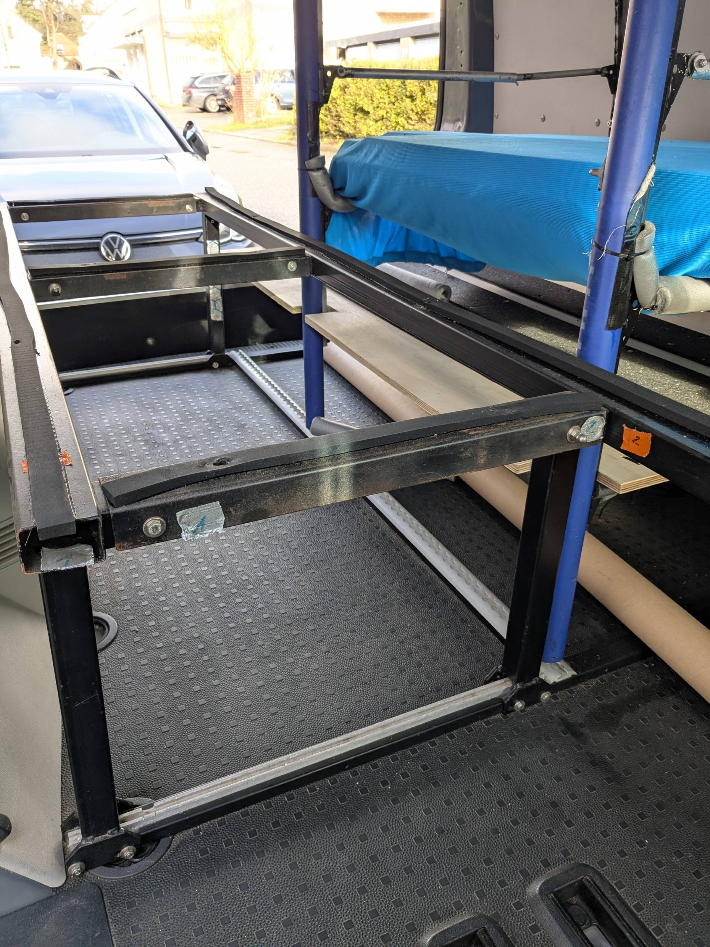 Die Unterkonstruktion ist an den Zurrpunkten des Fahrzeugboden befestigt.