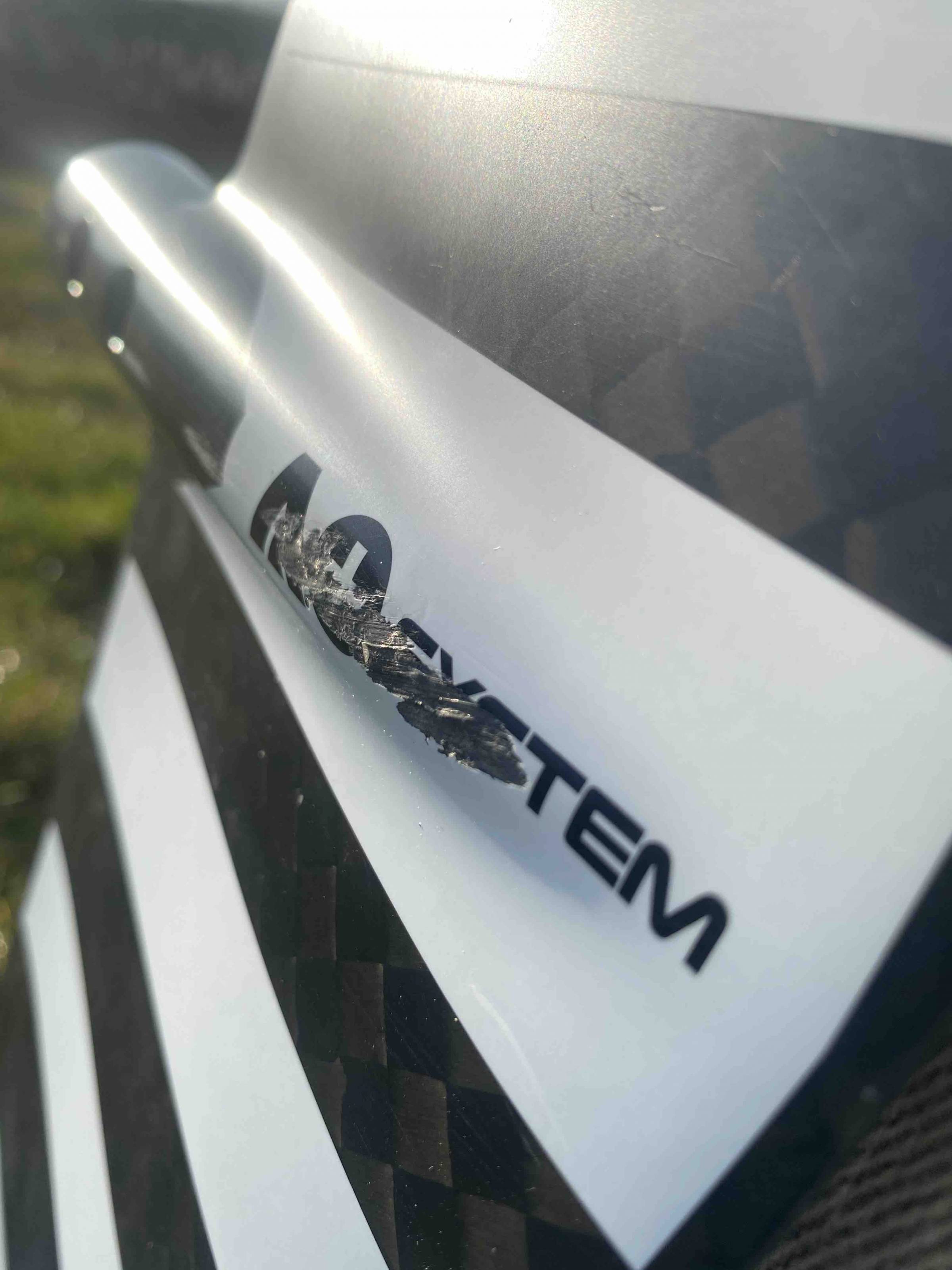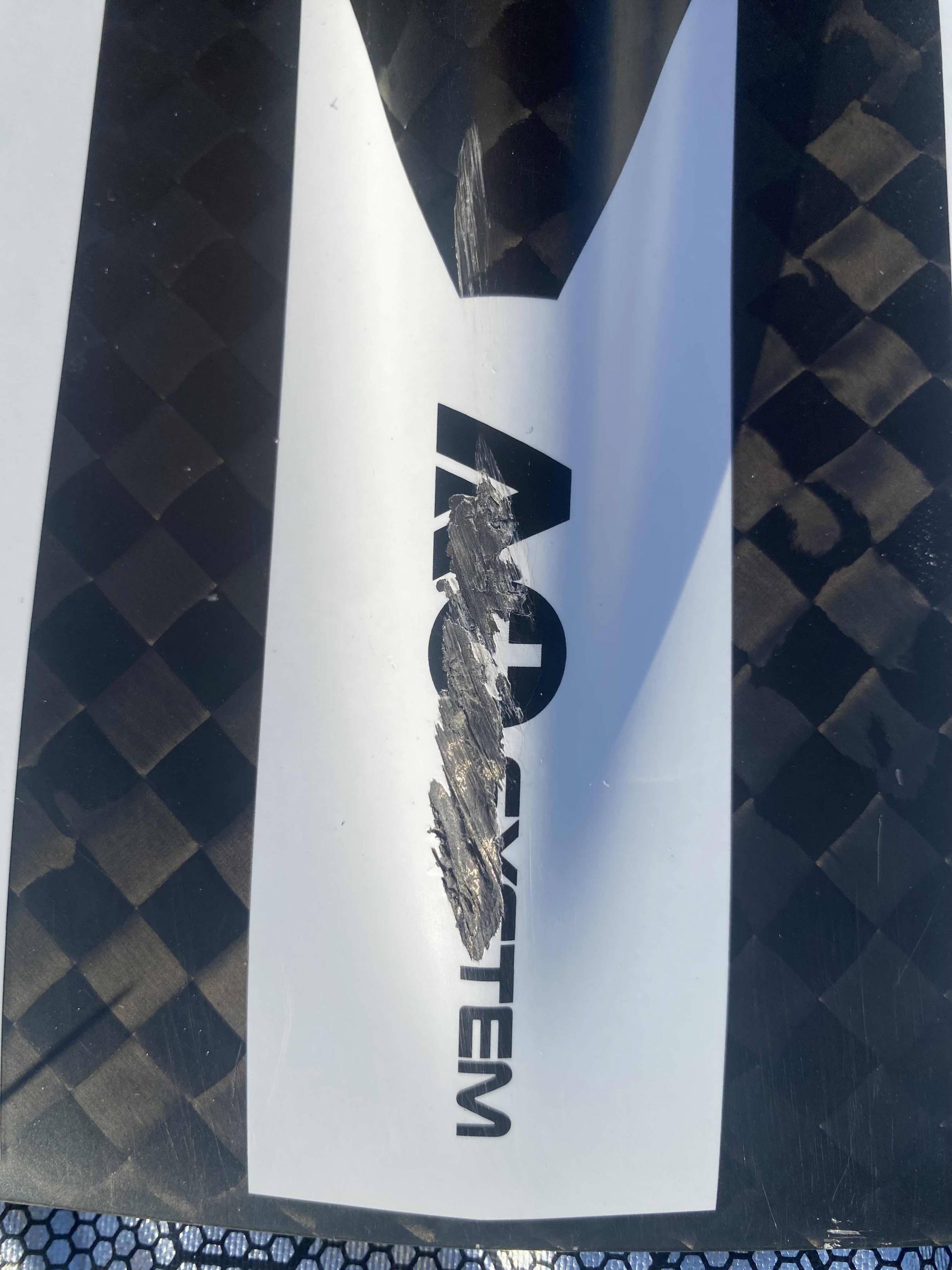 Ich bin das Foil für eine Saison ab und zu gefahren und deshalb ist es auch noch in diesem guten Zustand. Bis auf einen kleinen Lack Kratzer in der Mitte von der Schrift ( siehe Bilder ) ist der Flügel in Top Form.
