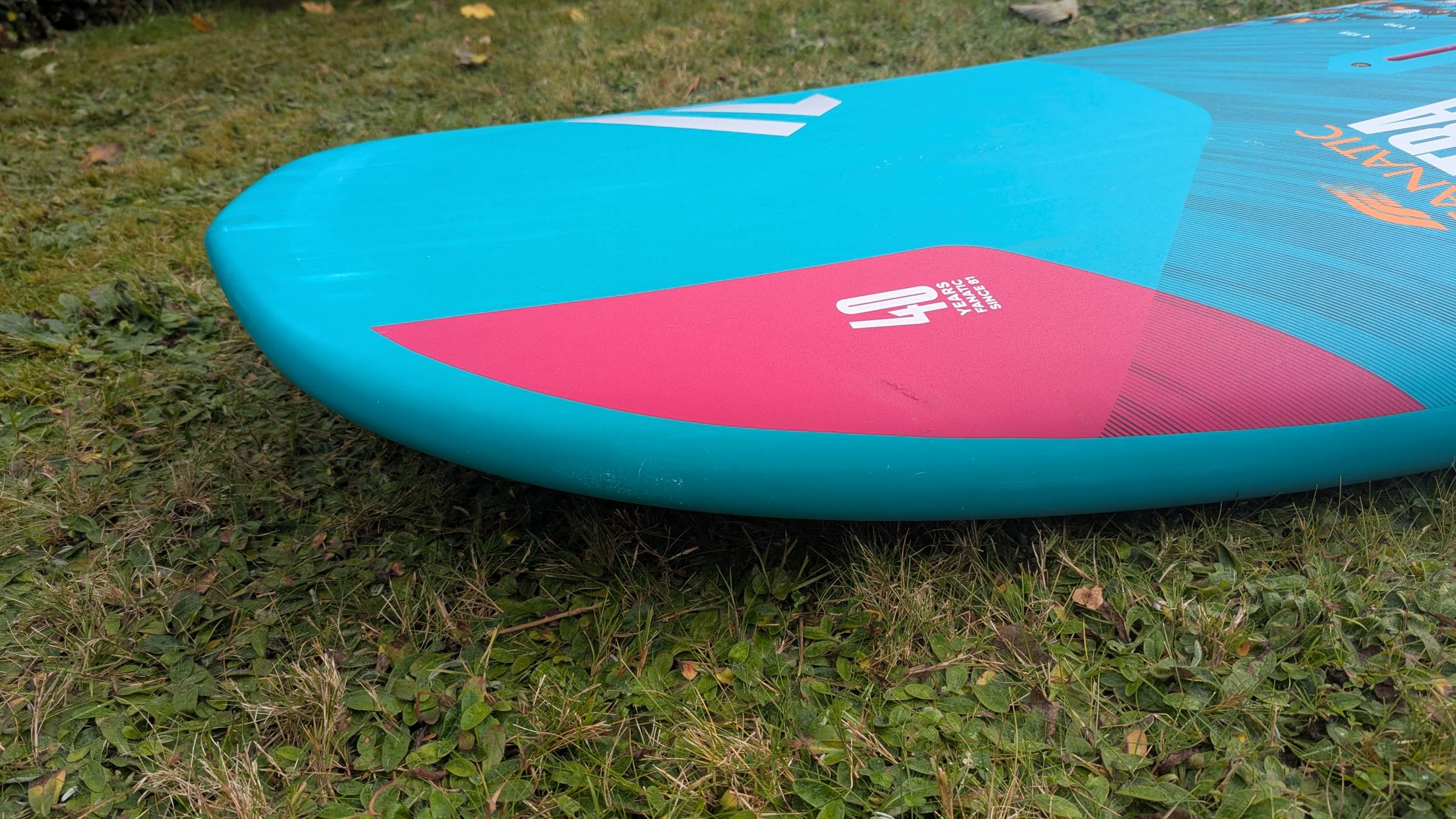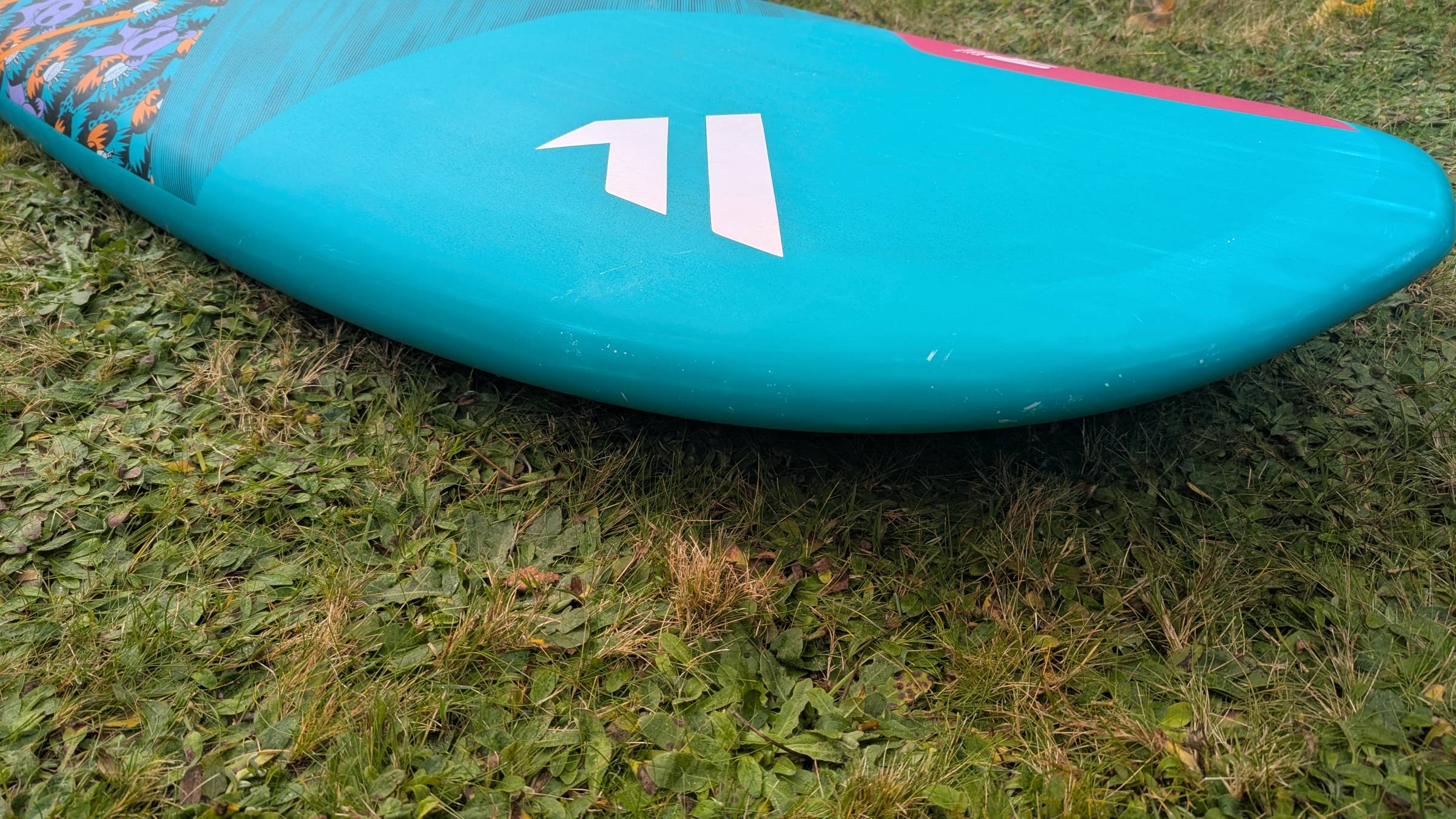 - Normale Gebrauchsspuren (Kratzer) vom Ablegen am Strand und Transport im Surfbag.